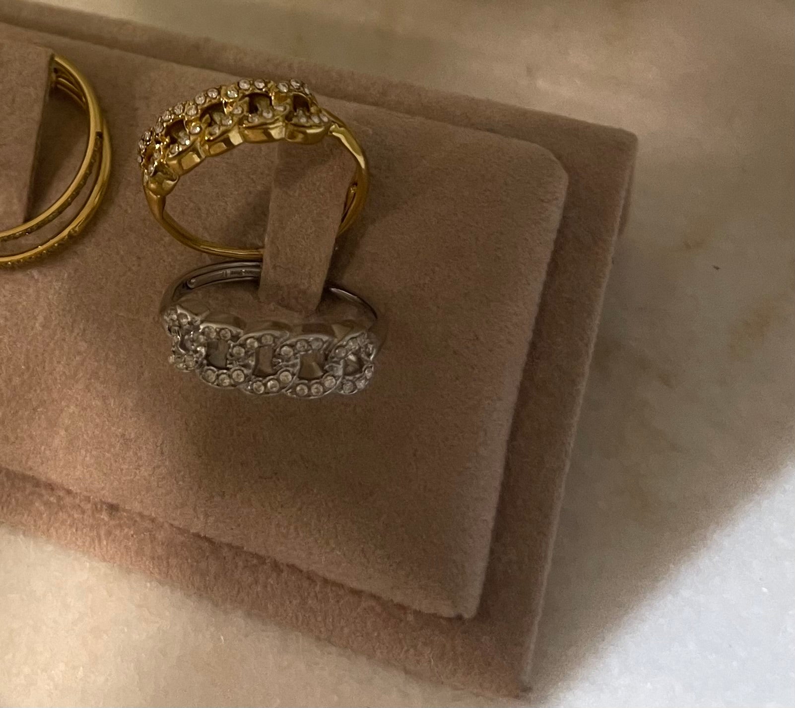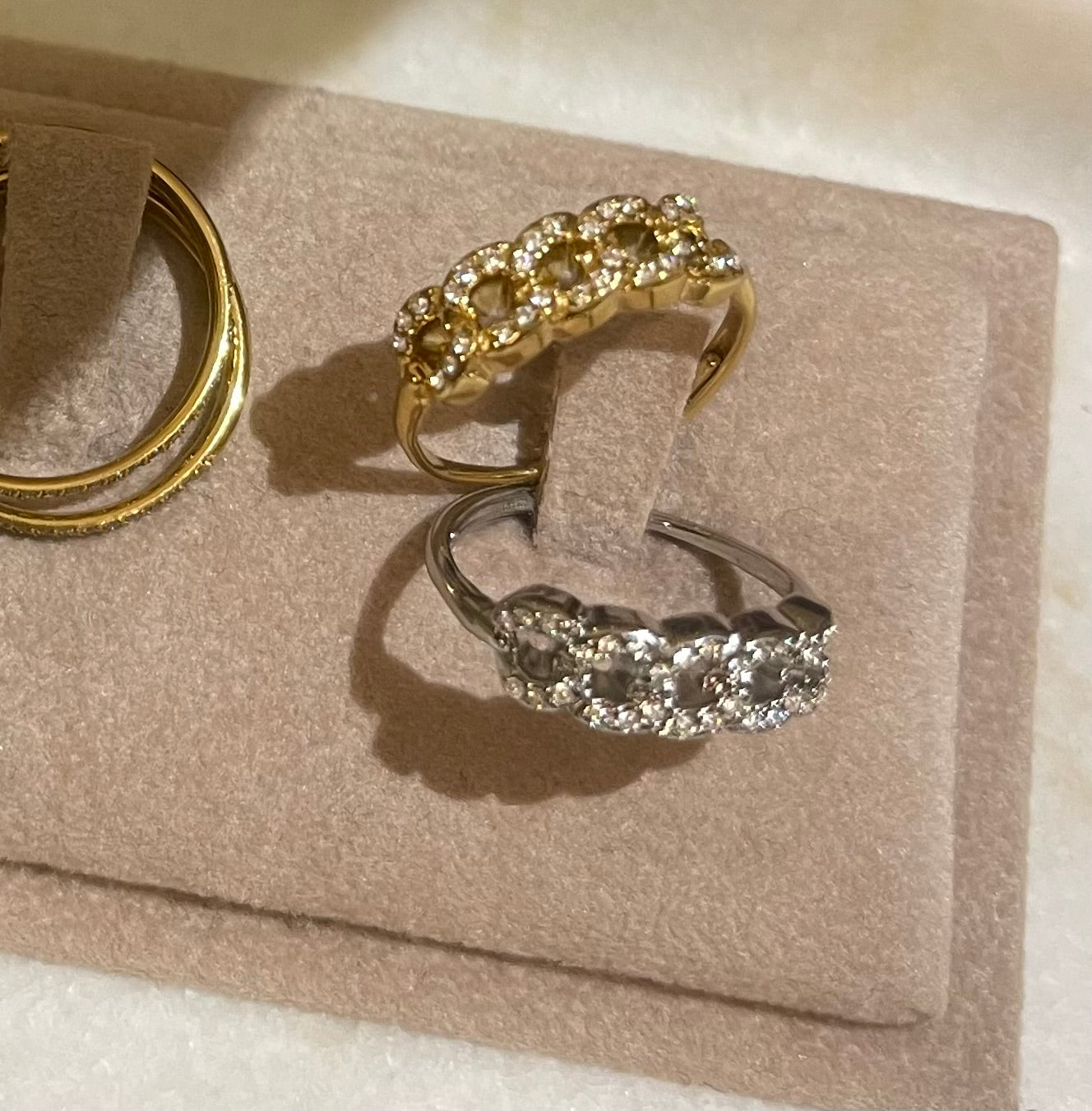 Anello regolabile catena zirconata con Zirconcini Crystal incastonati