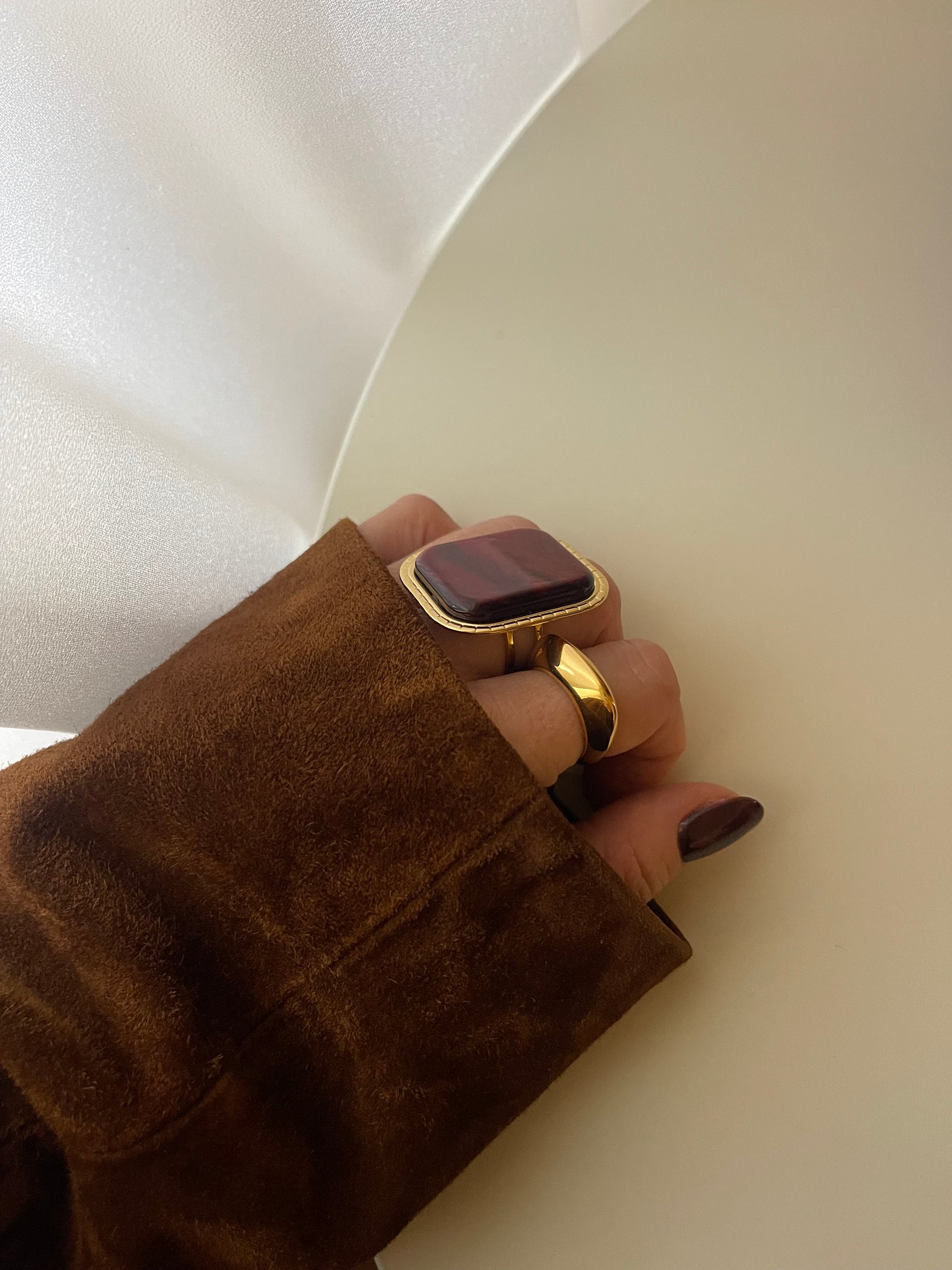 Maxi Anello con placca smaltata in resina color Burgundy e Choco in due diversi Designe in Stile Vintage Trend. Regolabili