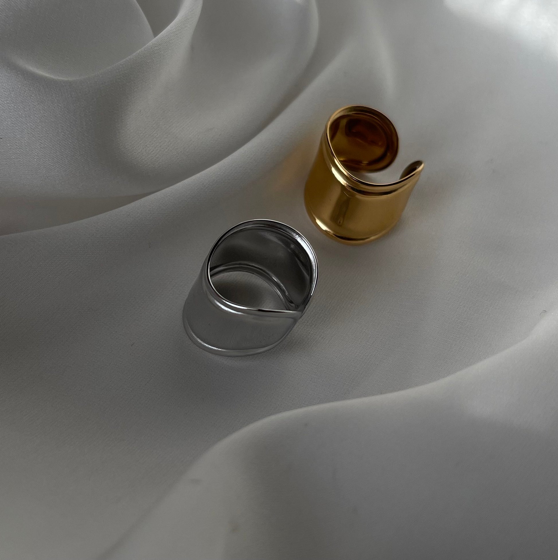 Anello a fascia larga , Designe Ondulato e avvolgente . Regolabile .