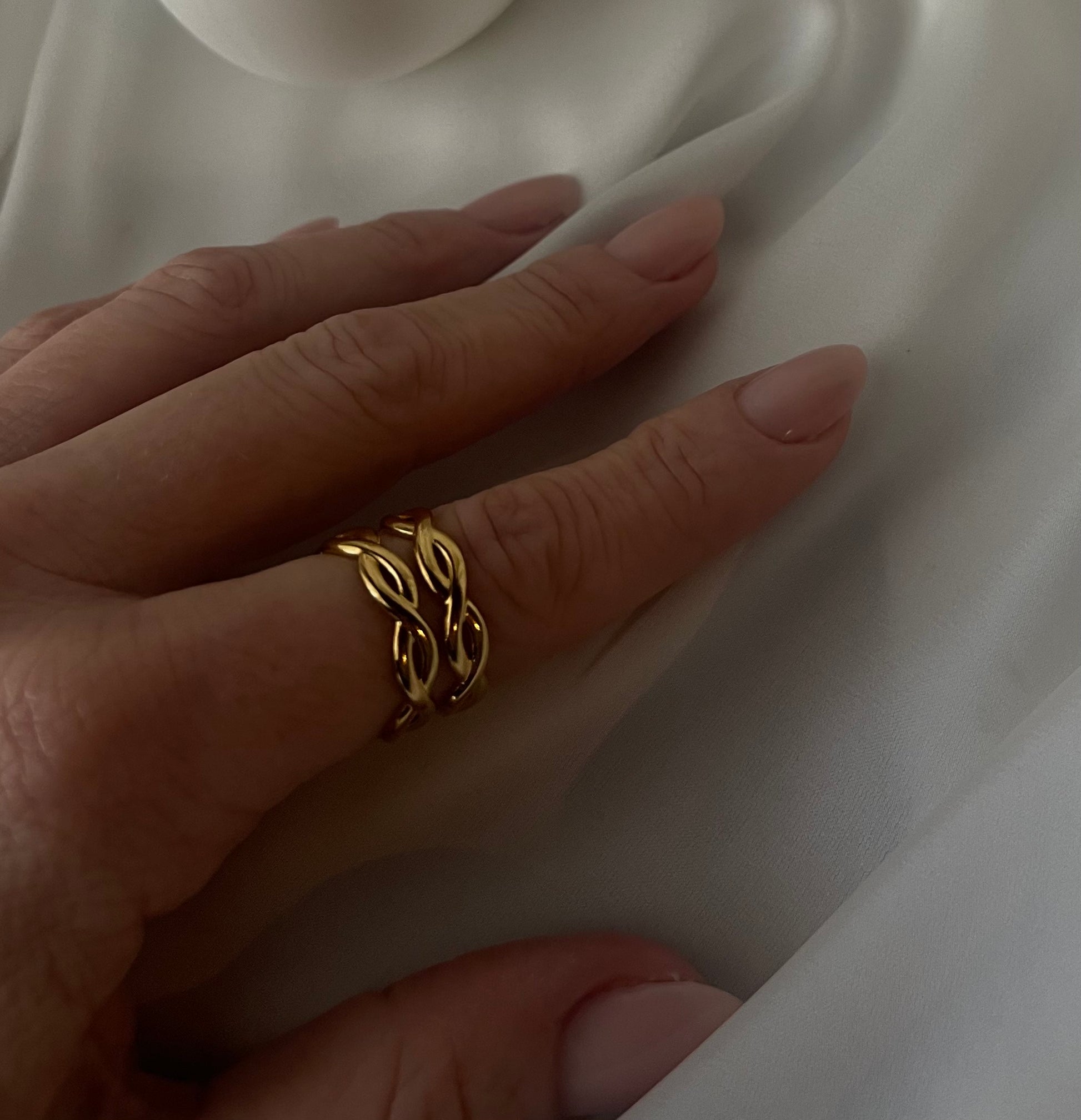 Anello a doppia fascia, intreccio sottile regolabile
