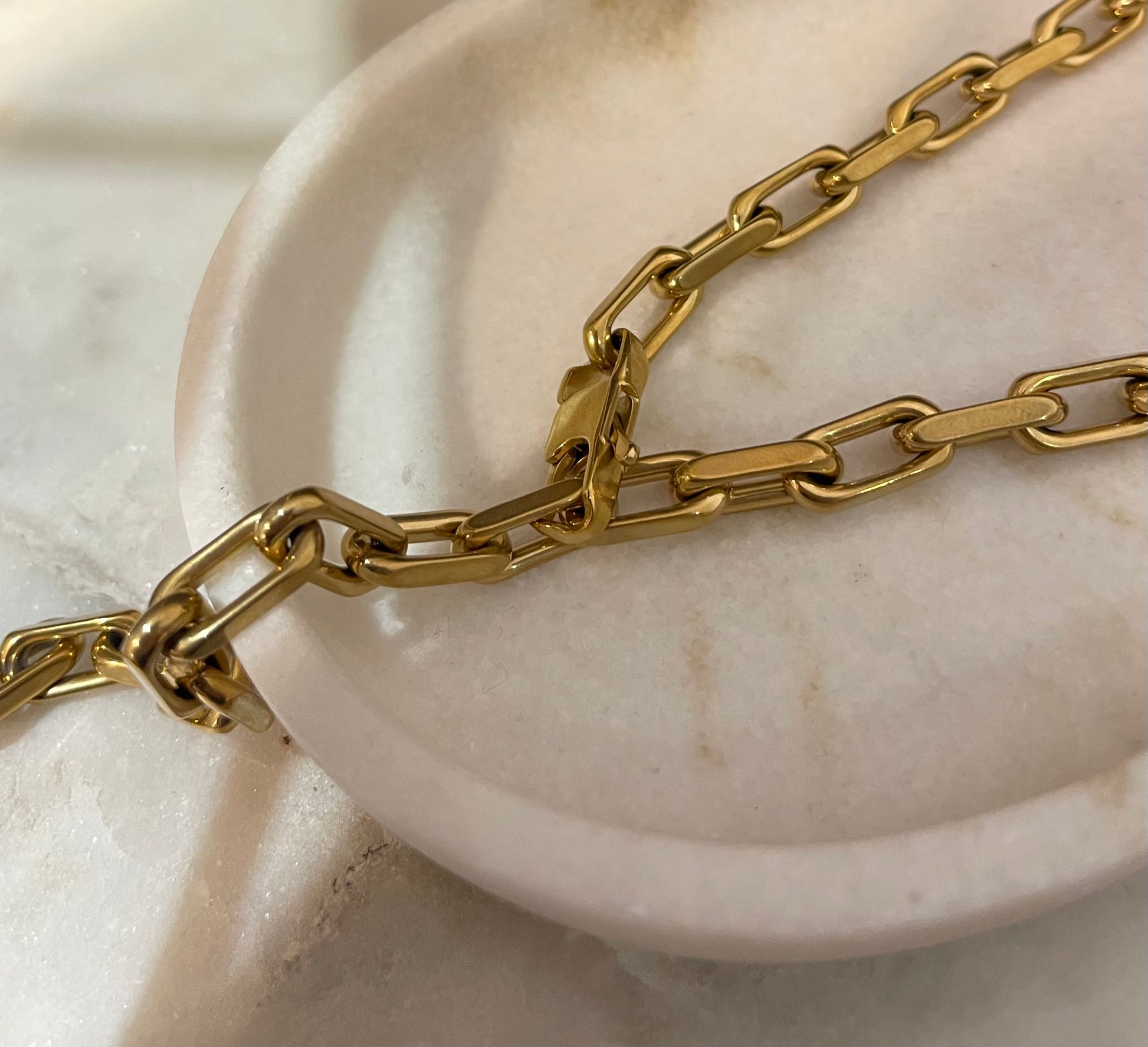 Collana Baguette squadrata con gancio moschettone gioiello sul davanti. Scegli tu la lunghezza e indossala come preferisci