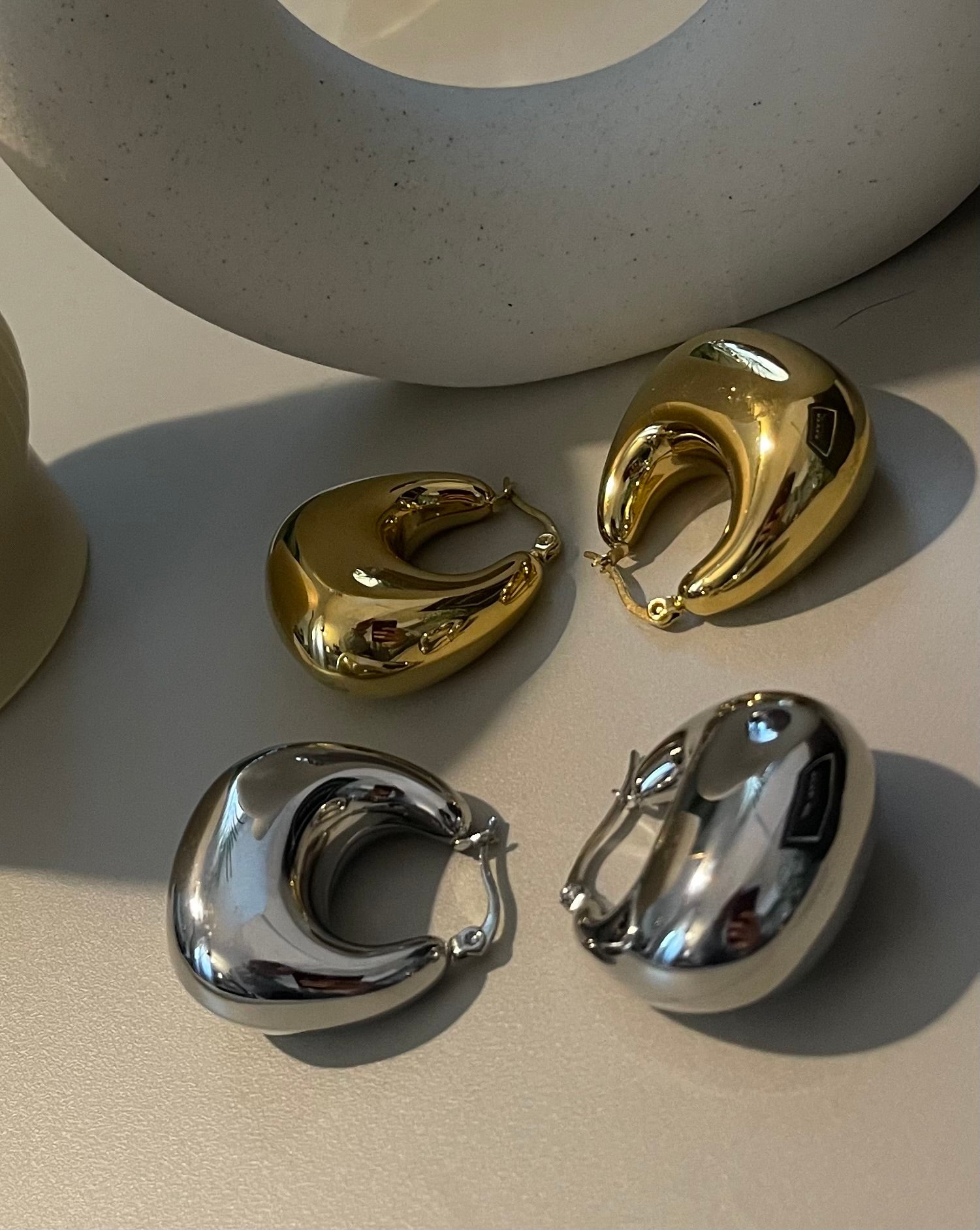 Nuovo Orecchino Bombato in tendenza. Chiusura classica , super leggero . Il prezzo fa riferimento al paio