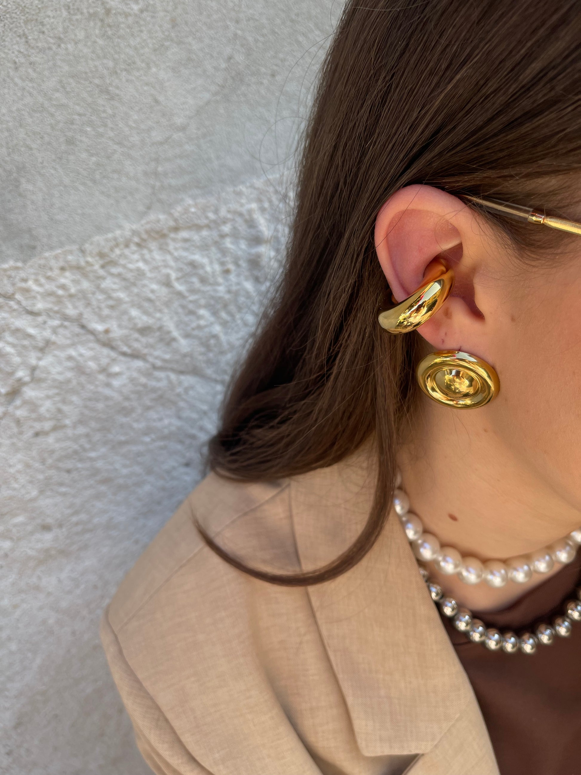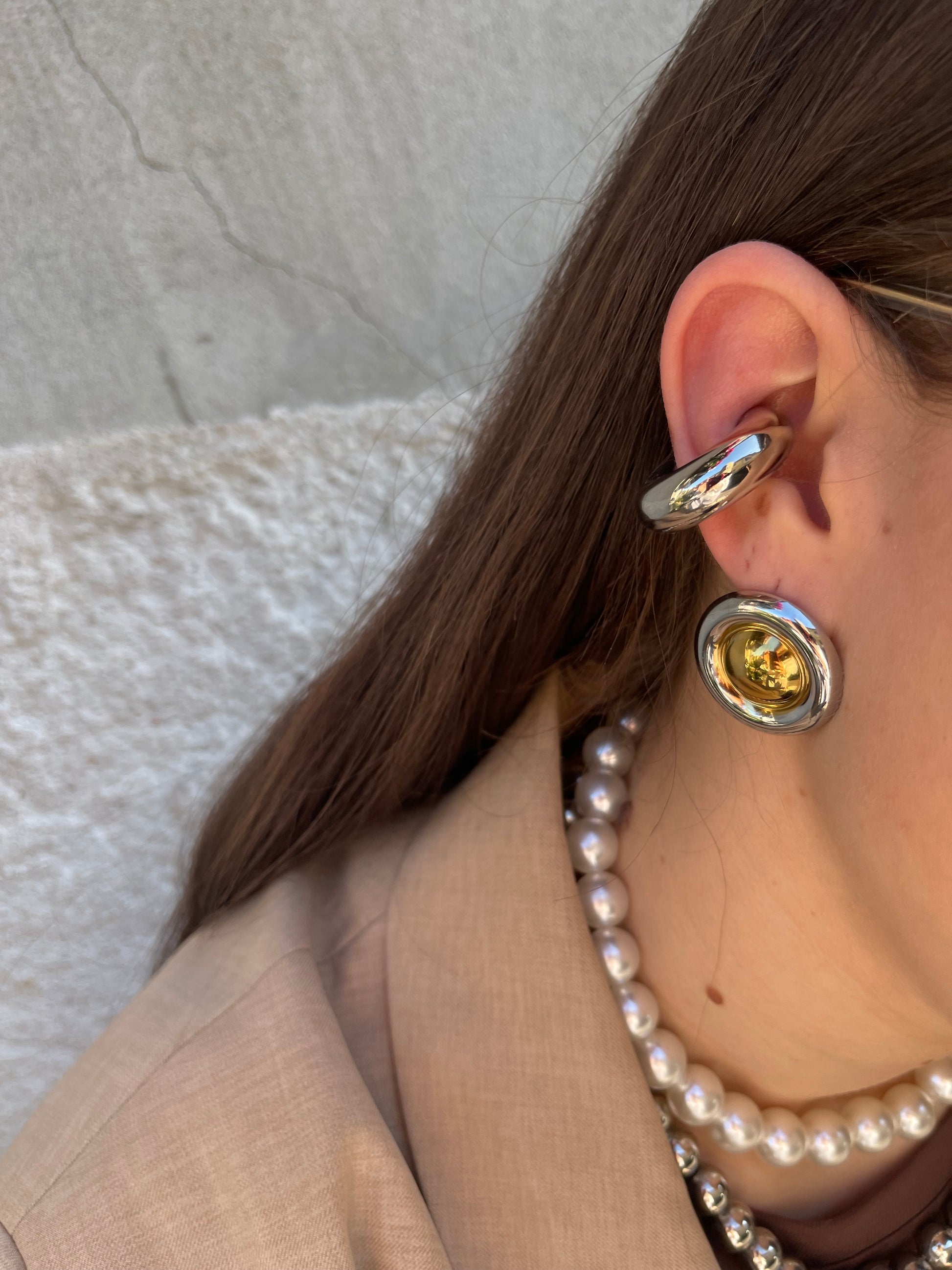Orecchino bottone a lobo. Chiusura con perno e farfallina
