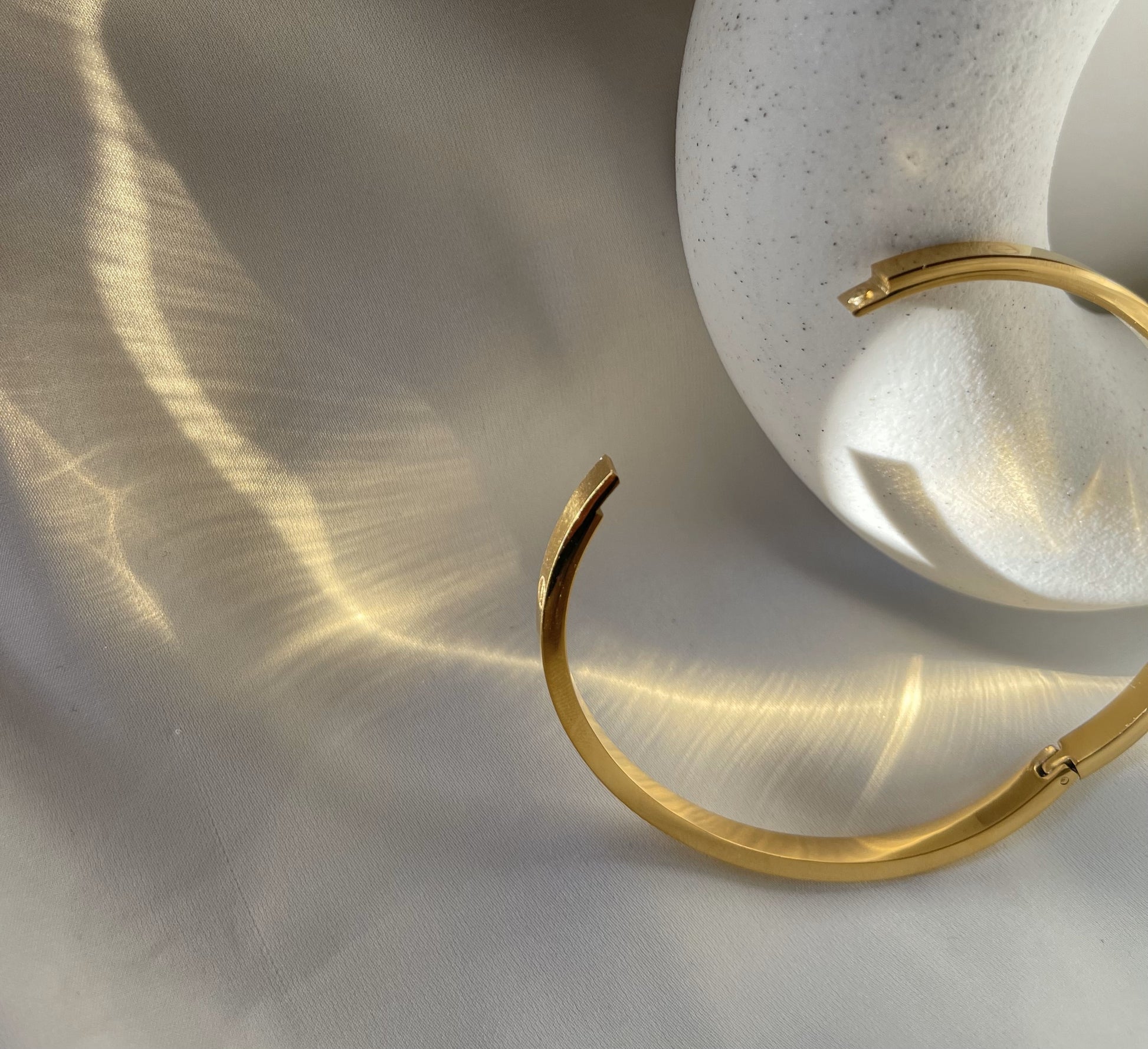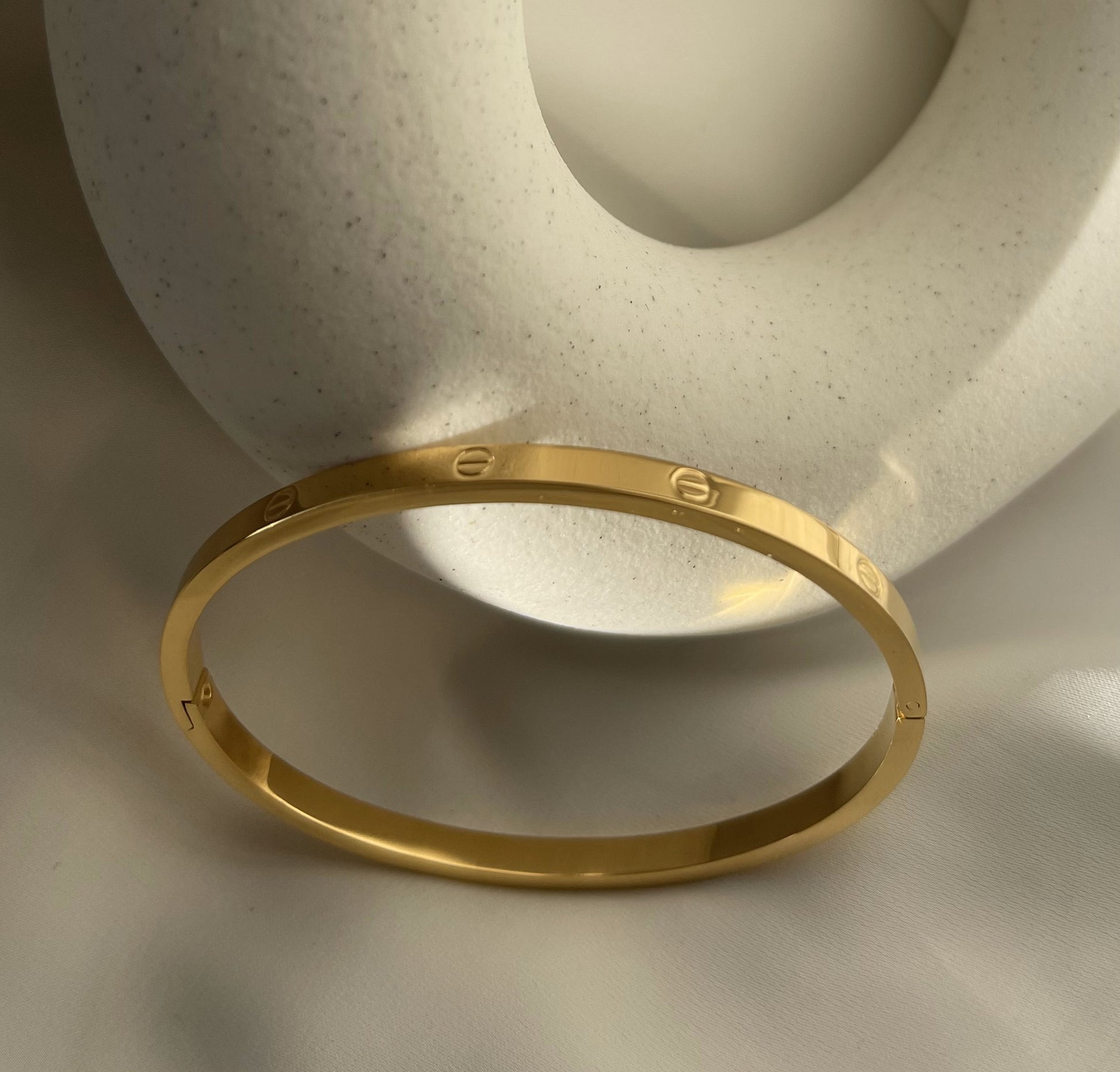 Bracciale Bangle rigido, con incisioni a sequenza. Da sempre un pezzo Iconico nel mondo dei Gioielli.