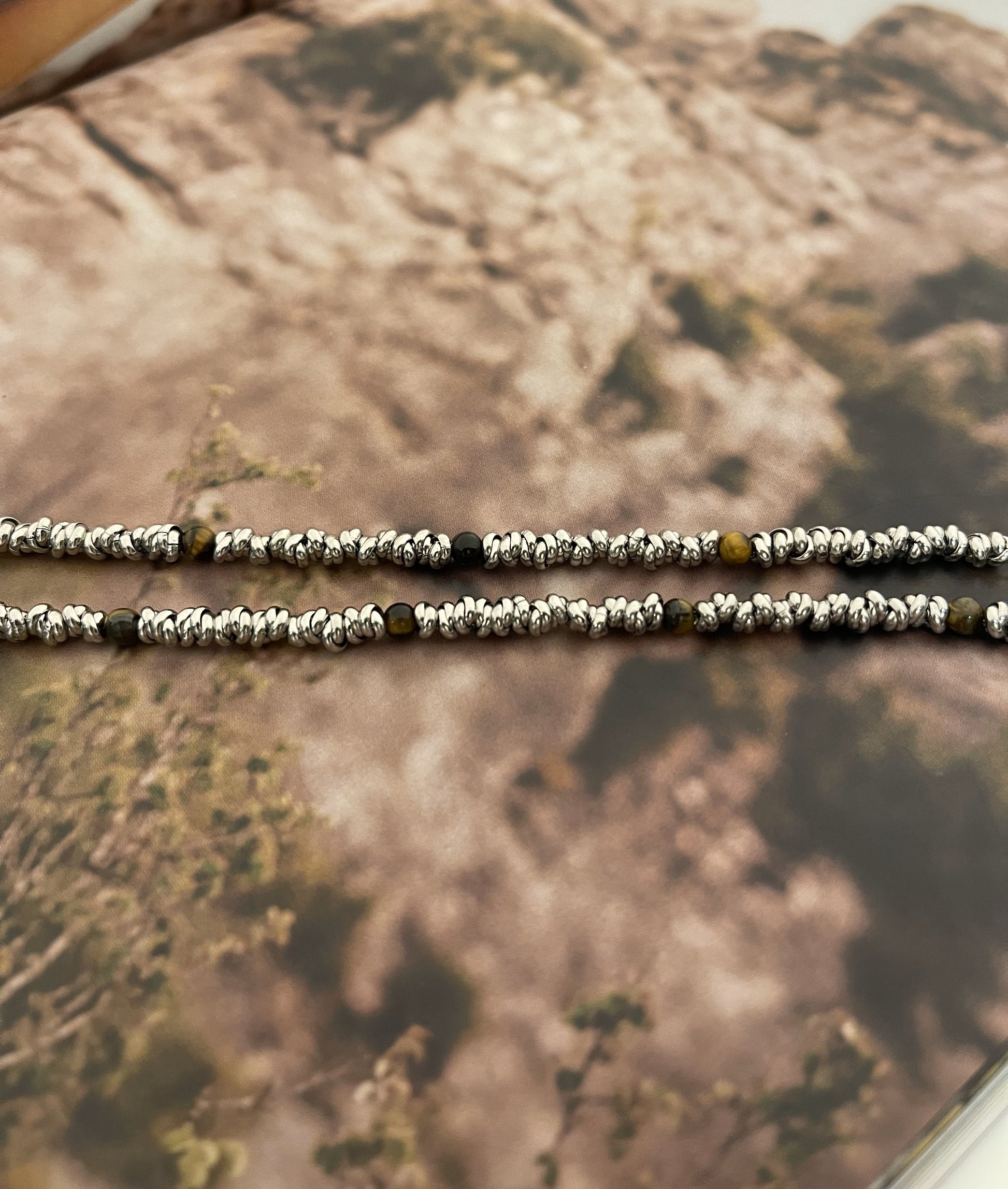 Bracciale catena Rolò Acciaio Silver e occhio di Tigre. Chiusura a moschettone con allungatura.