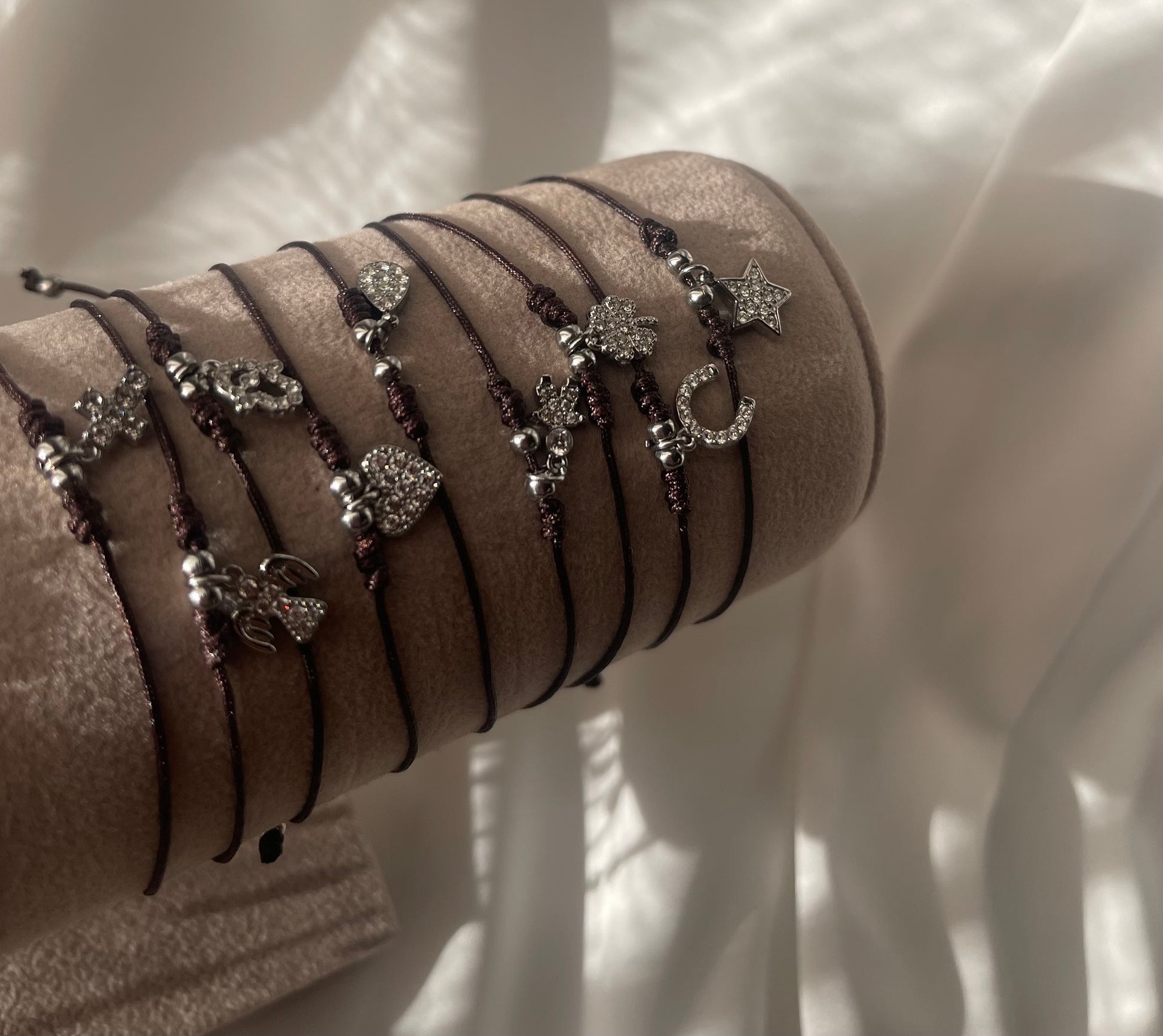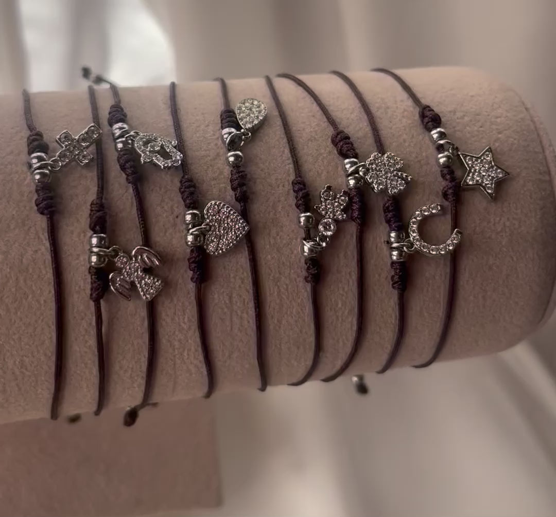 Braccialetto filo col. Cioccolato con ciondolo Glimmering✨Zirconato🎄🎁 Perfetto come pensierino di Natale