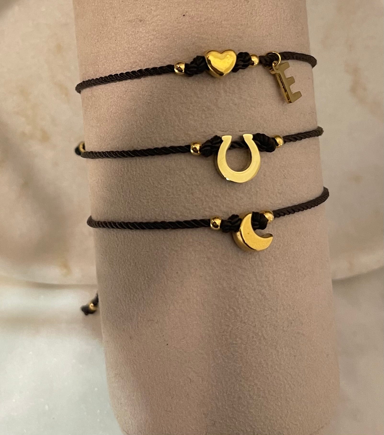 Braccialetto cordino color cioccolato . Con simbolino con nodo scorsoio