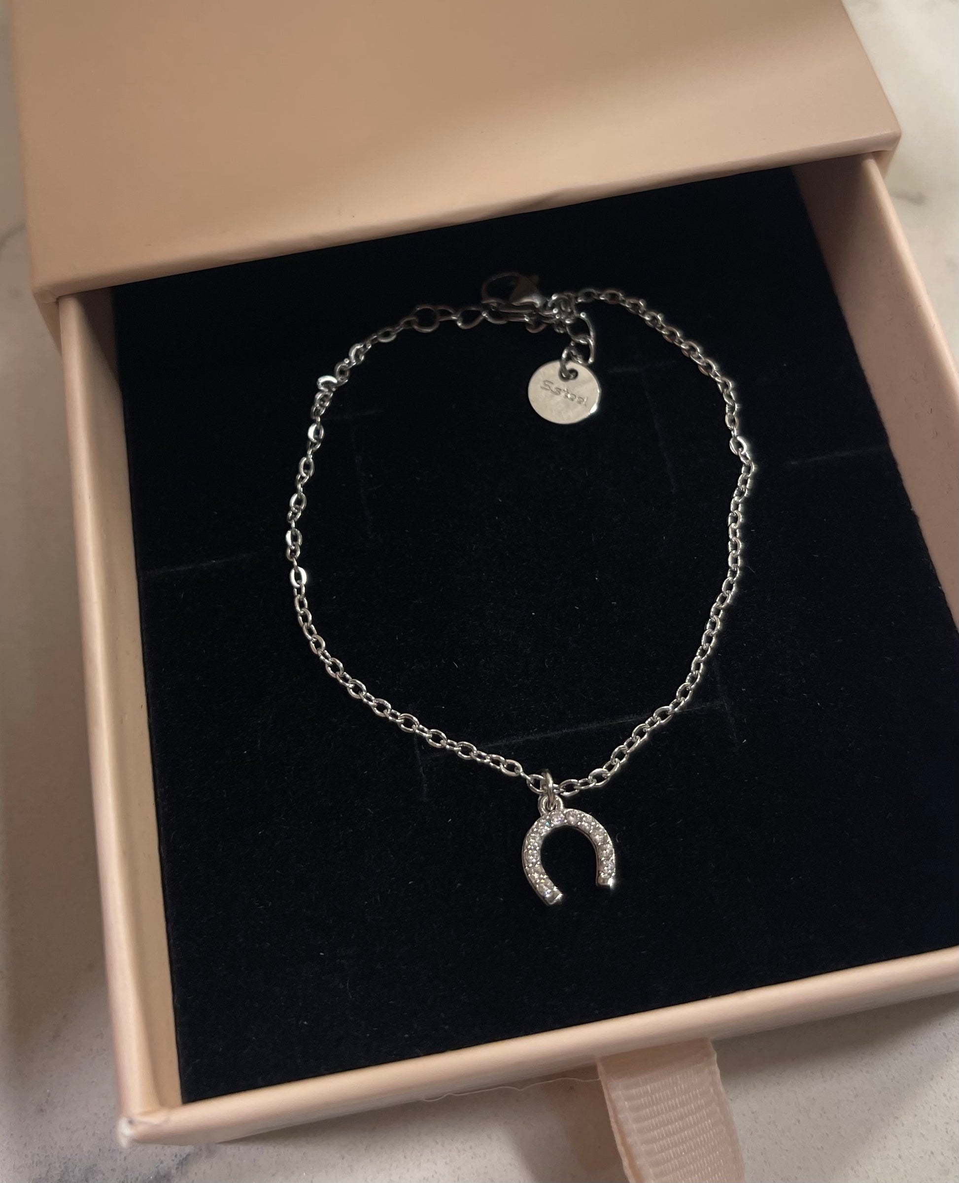 Braccialetto catenina sottile con ciondolo zirconato Ferro di cavallo.