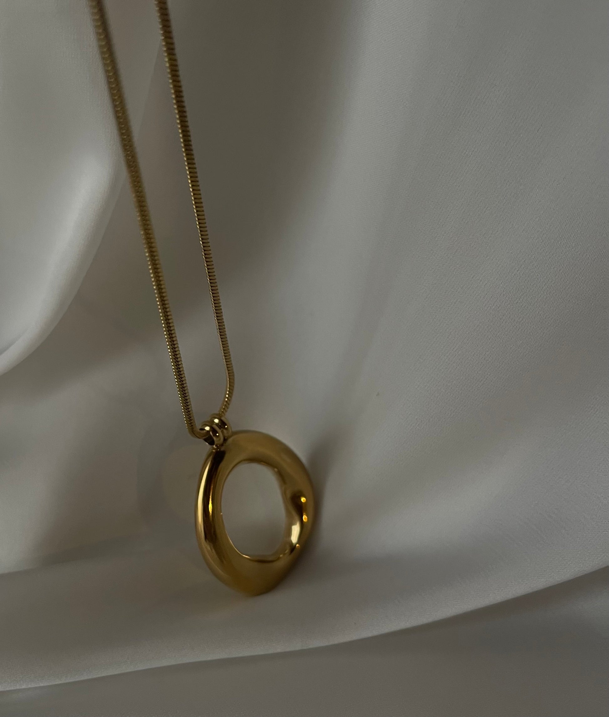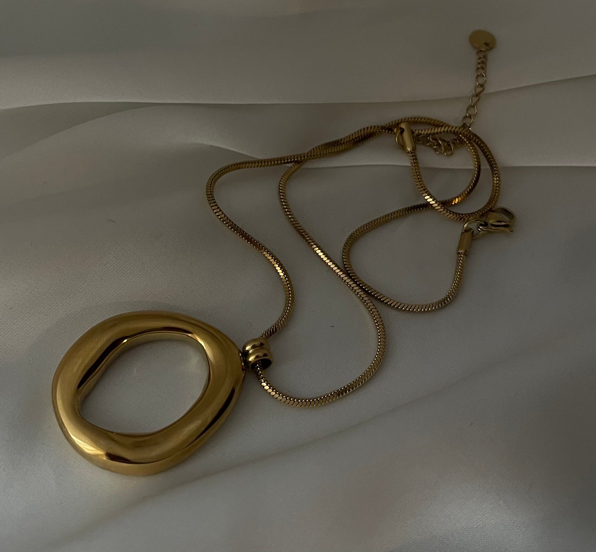 Collana in stile Vintage , con Ciondolo bombato vuoto al centro. Dorato come un cerchio irregolare di Luce ✨