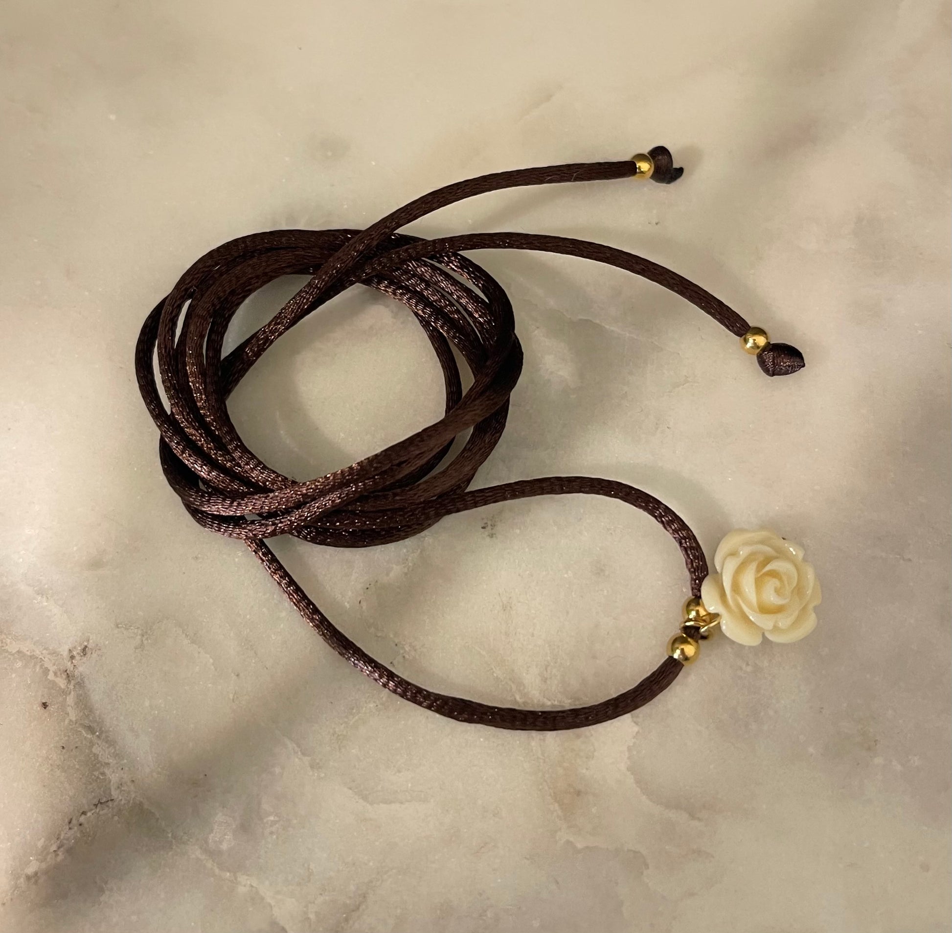 Choke Satin cordino cioccolato multigiri con ciondolo Rosellina .