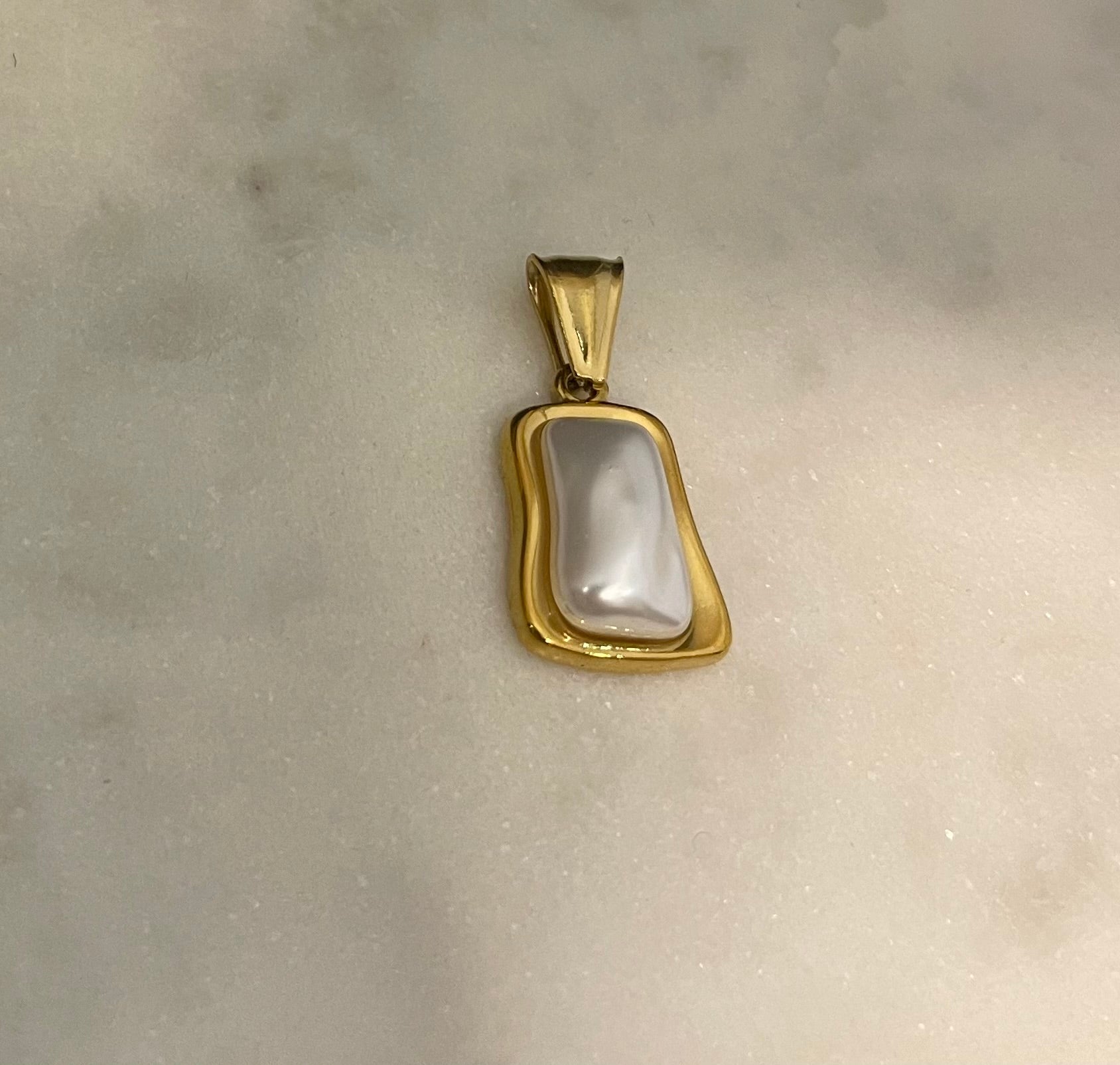 Ciondolo a medaglia , con cornice dorata e perla , gancio porta ciondolo incluso, che ti permetterà di infilarlo facilmente nelle tue collane.