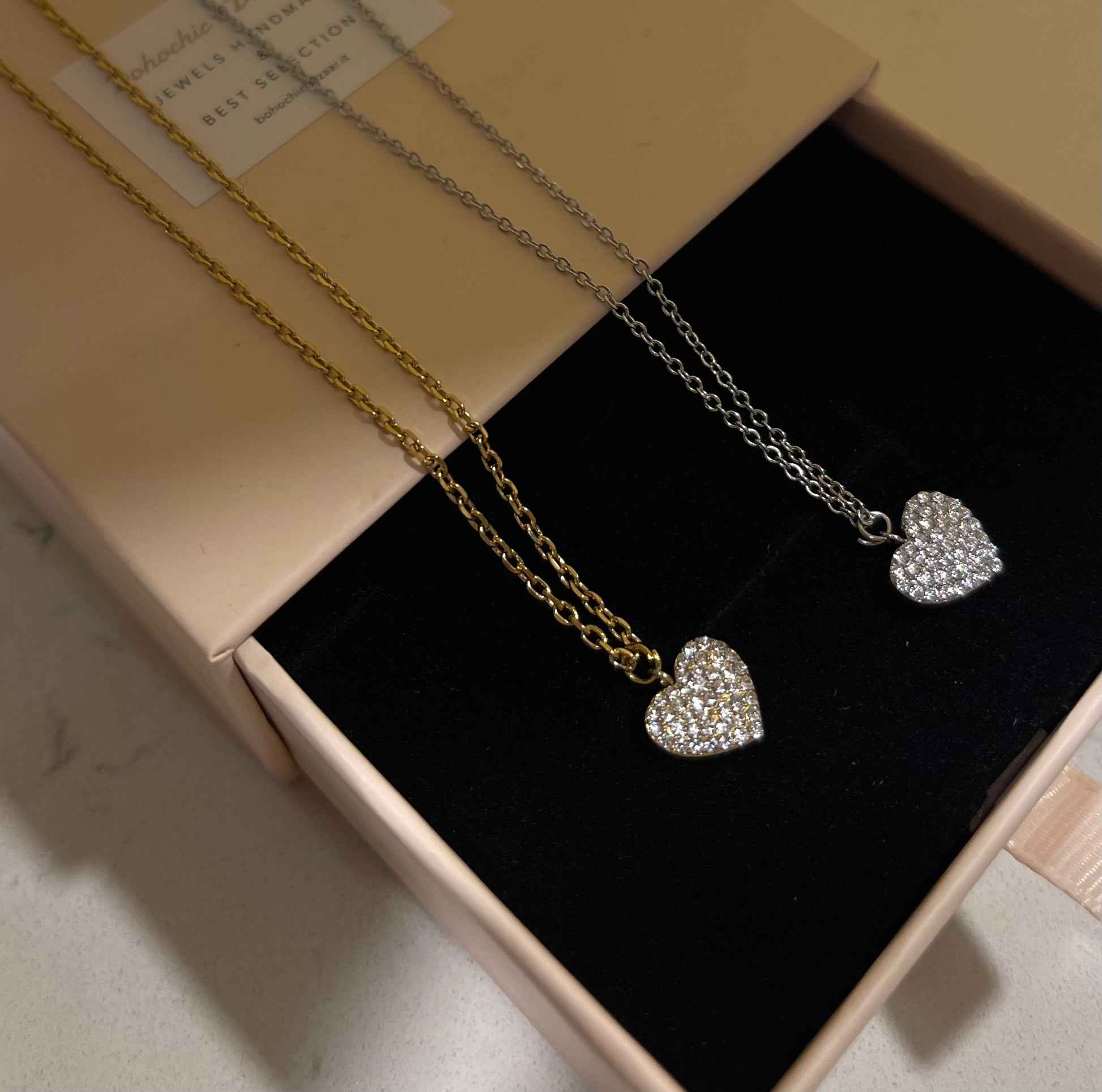 Collana catenina sottile con cuoricino bombato Glimmering Pavè , tempestato di Zirconcini incastonati