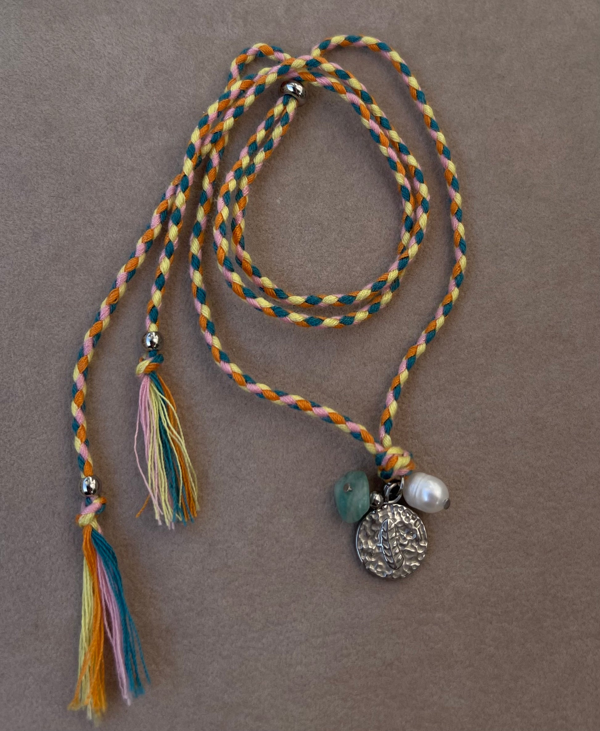 Collana in stile Gipsy , realizzata con cordino colorati e Charms estivi . Regolabile con rondellina , puoi scegliere tu la lunghezza e indossarla a Choker o in diverse lunghezze a tuo piacere. Perfetta da indossare in spiaggia in bikini ! 👙🌴🍹