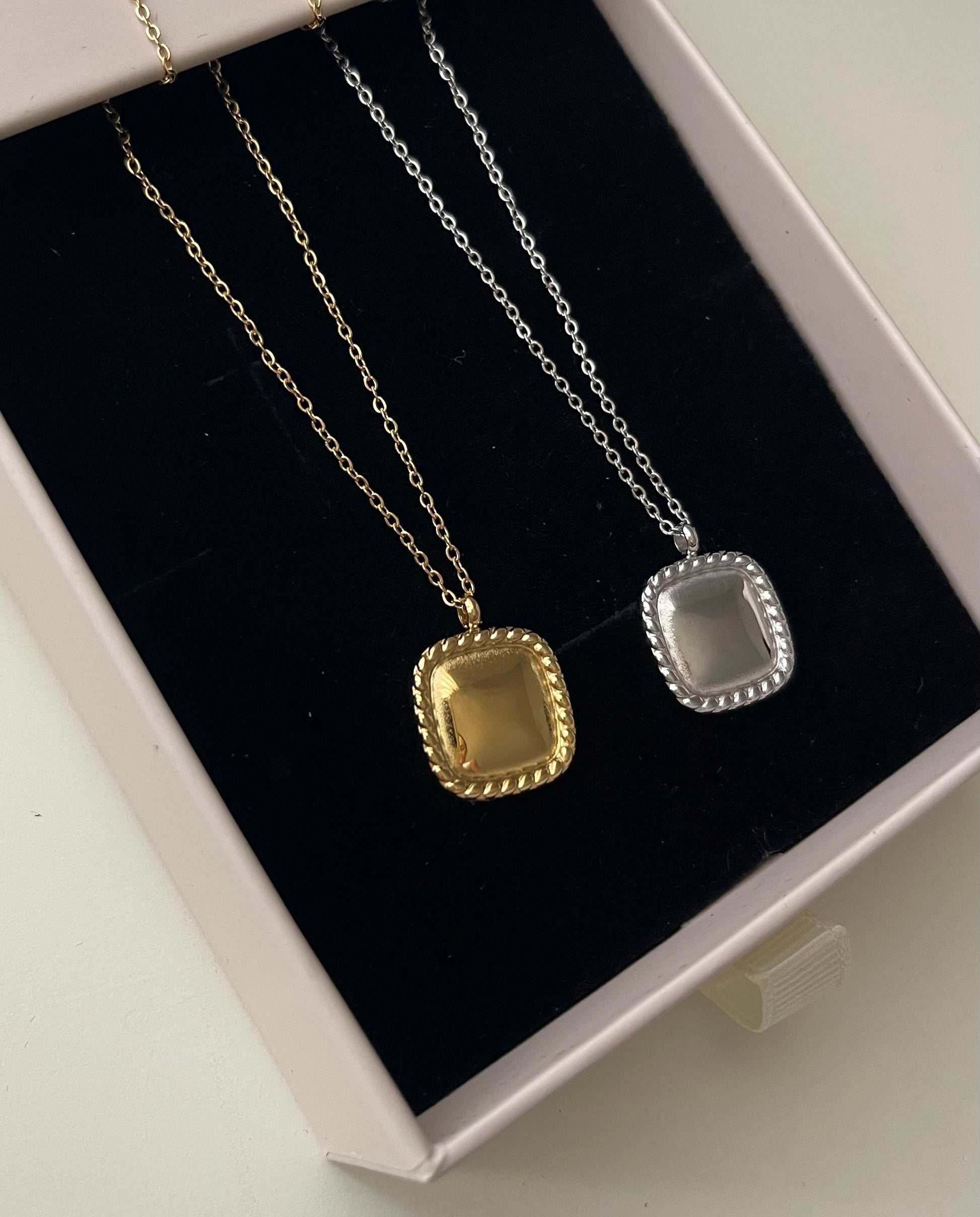 Collana sottile con medaglietta bombata in stile Vintage Designe. Chousura con moschettone e allungatura regolabile