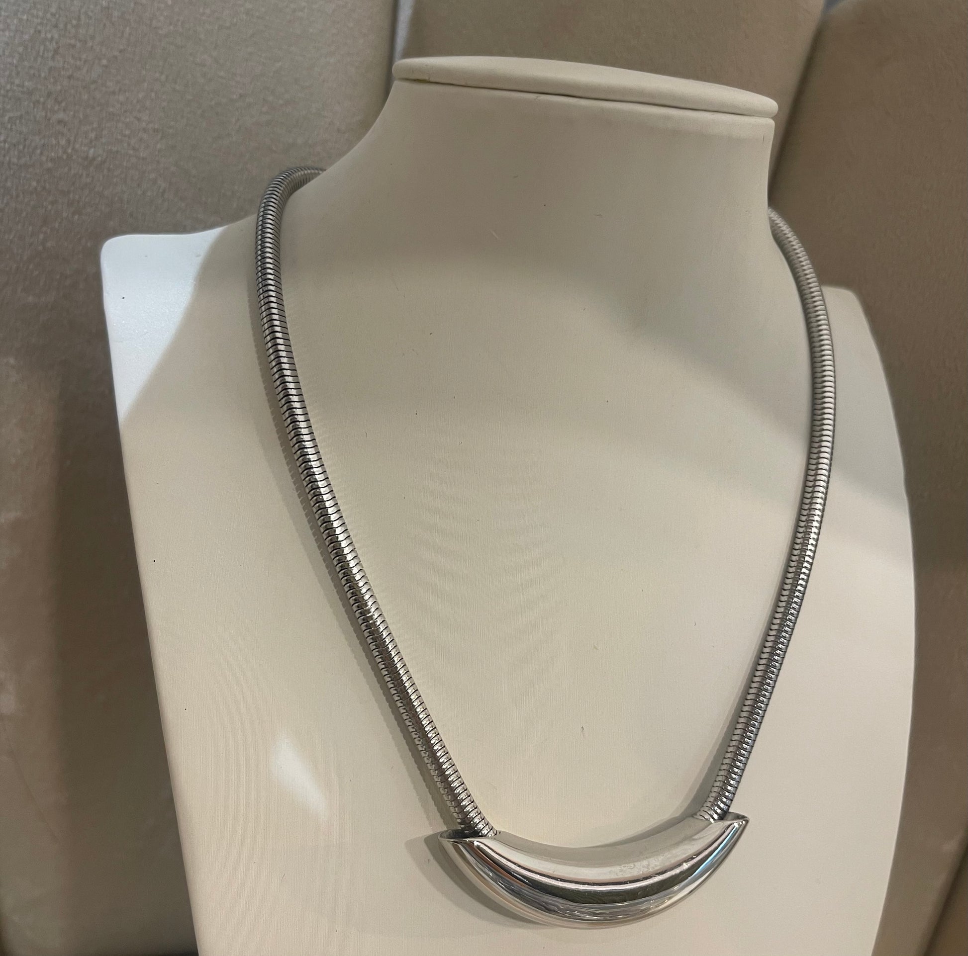 Collier tubolare semirigido con dettaglio Bold “ a banana”. Chiusura con moschettone allungatura regolabile
