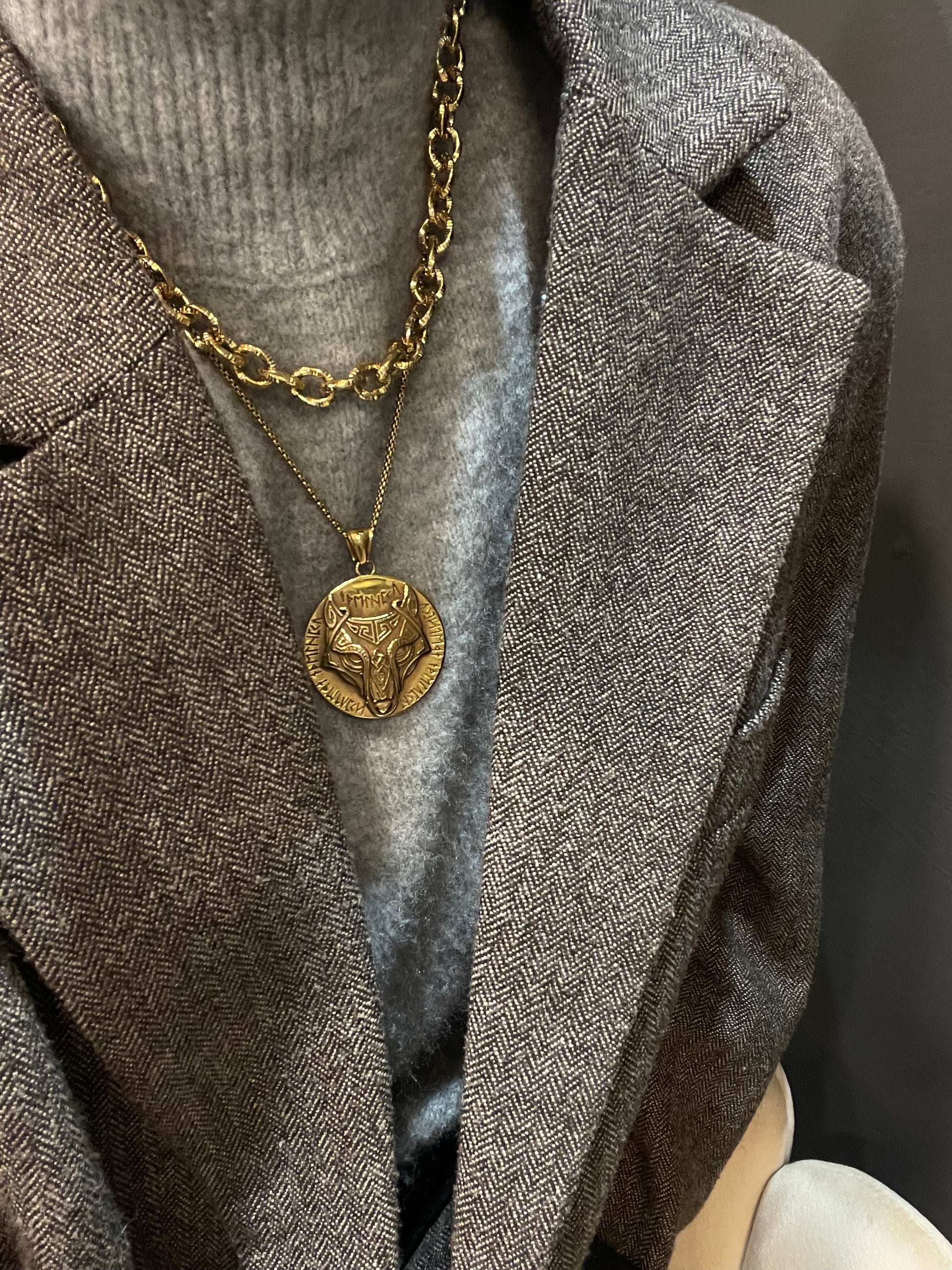 Collier a maglie larghe . Satinato. Chiusura con moschettone e allungatura regolabile