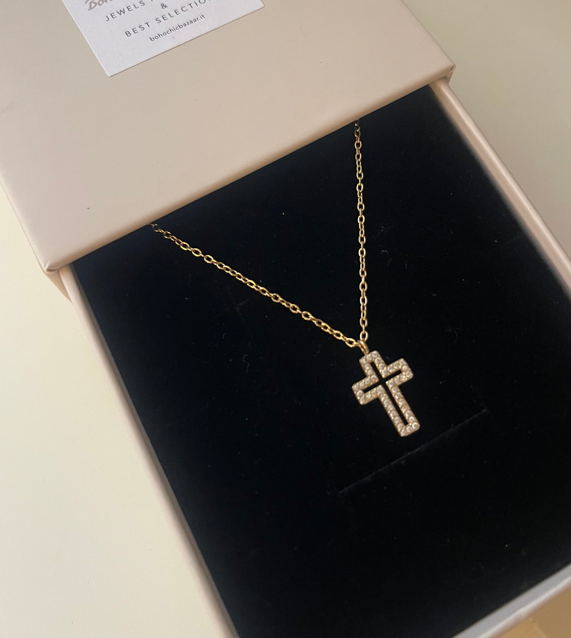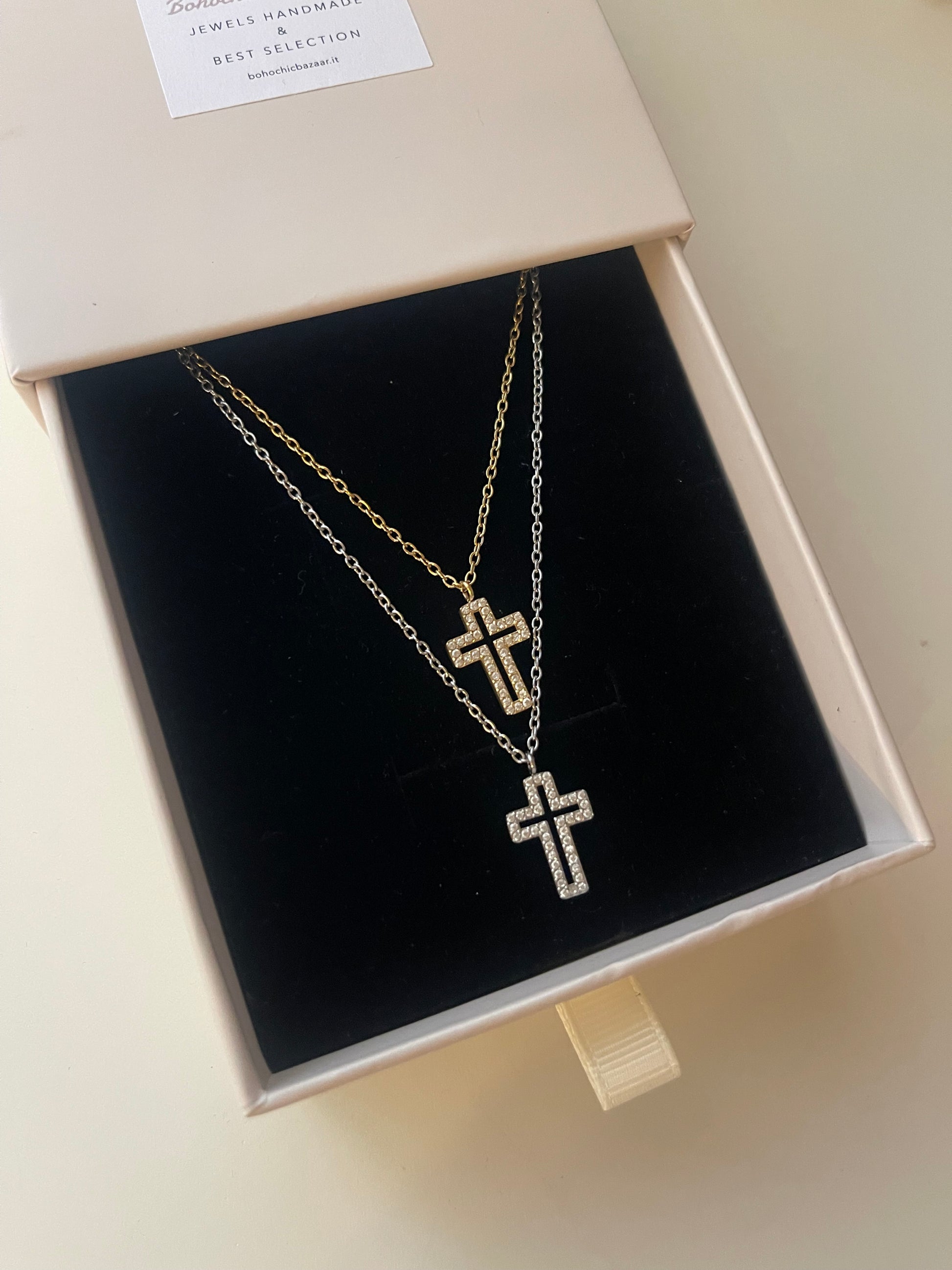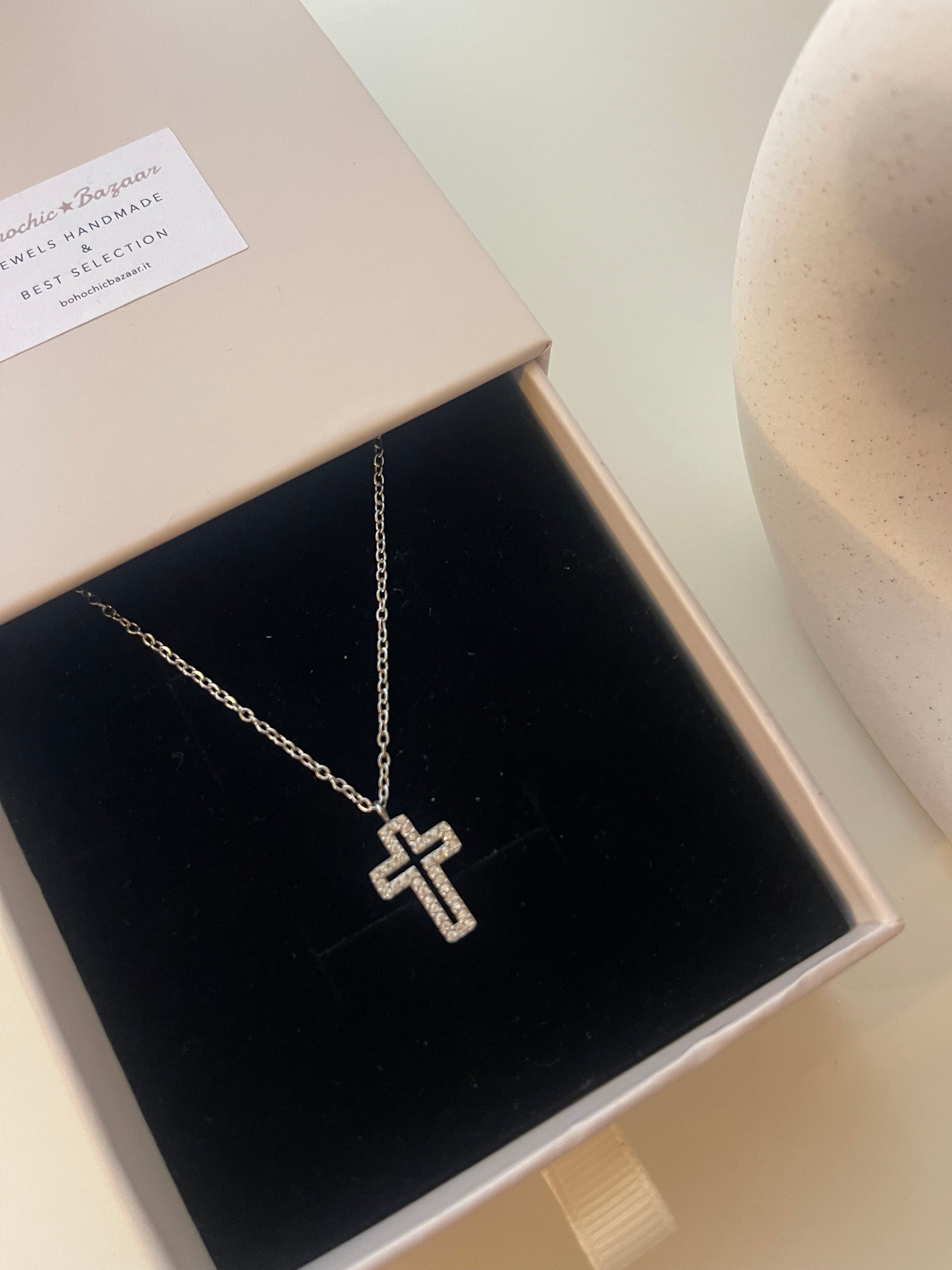 Collana con crocetta Symbol Trend Designe Zirconata. Chiusura con moschettone e allungatura regolabile .