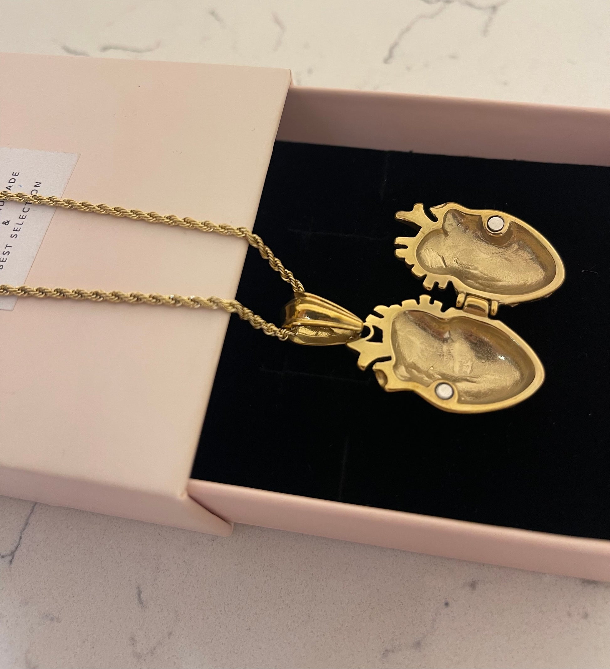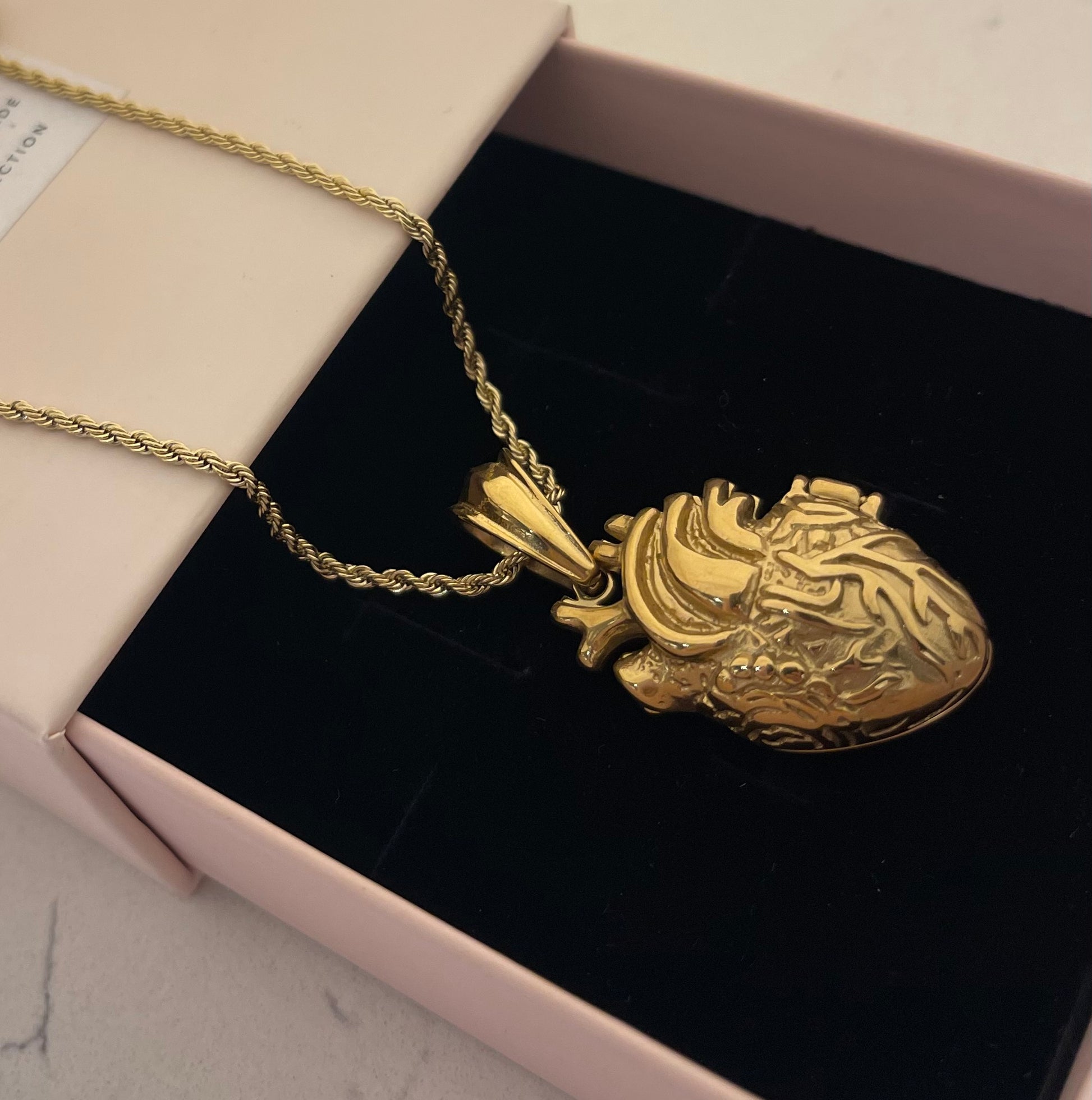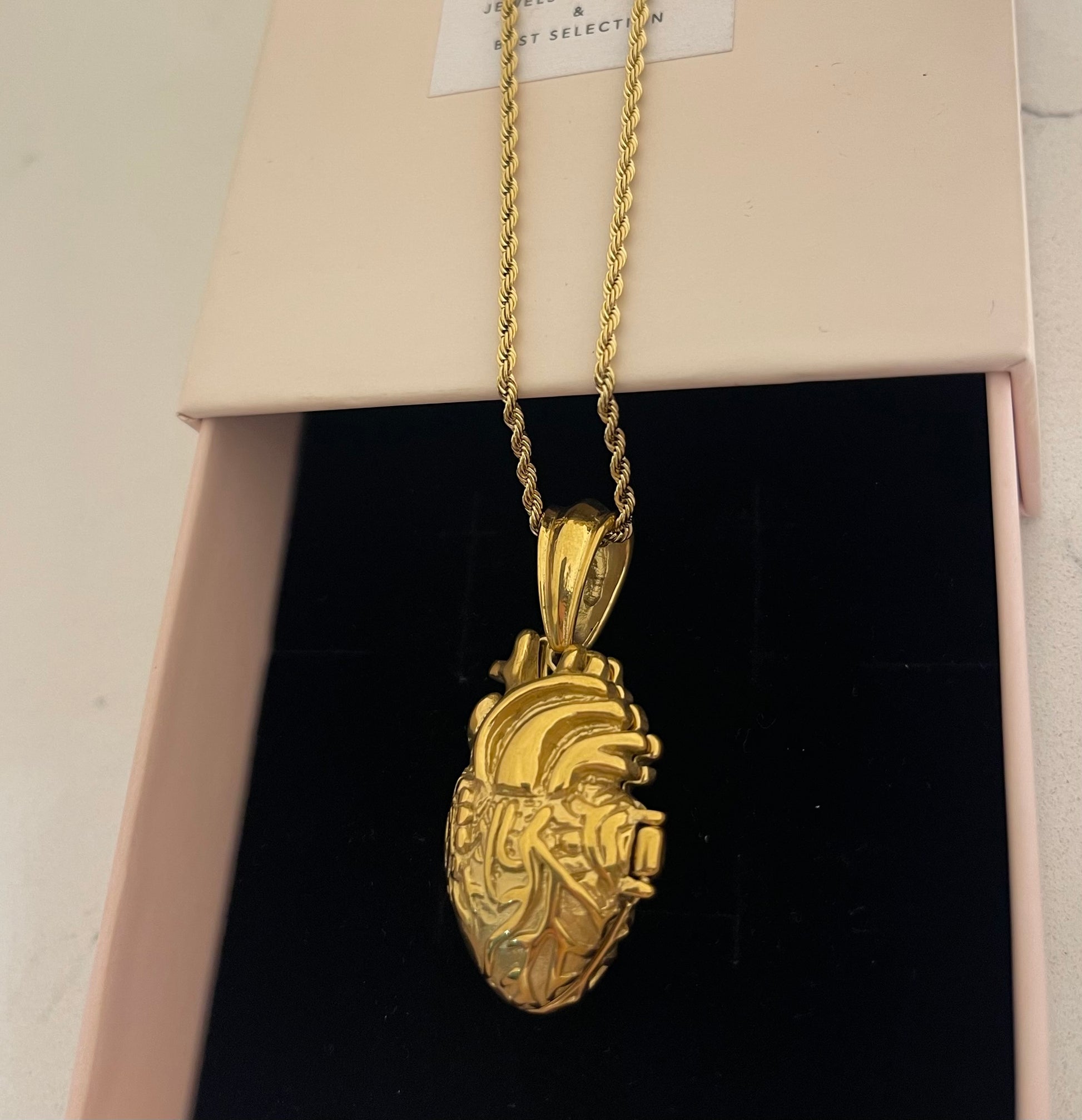 Collana Torchon sottile , con Ciondolo Cuore Anatomico con incisioni e decorazioni a rilievo bombato . La magia di questo ciondolo è che si apre proprio come uno scrigno ✨dove all interno possiamo inserire un piccolo segreto ✨