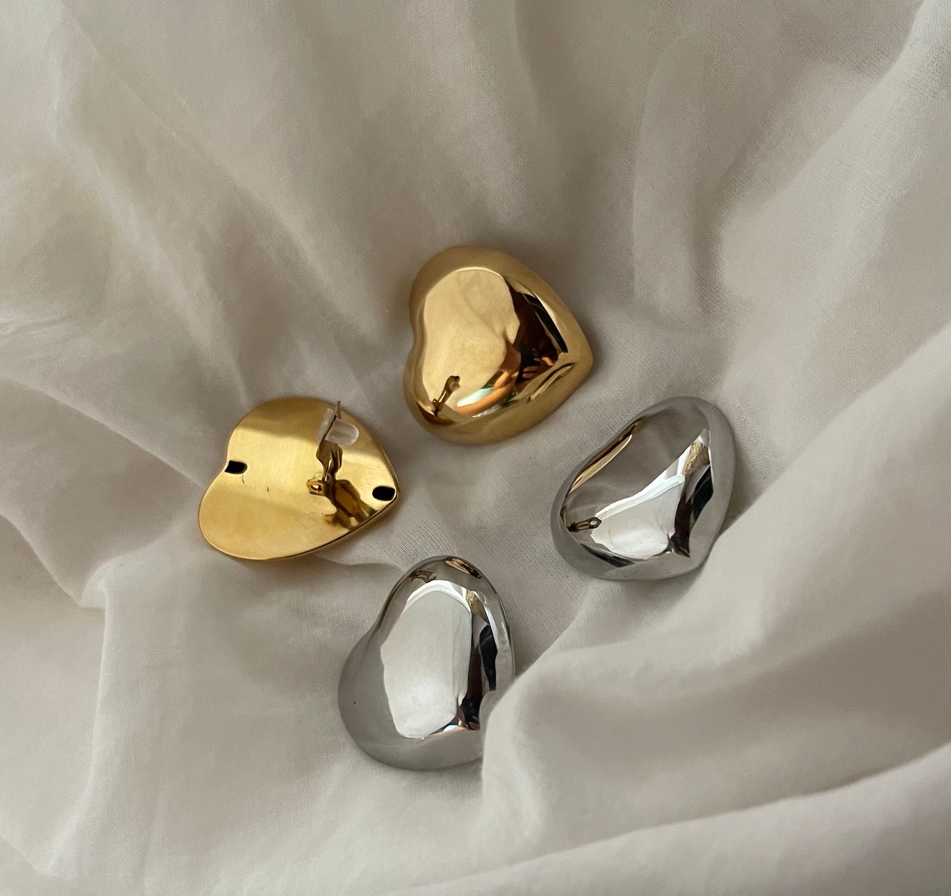 Orecchini Clip Cuore bombato Must Have Trend . Leggeri e comodi da indossare. Clip siliconata