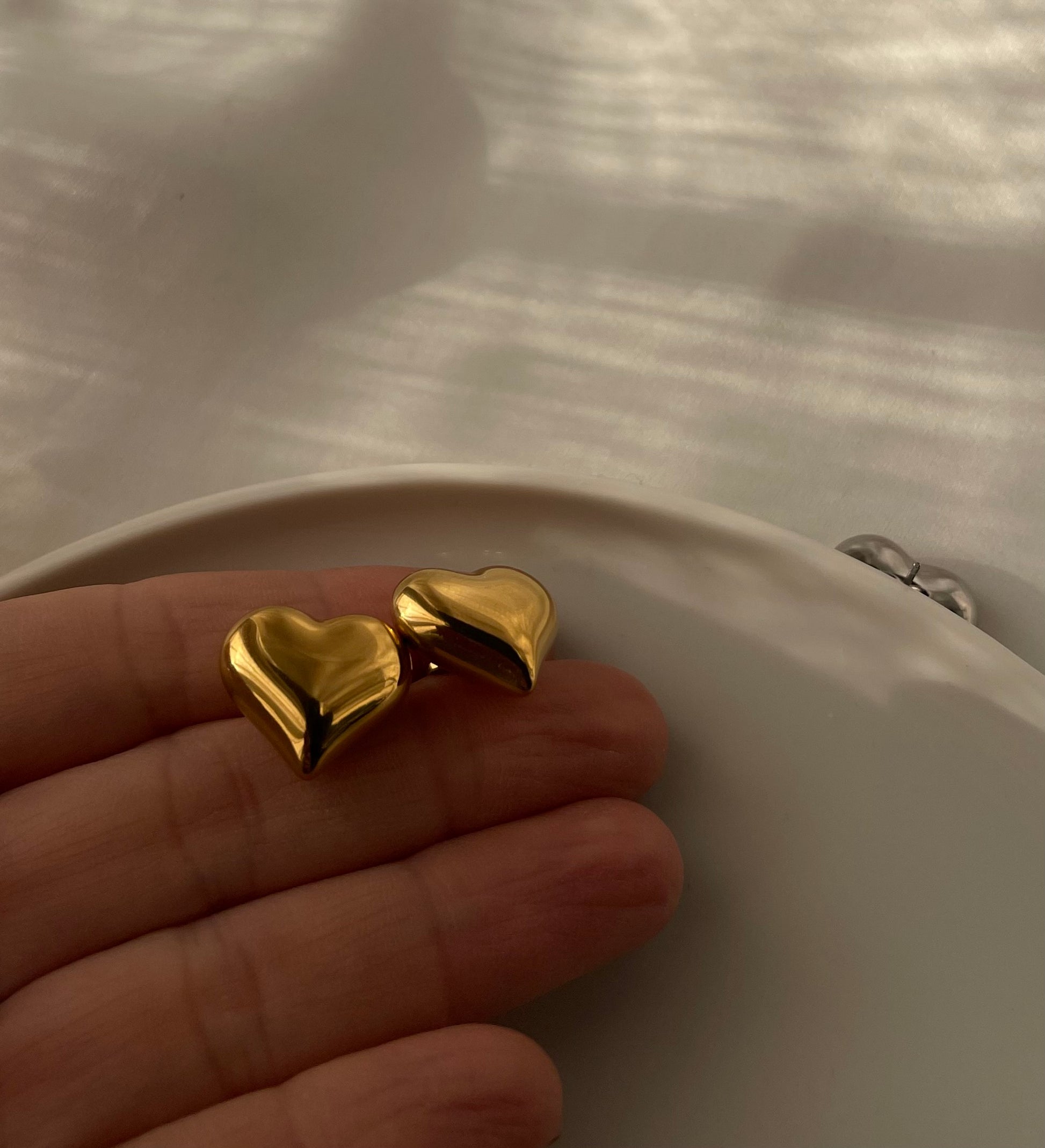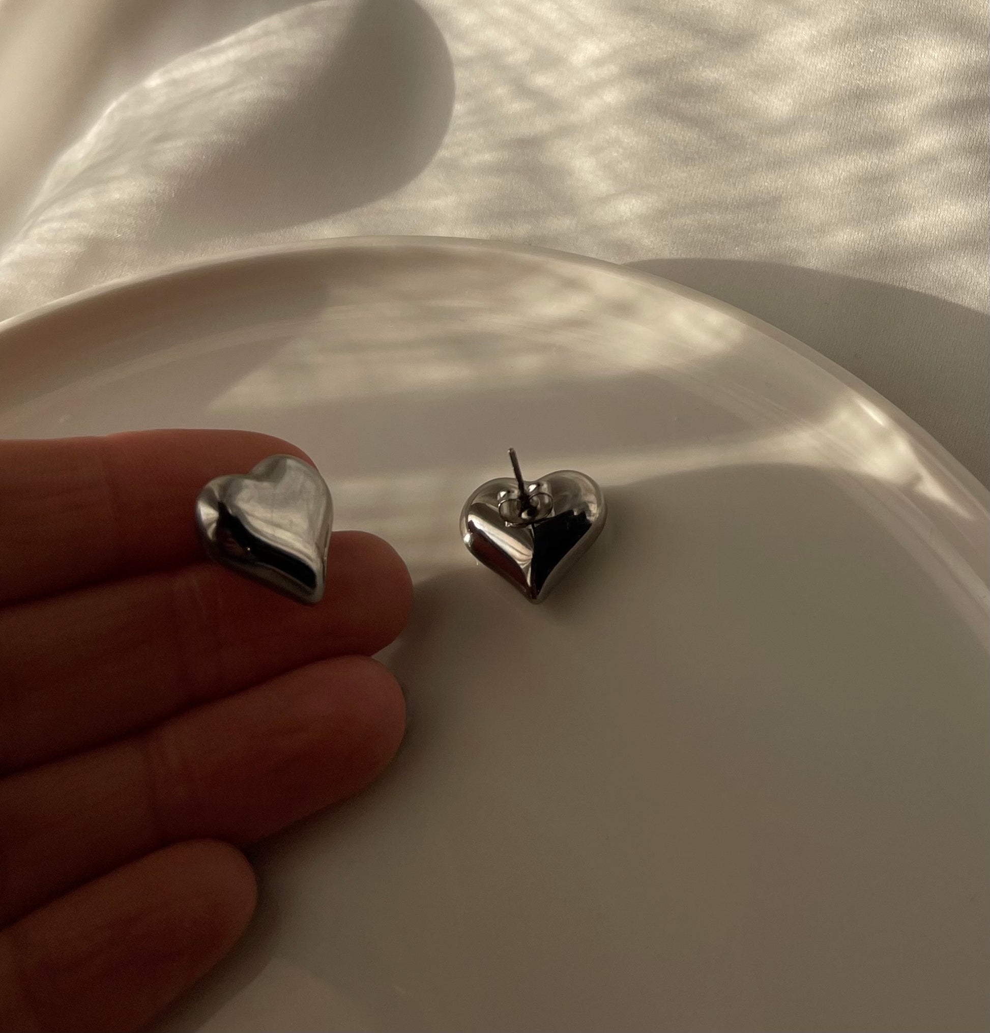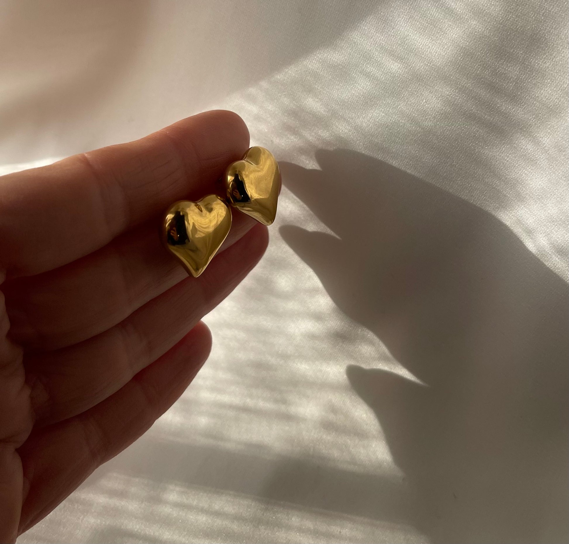 Orecchini a bottone , Cuoricini bombati a lobo. Chiusura con perno e farfallina . Dimensione 18 mm. Il prezzo fa riferimento al paio