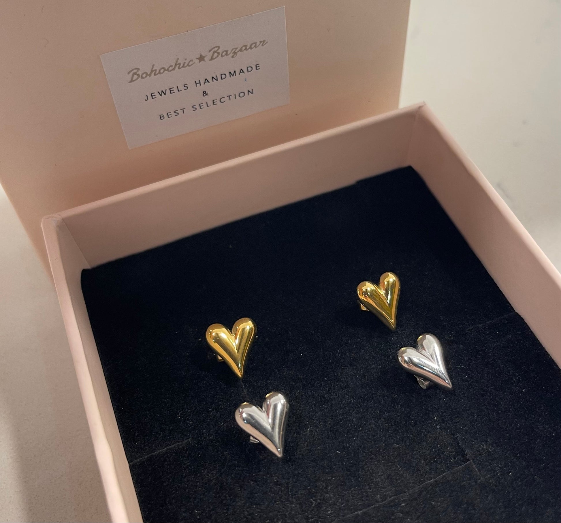 Mini orecchini a bottoncino cuoriino. Chiusura con perno.