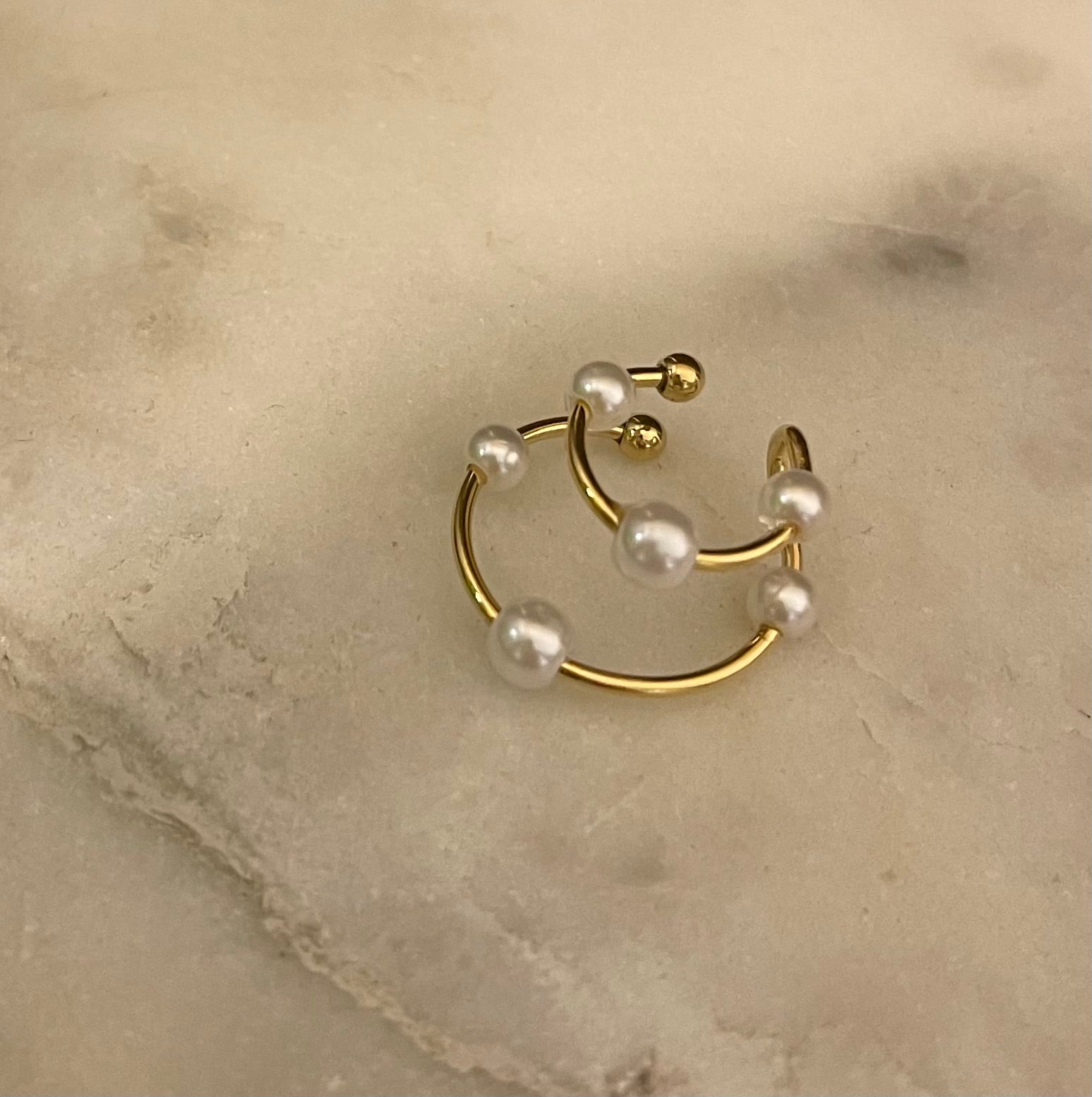 Earcuff spirale a due giri , decorato con perle . Il prezzo fa riferimento ad 1 singolo orecchino (senza buco )