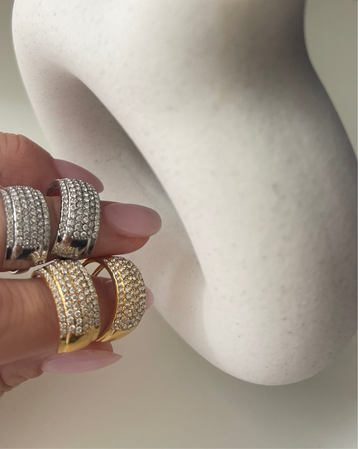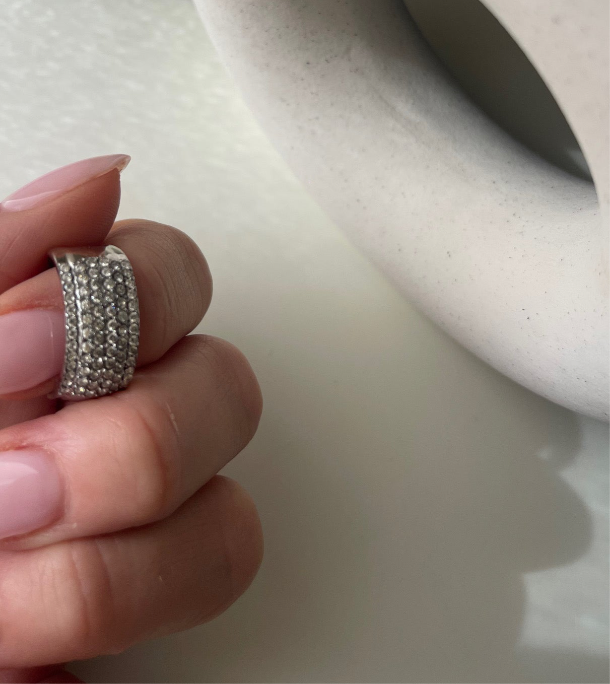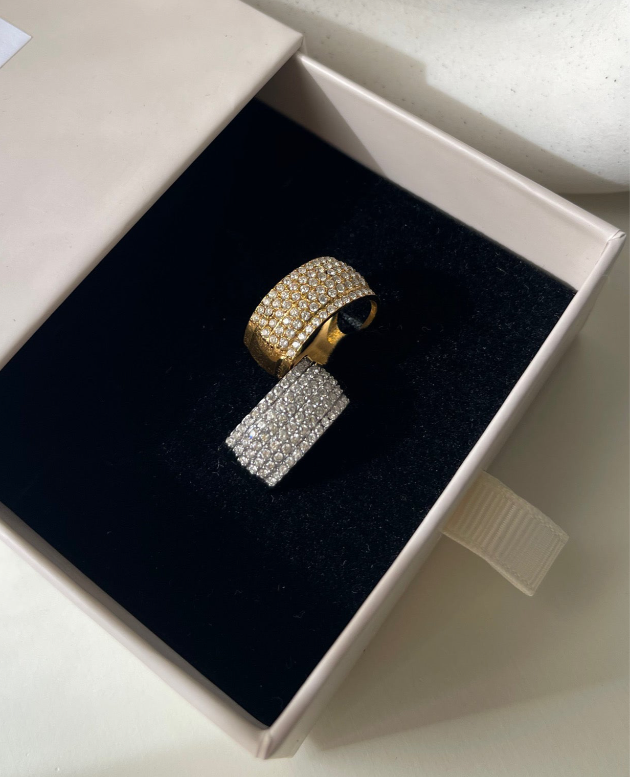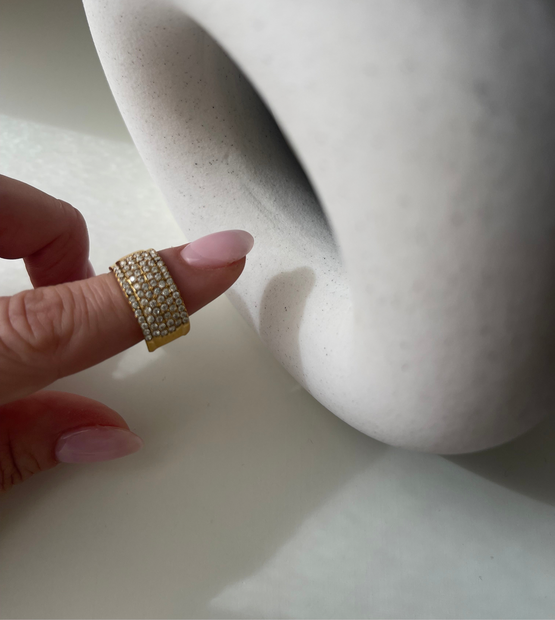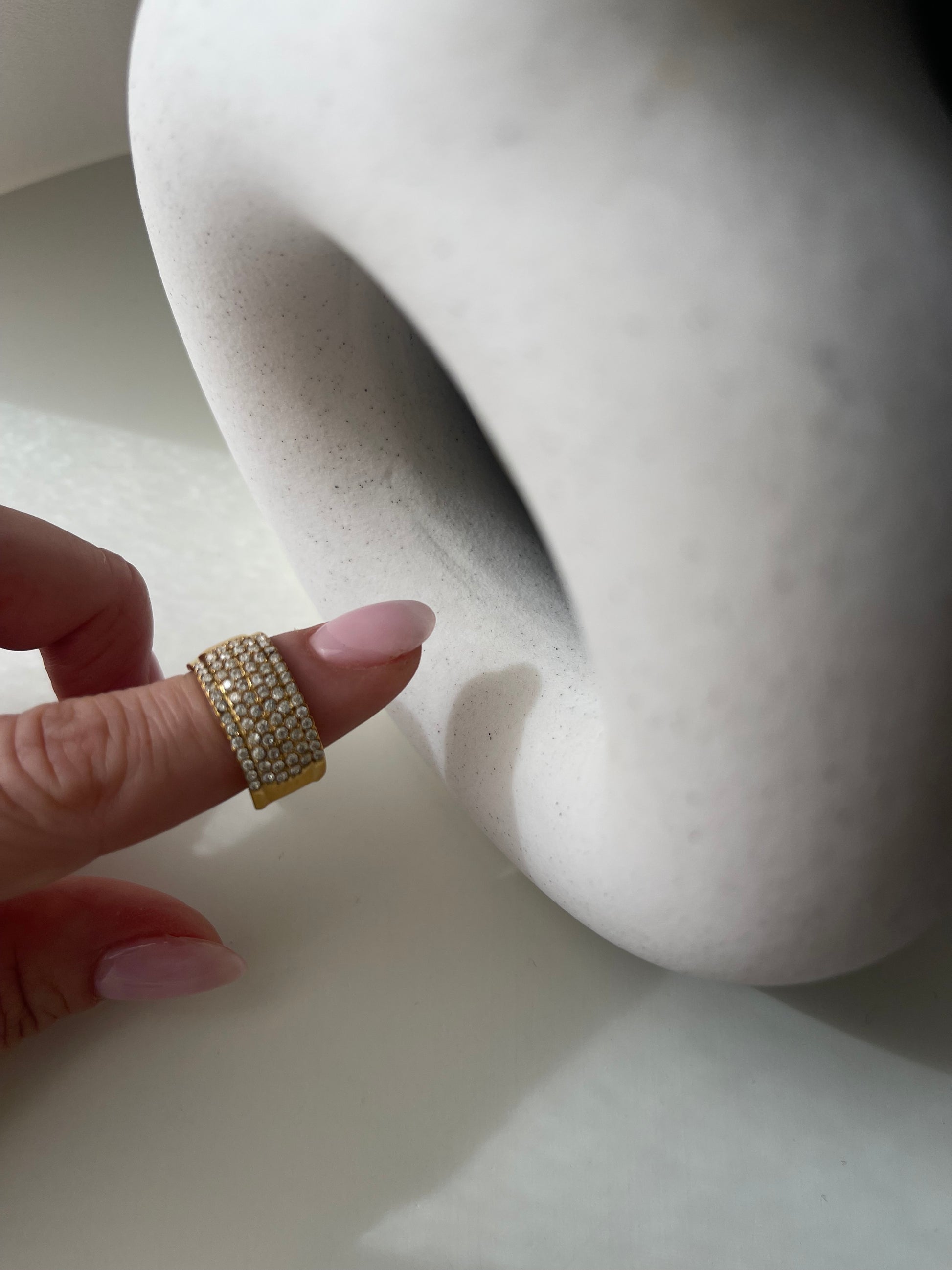 Anello fascia larga Zirconato lavorazione Pavè.Tempeststo di Zirconcini Crystal incastonati