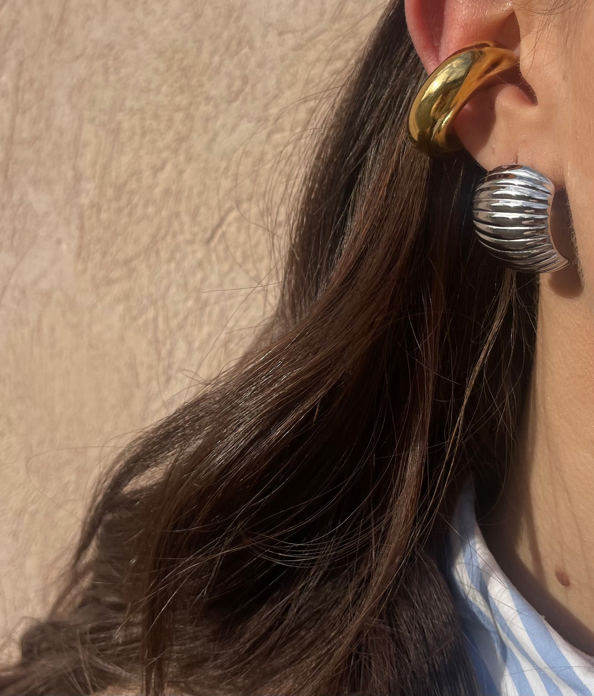 Orecchino 𝗡𝗲𝘄 𝗶𝗻 ! Texture rigata . chiusura con perno e farfallina