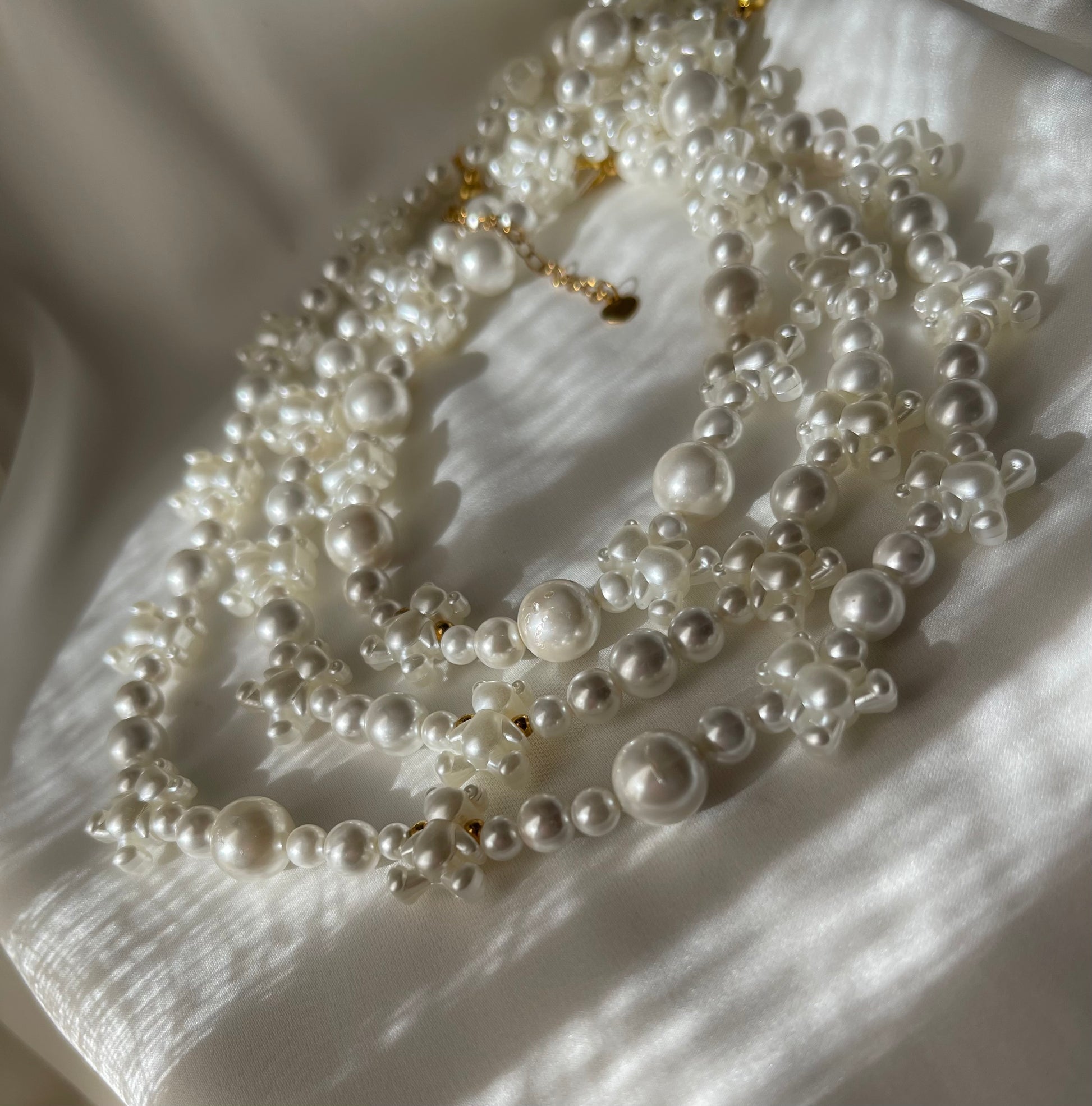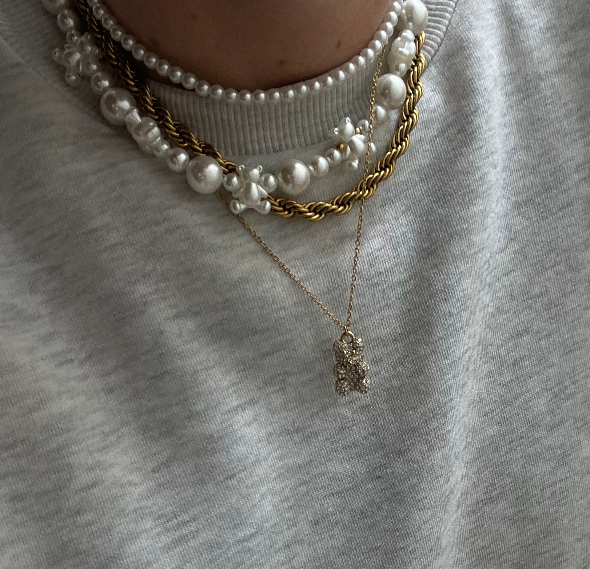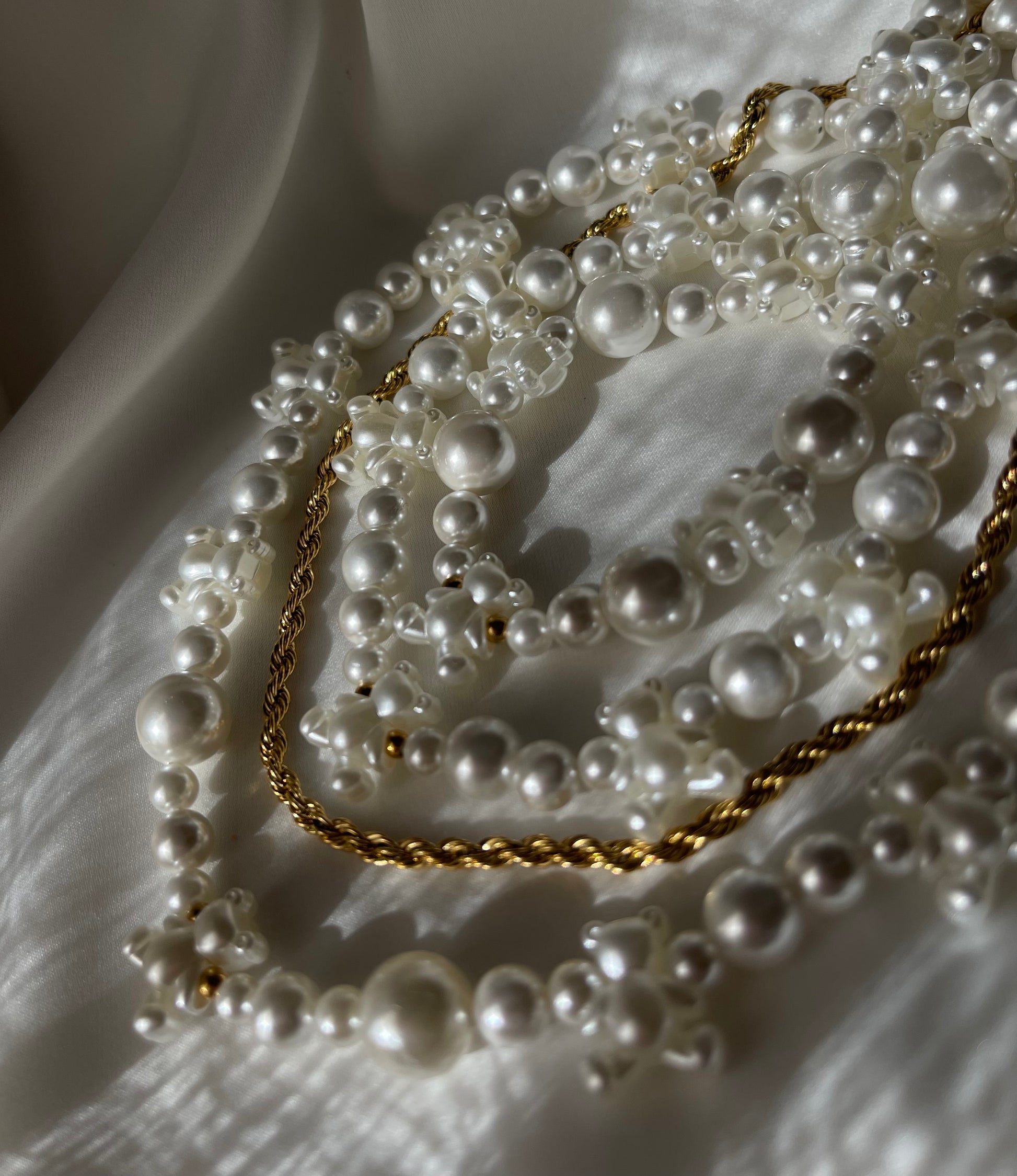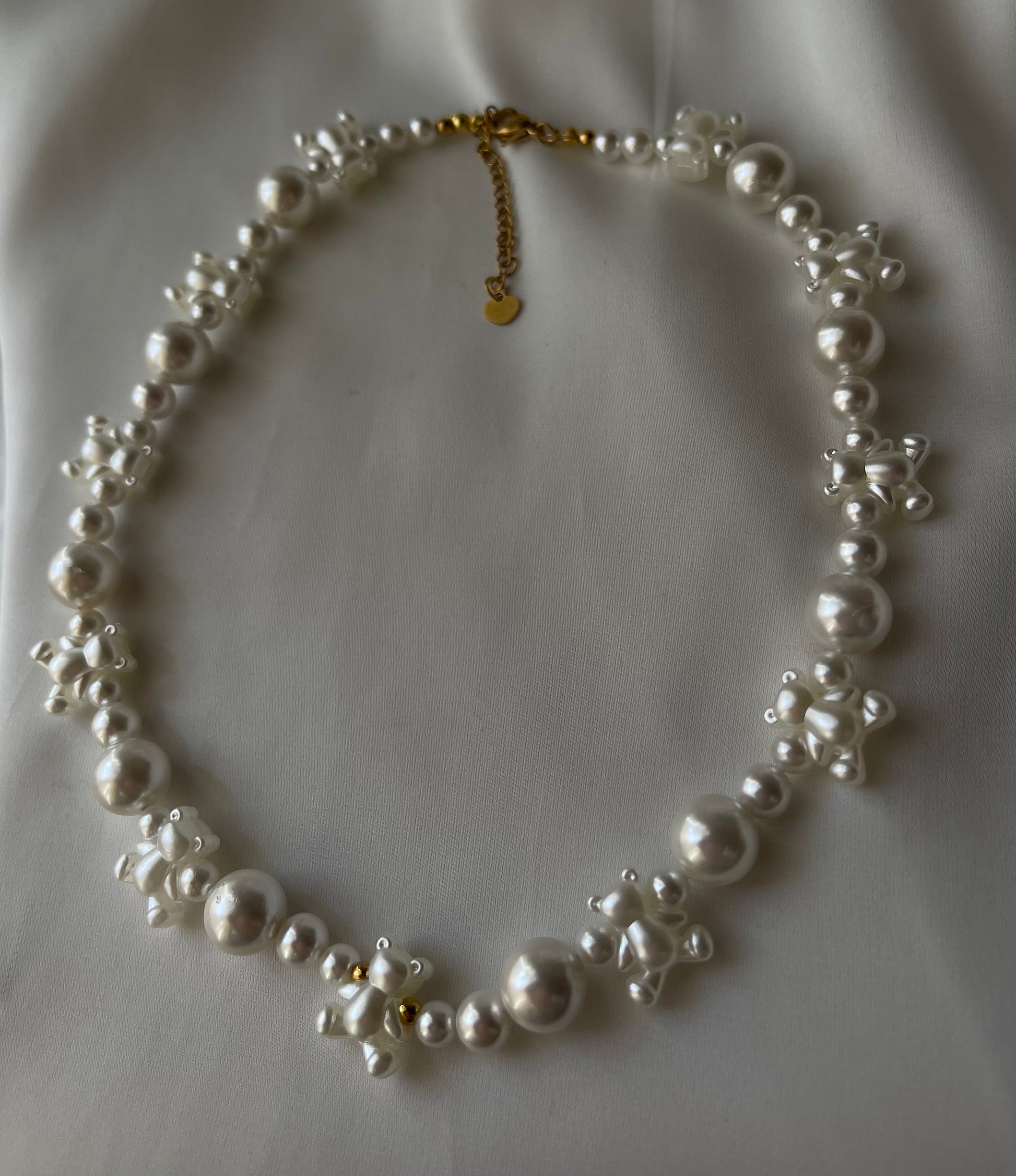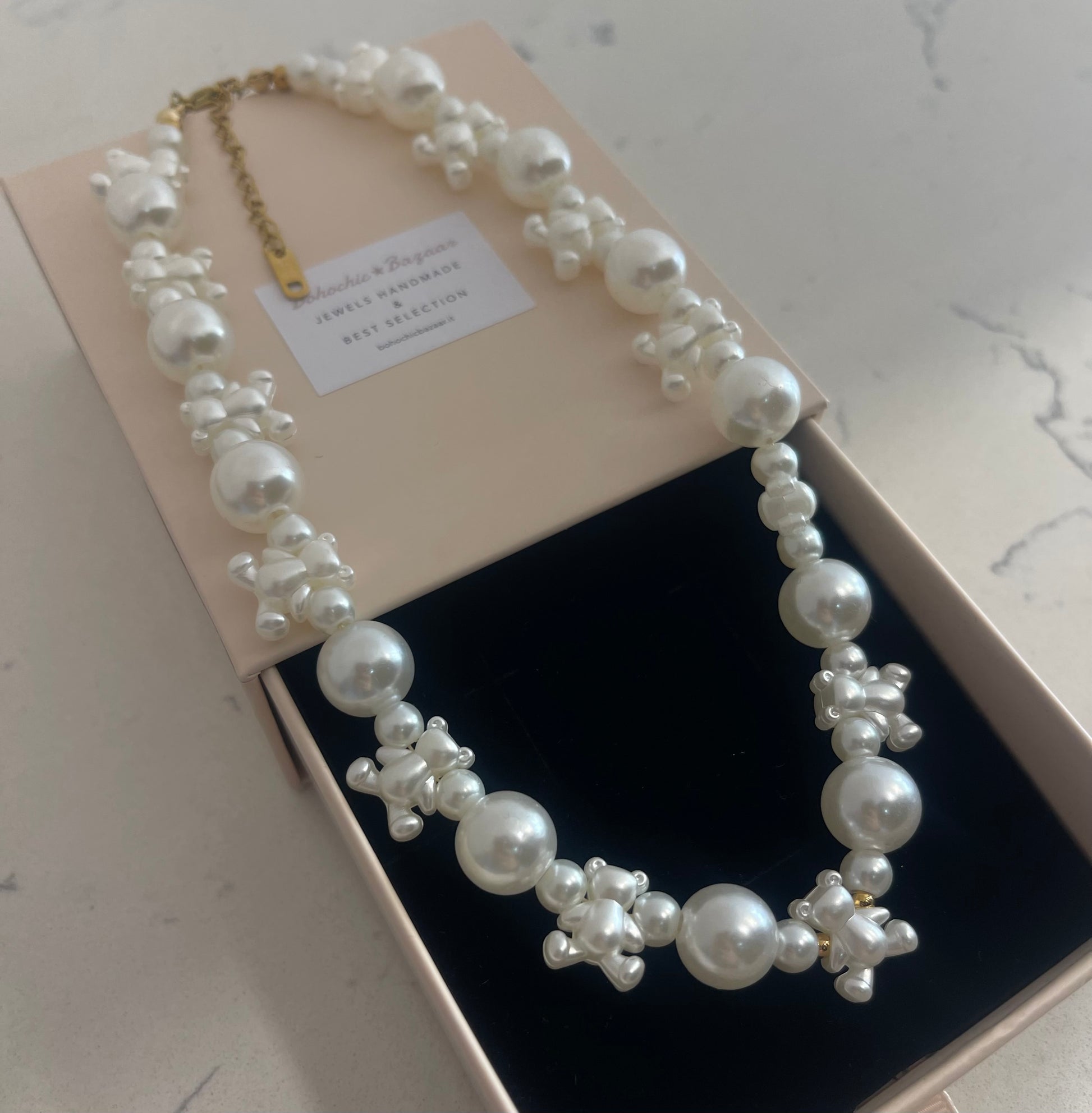 Nuove collane must have trend con orsetti di perle. Adorabili, giocose super Funny Chic 🧸🤍🧸🤍🧸 Interamente realizzate a mano , con perle degradè per creare un effetto Bubble 🫧 🫧 🫧. Collana con chiusura moschettone e allungatura regolabile