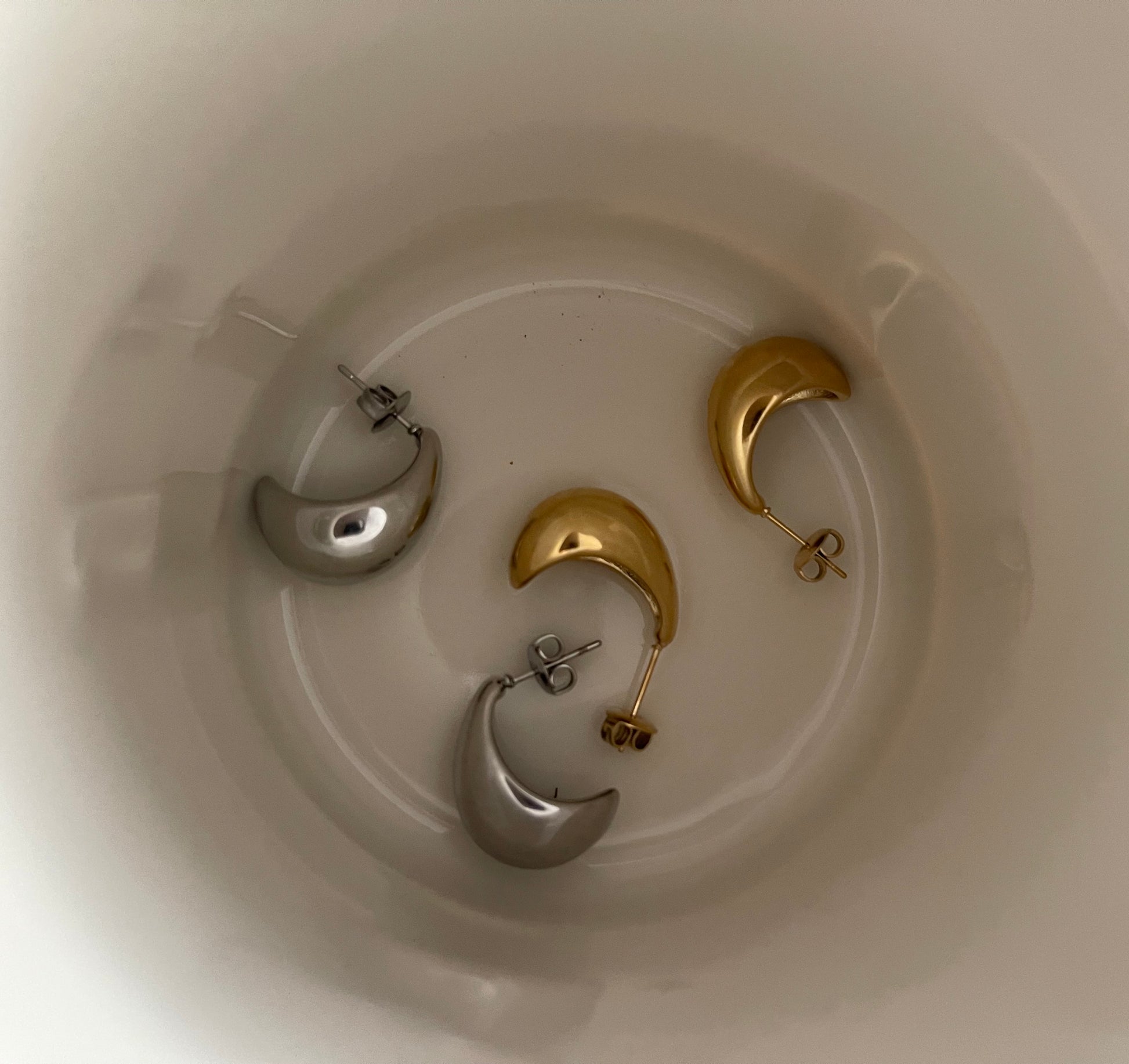 Orecchino a lobo Lunetta allungata Bold. Chiusura a Perno con farfallina . Dimensione 2 cm. Il prezzo fa rimento al paio