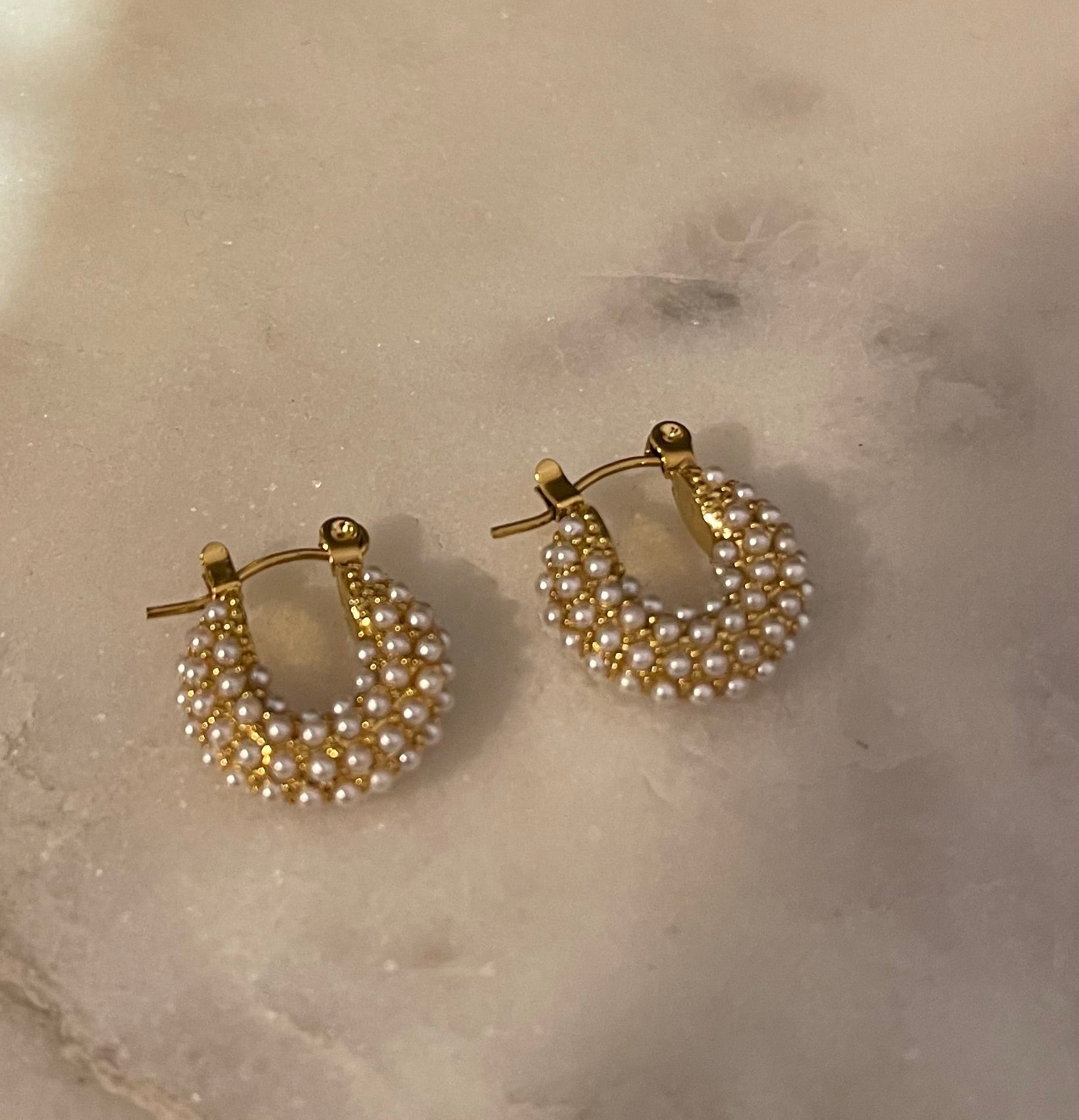 Piccoli mini Hoops dal Designe ricercato, bombatini ricoperti di perle Chiusura classica. Il prezzo fa riferimento al paio. Diametro 1,5 cm