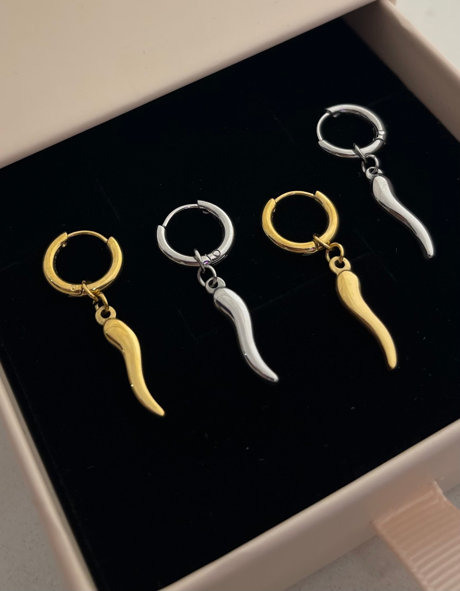 Mini cerchietto con cornetto pendente portafortuna ✨🌶️.Il prezzo fa riferimento al singolo orecchino