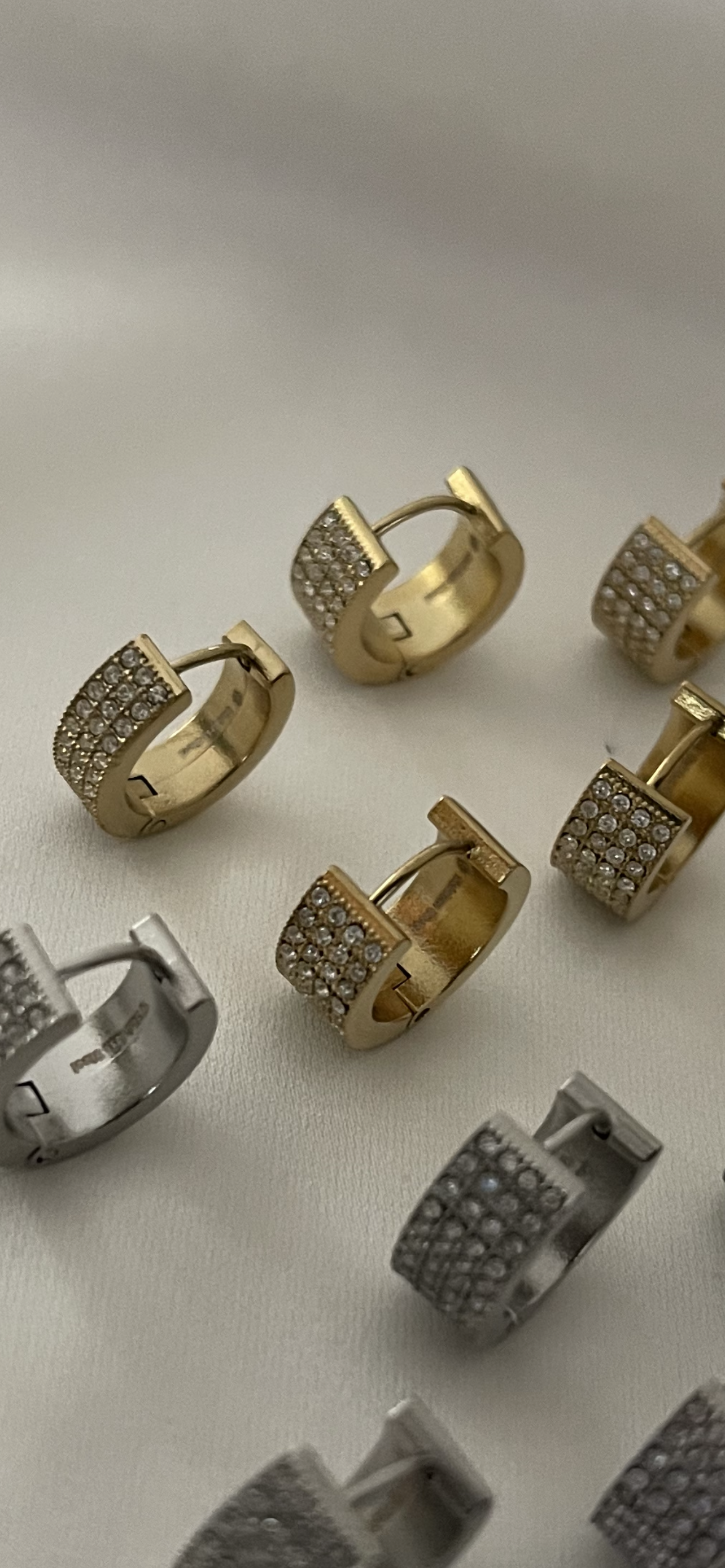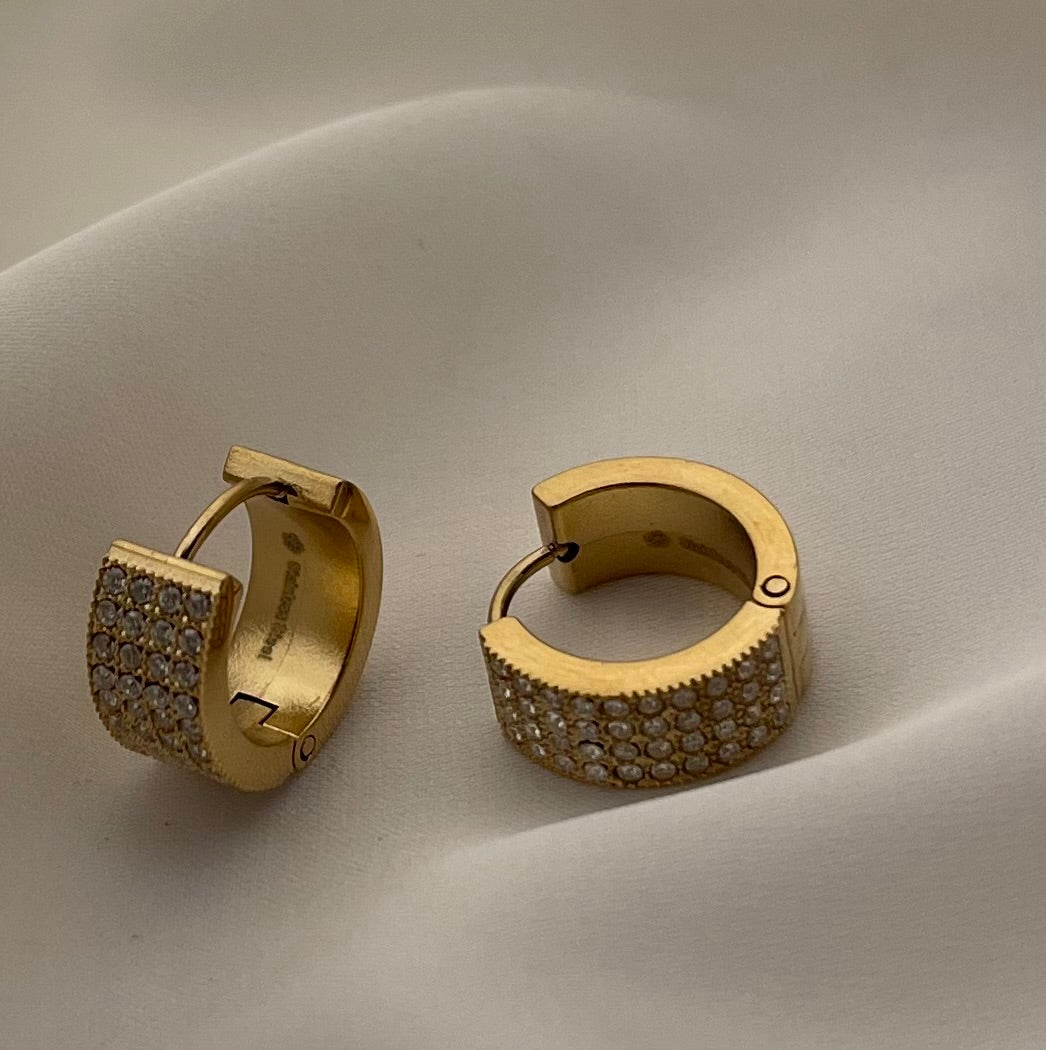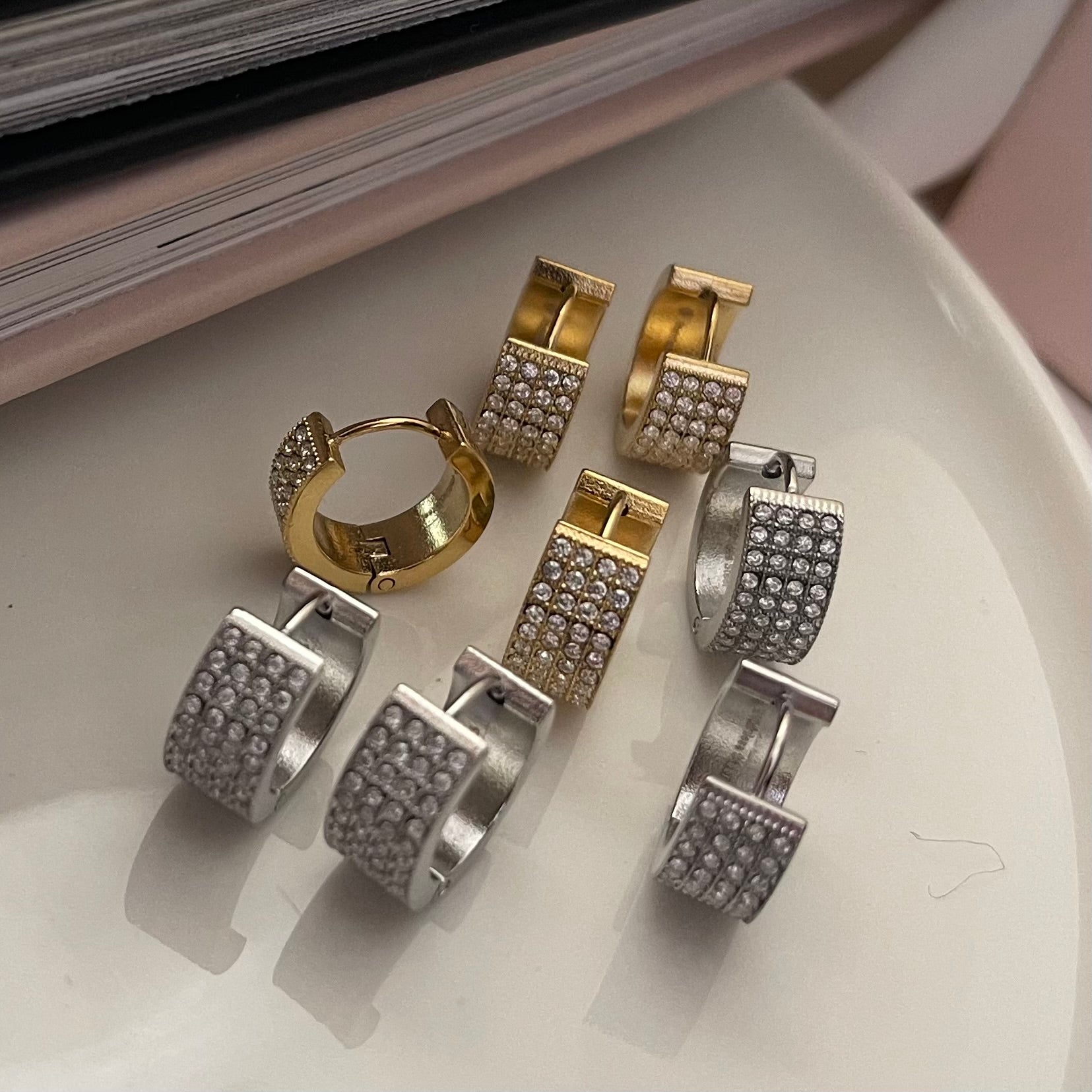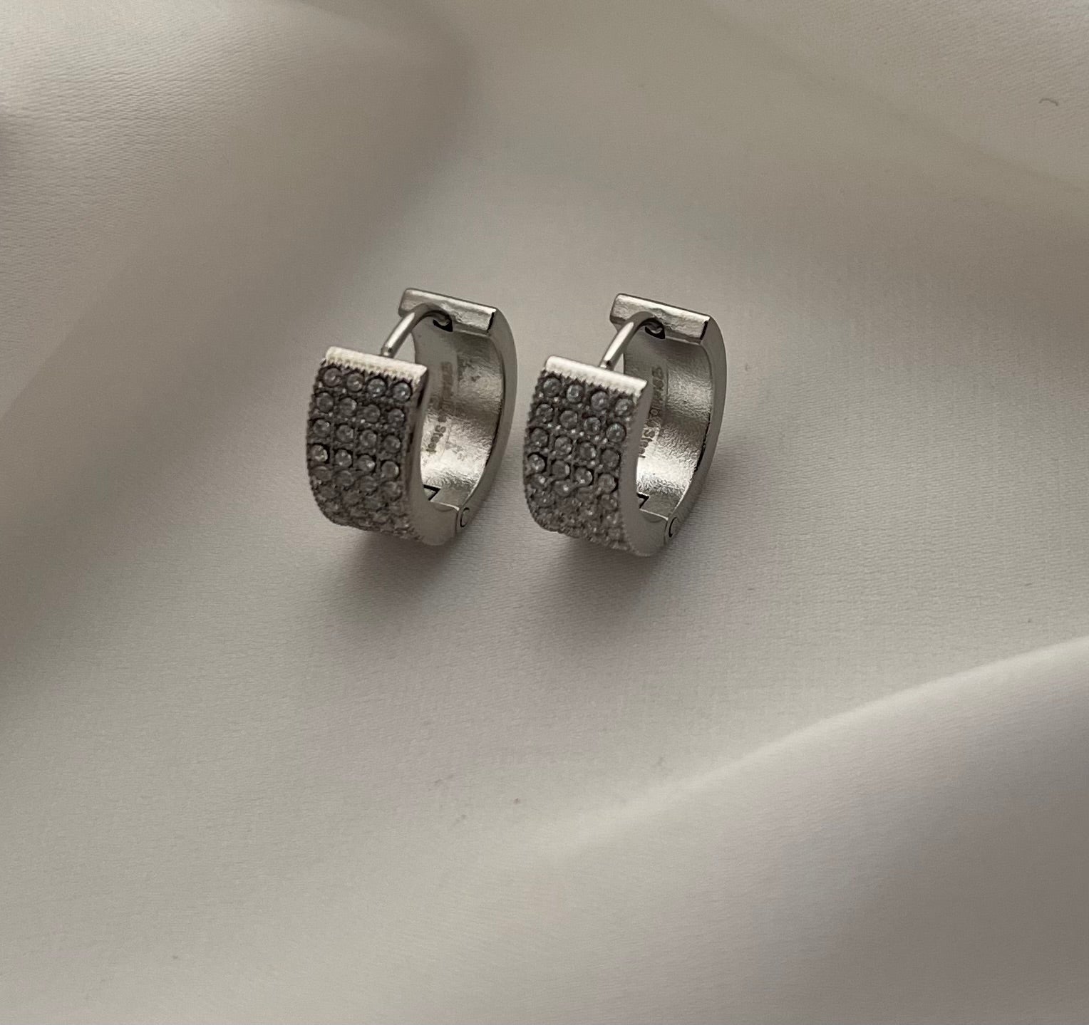 Mini cerchietti fascia larga Pavè, con Zirconcini incastonati. Il prezzo fa riferimento al paio