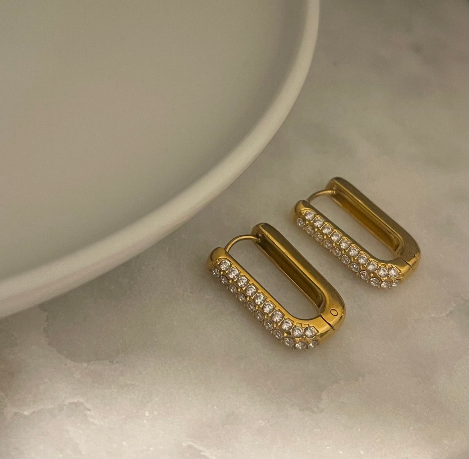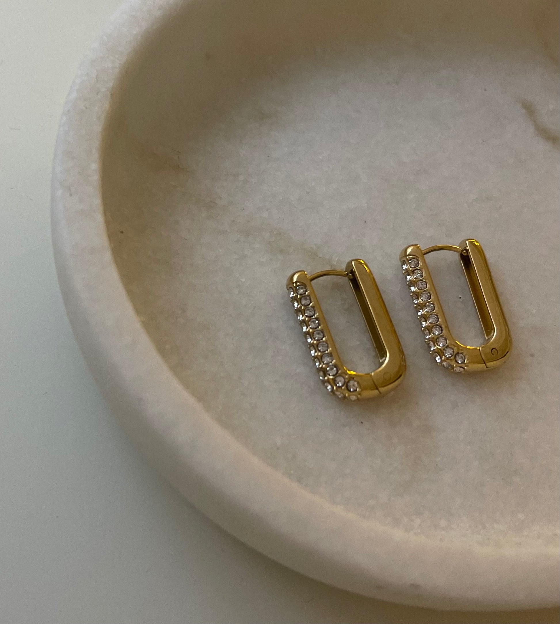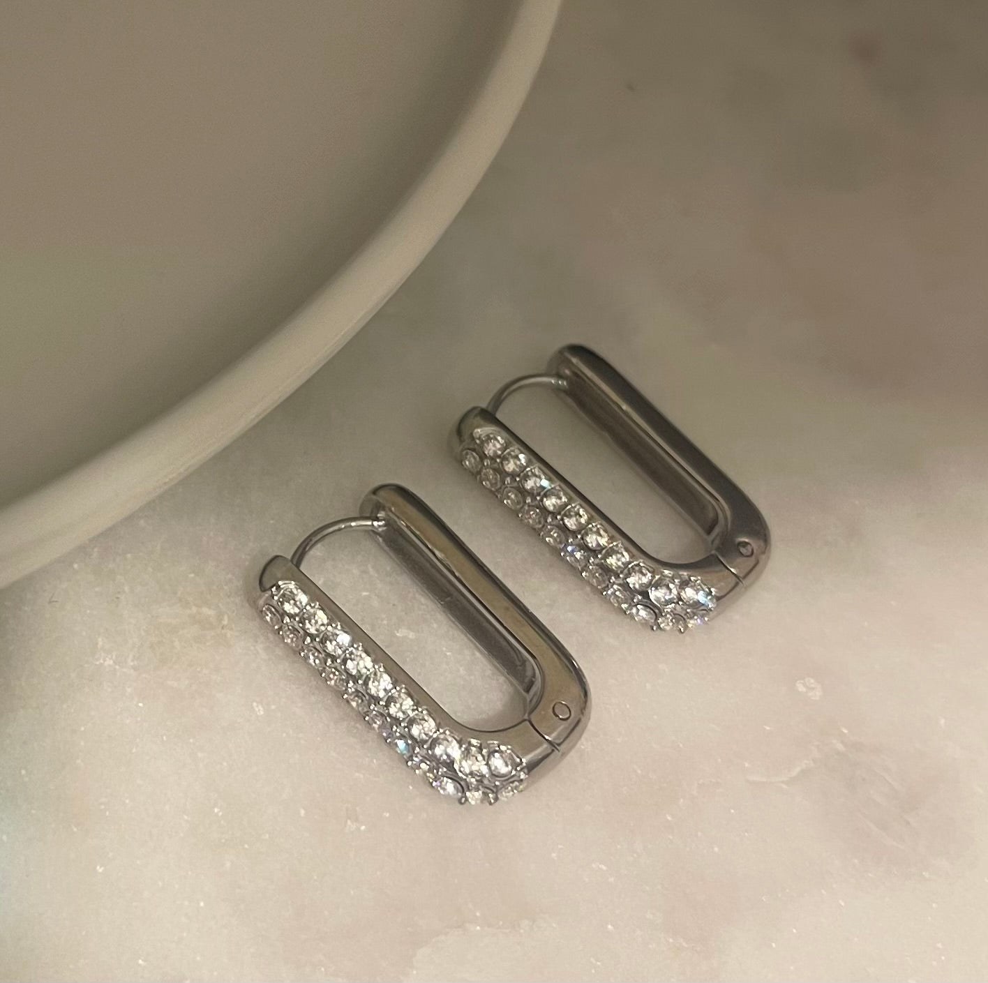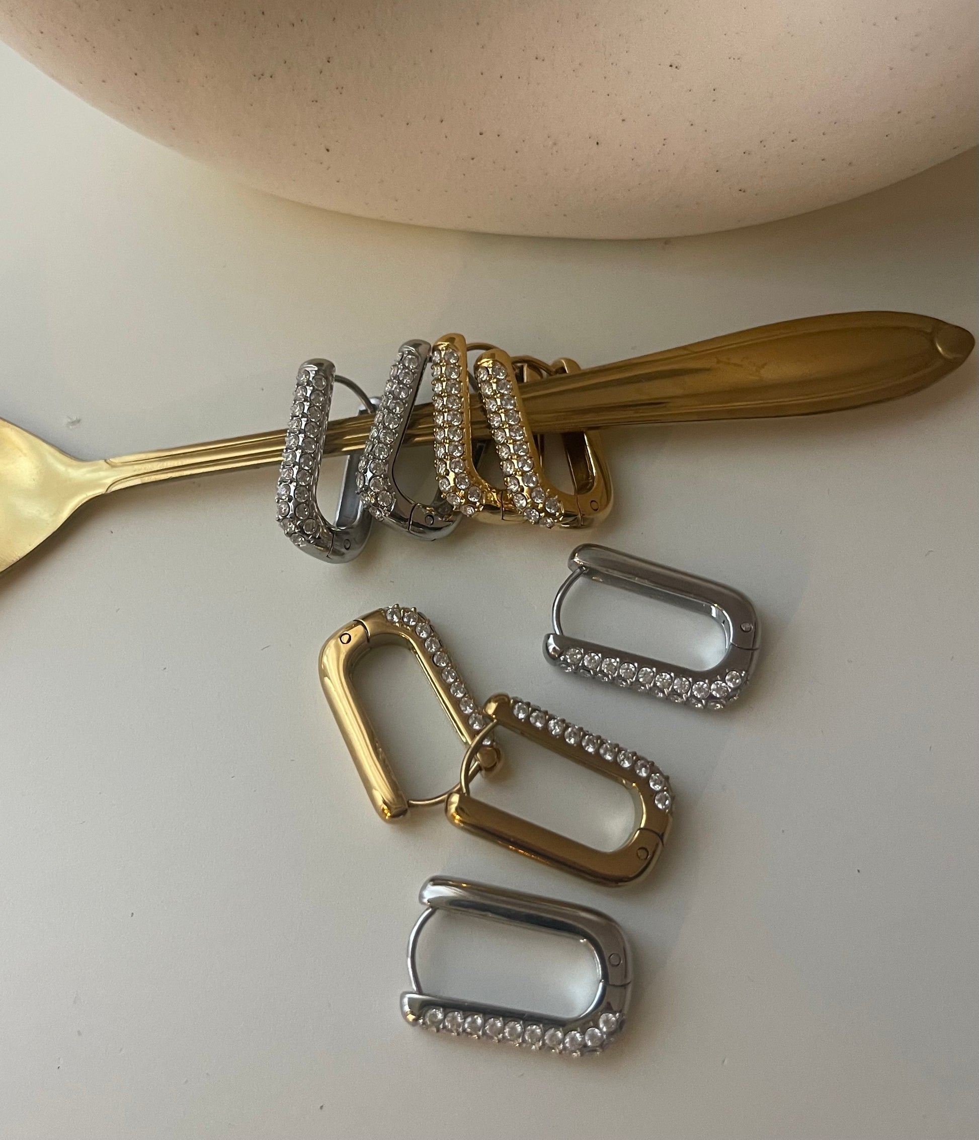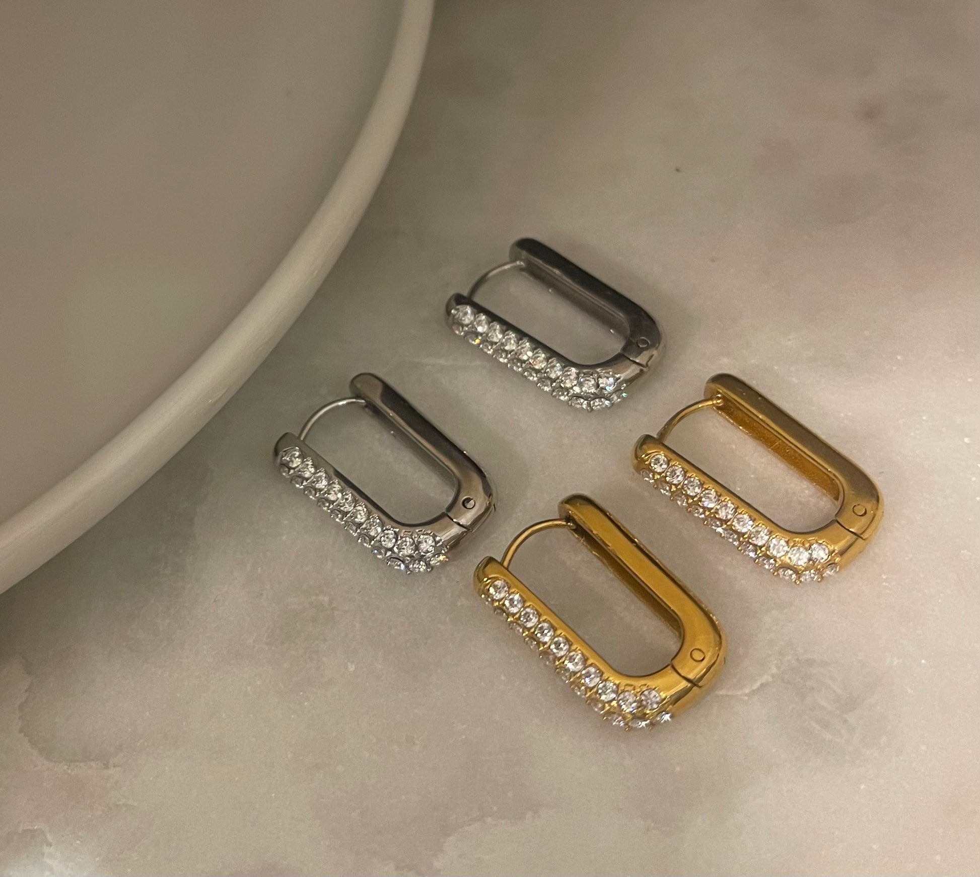 Mini orecchini Zirconi incastonati crystal. Dimensione 20 mm. Chiusura a scatto.