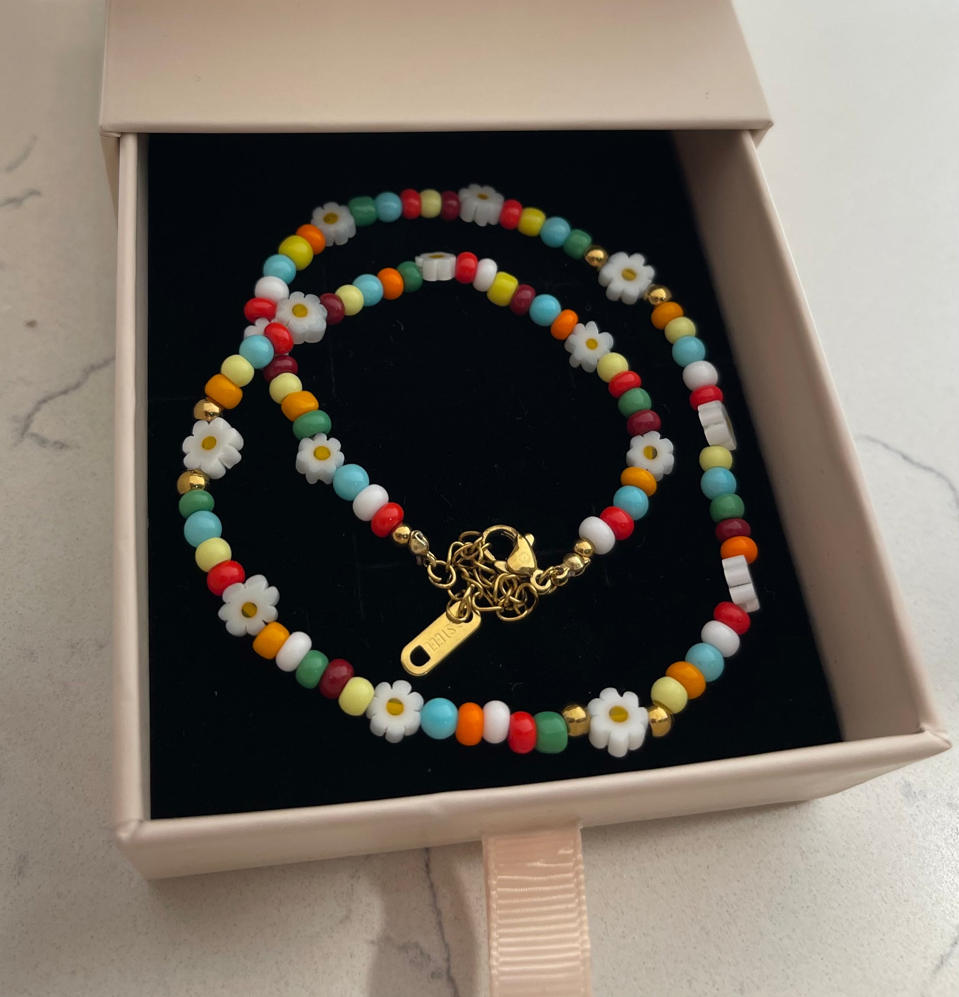 Collanina realizzata con perline Conteria Multicolor, e fiorellini .