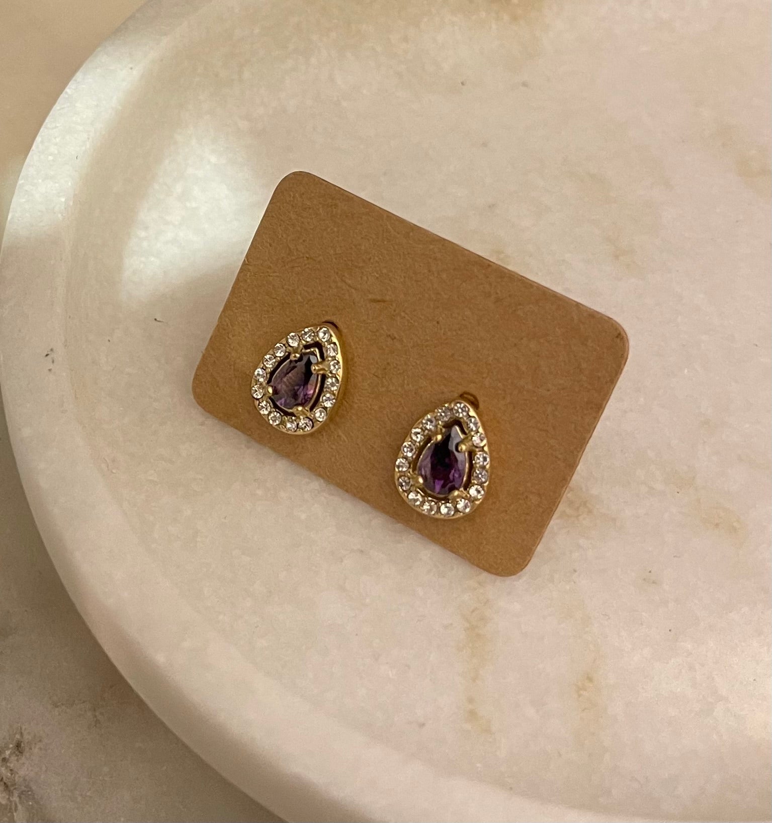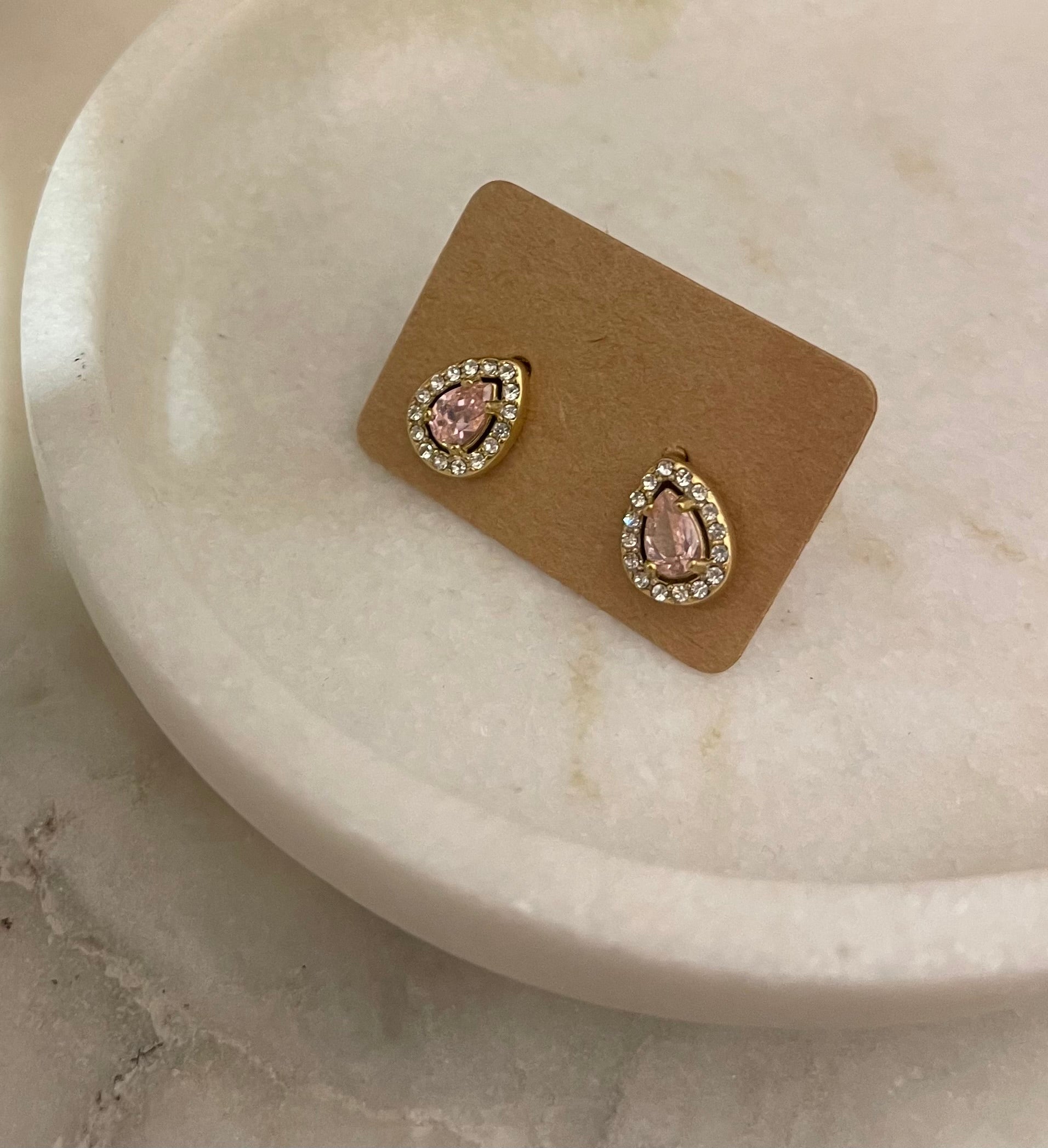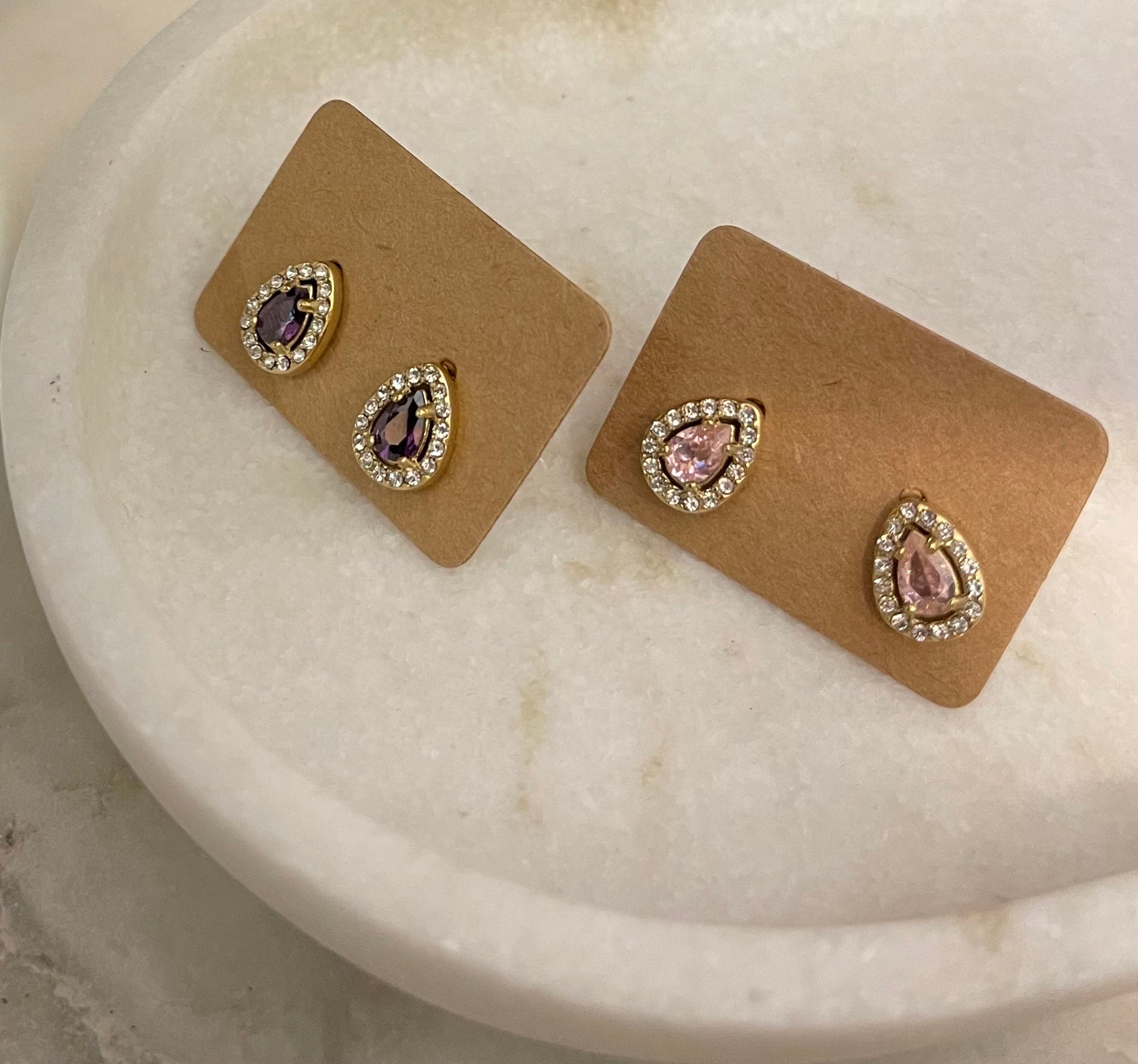 Mini Earrings , pietra centrale a Goccia, contornata di Zirconcini Crystal.