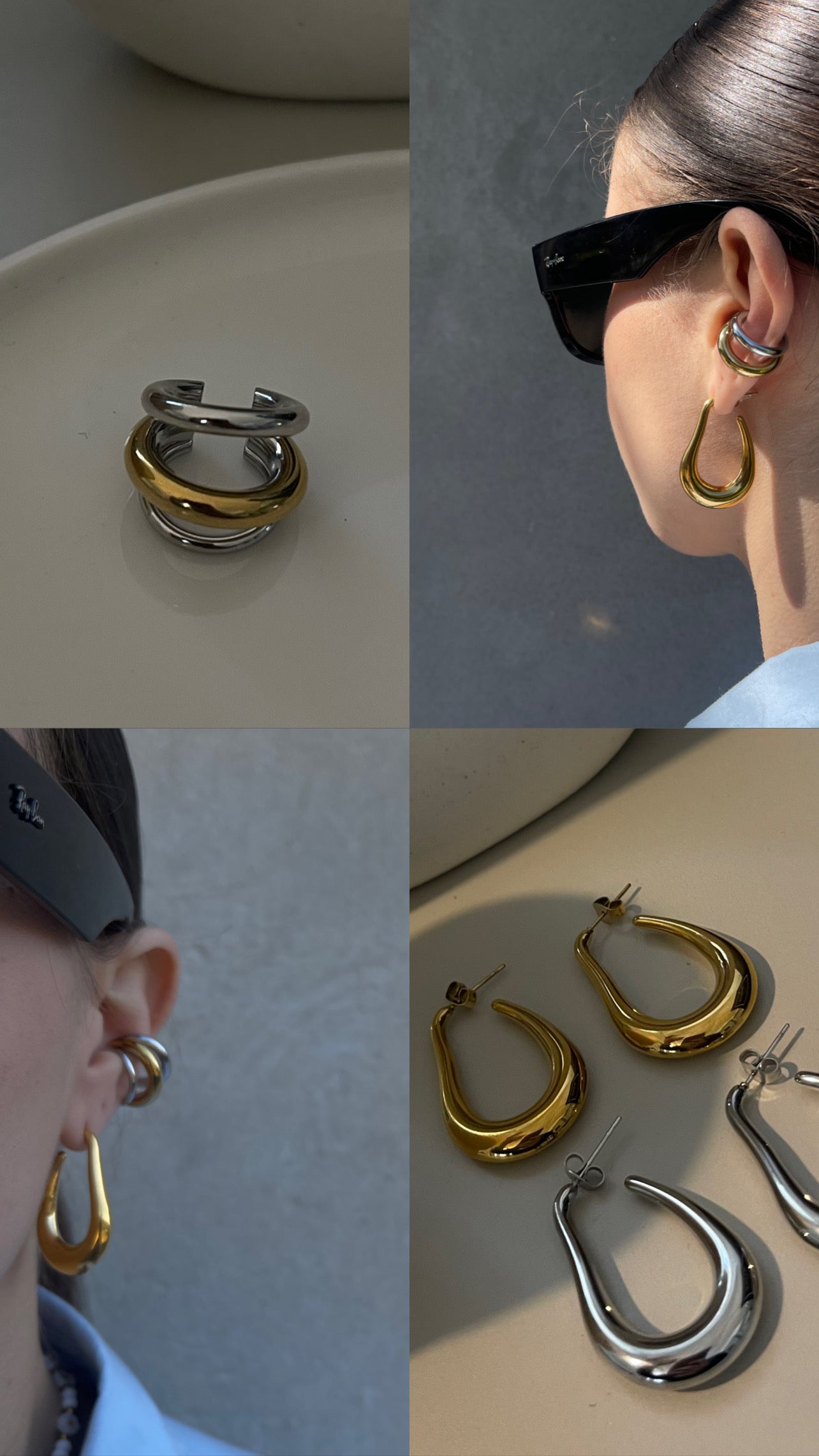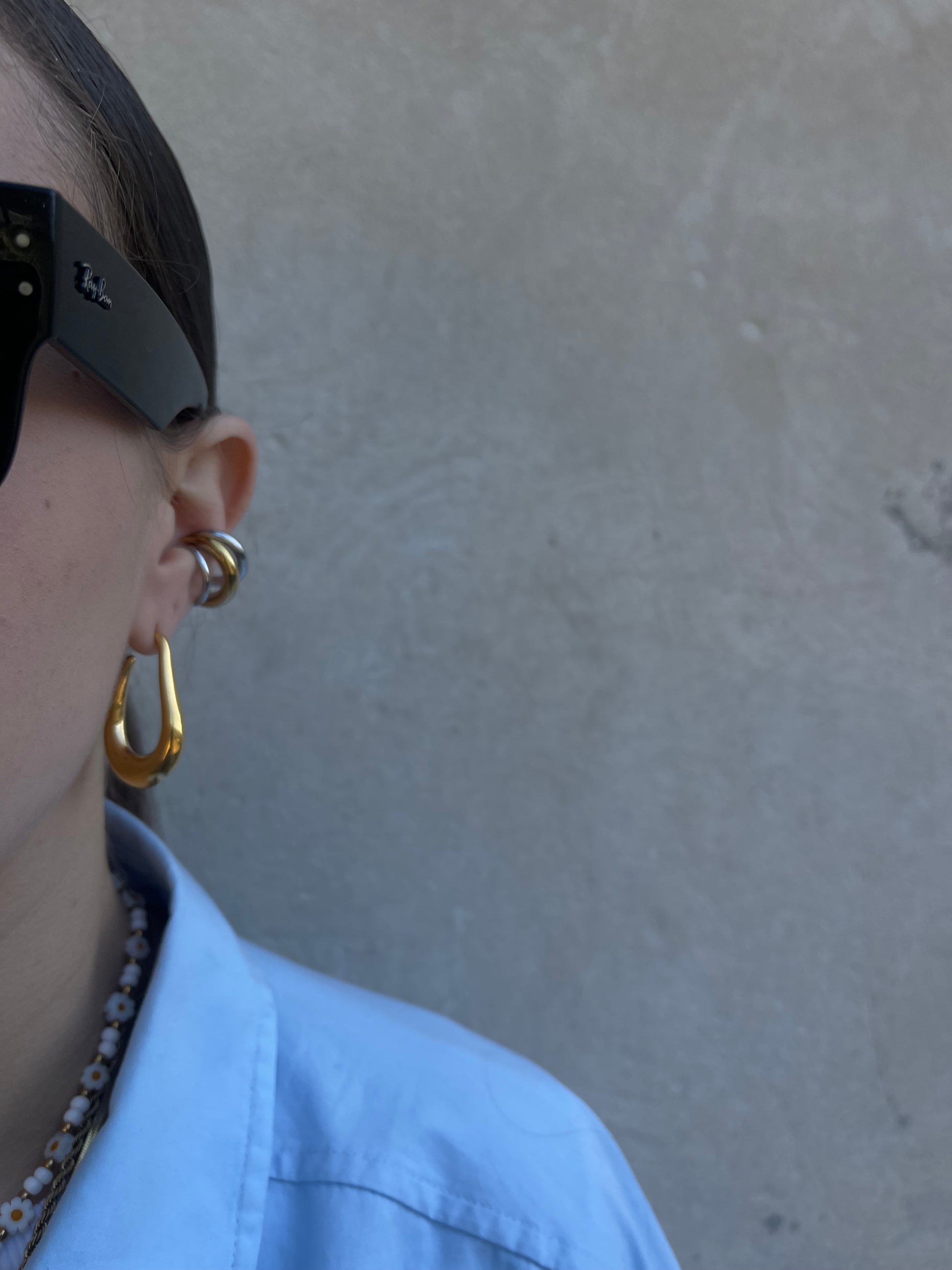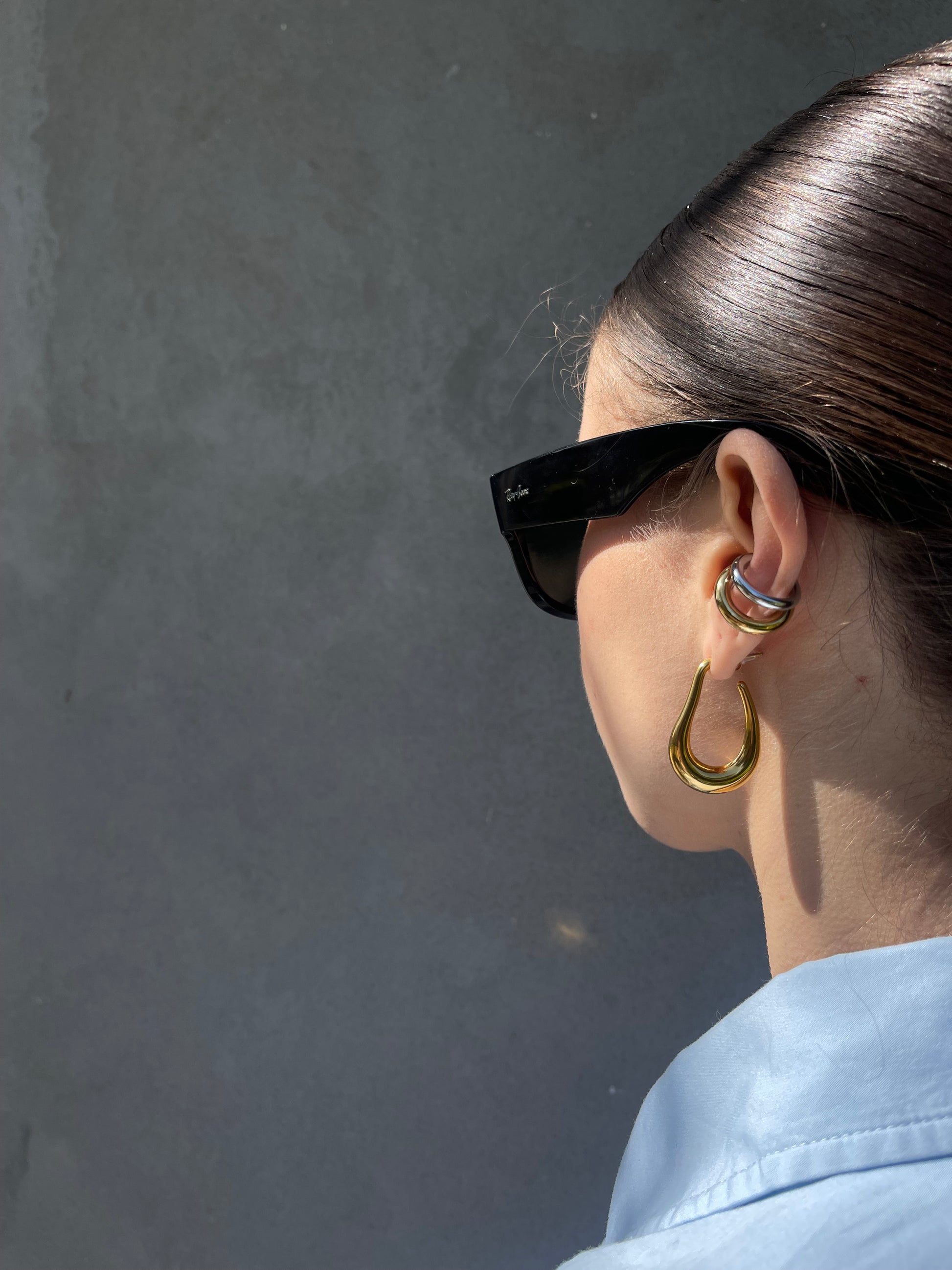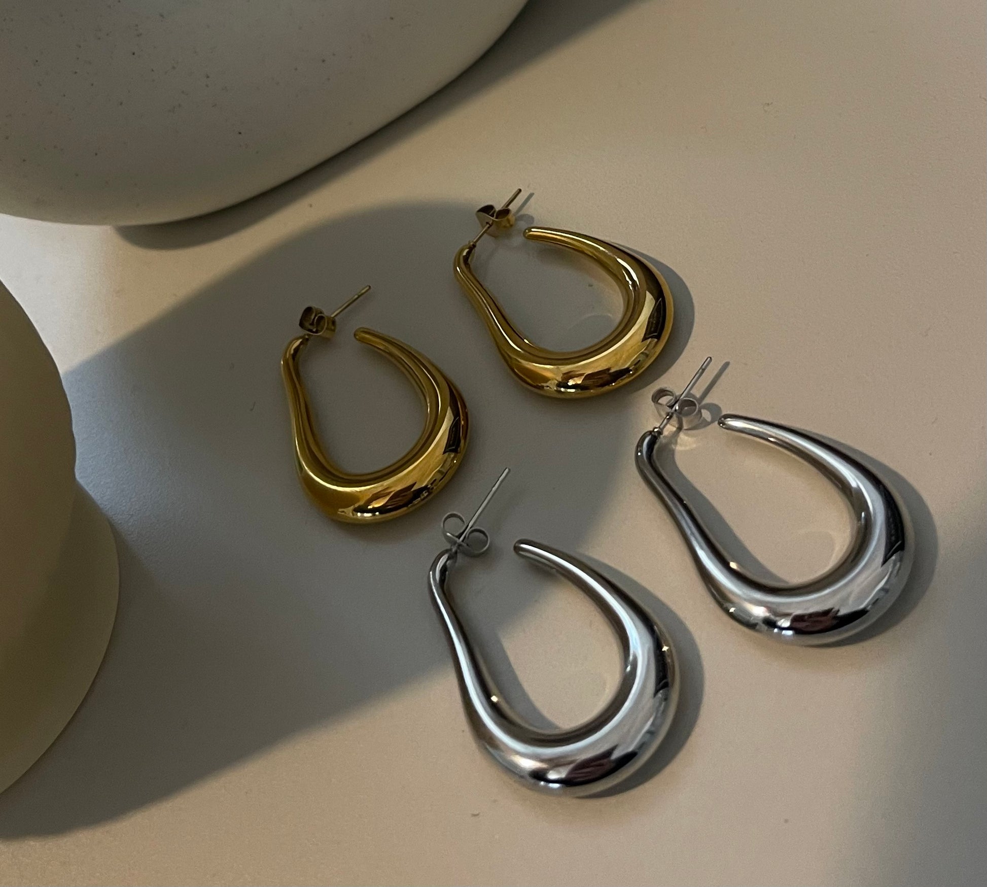 Orecchino semi bombato dalla forma irregolare allungata . Un nuovo Designe trend . Chiusura a perno con farfallina