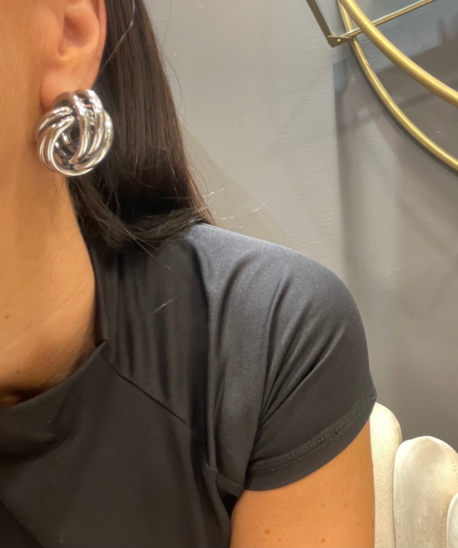 Orecchino sfera bottone . A lobo, con perno e farfallina