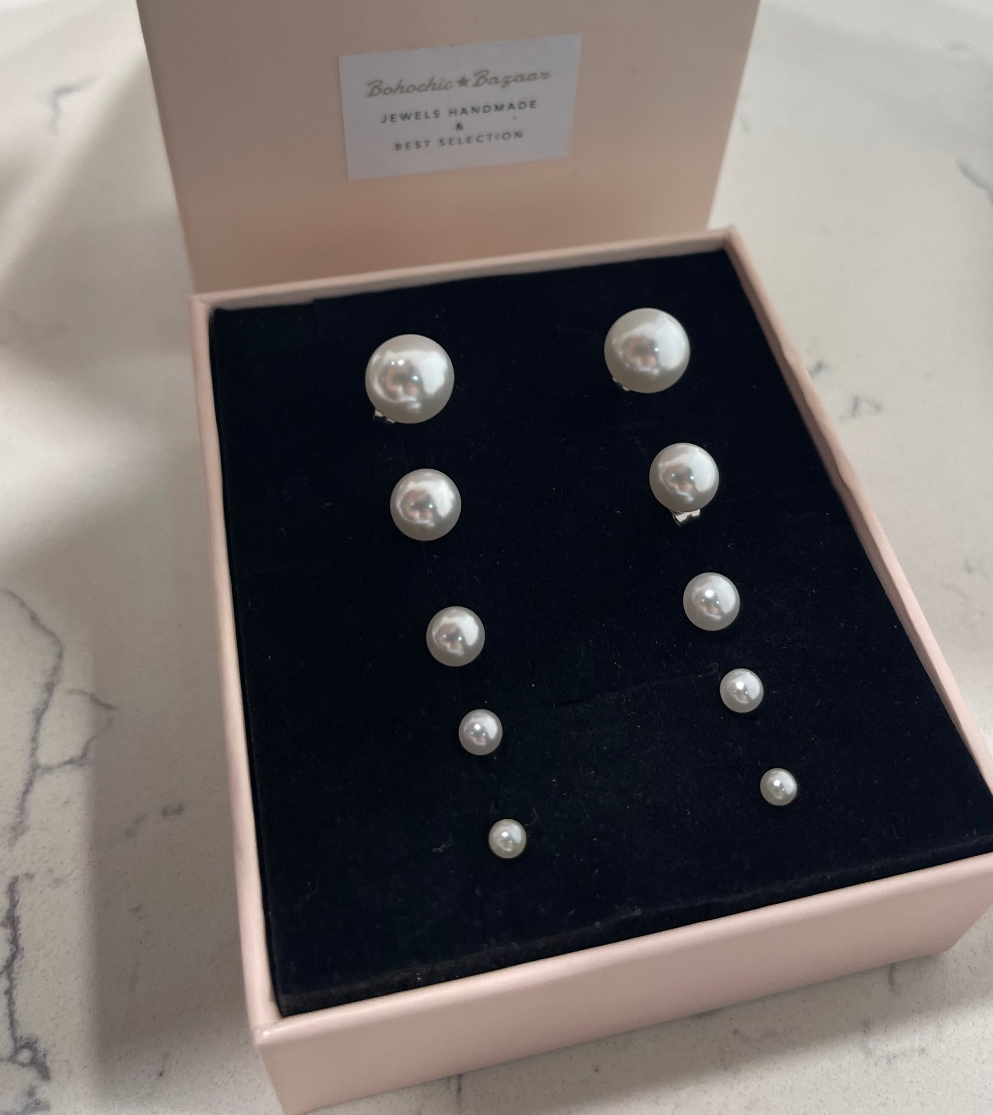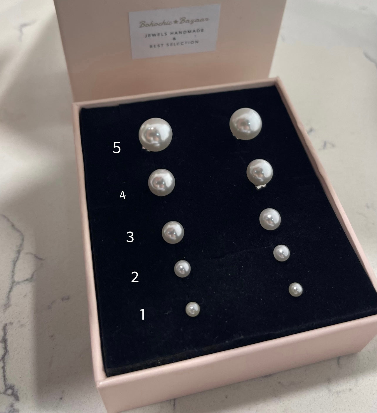 Orecchini a bottoncino . Diverse misure di Perle da indossare in sequenza. Crea il tuo set. Il prezzo fa riferimento al paio