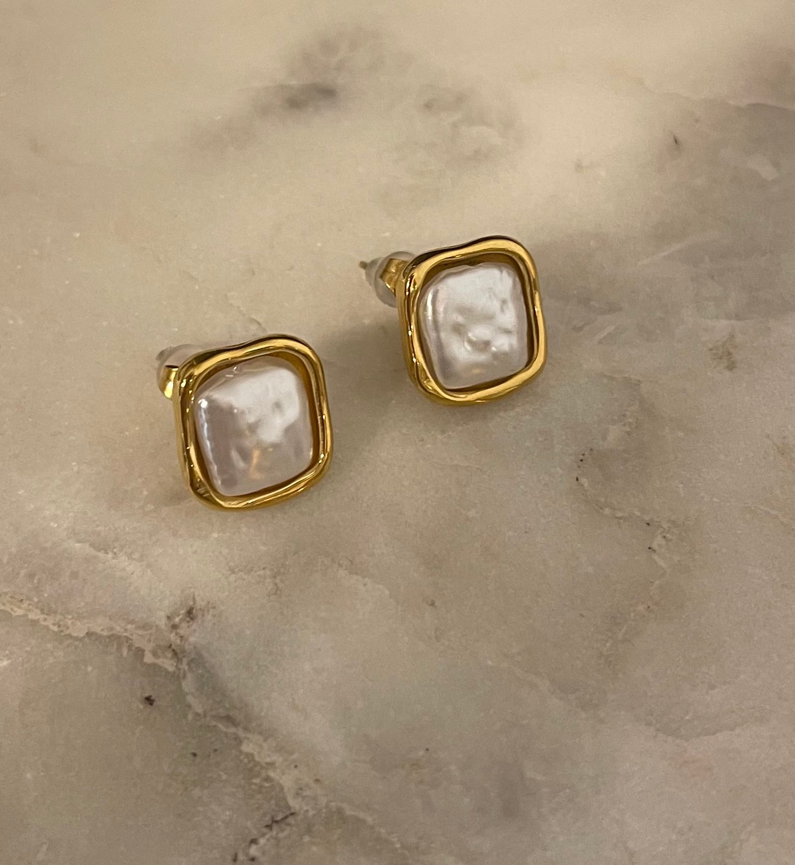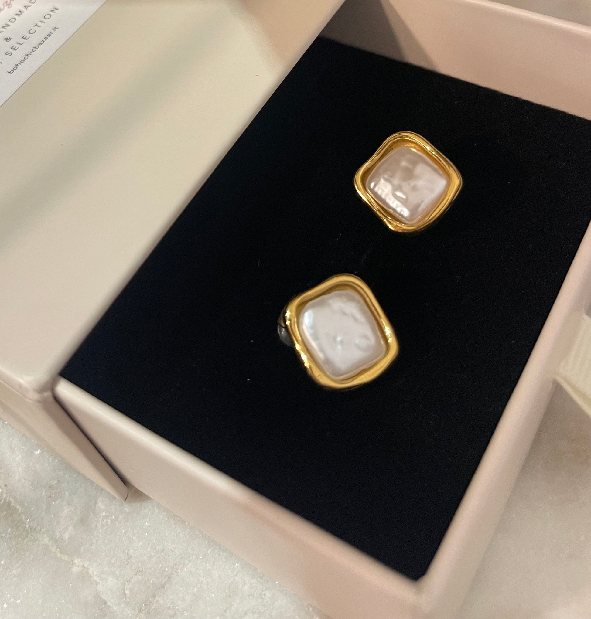 Mini Orecchino quadrato vintage Designe . Interno Madreperla . Chiusura a perno con farfallina