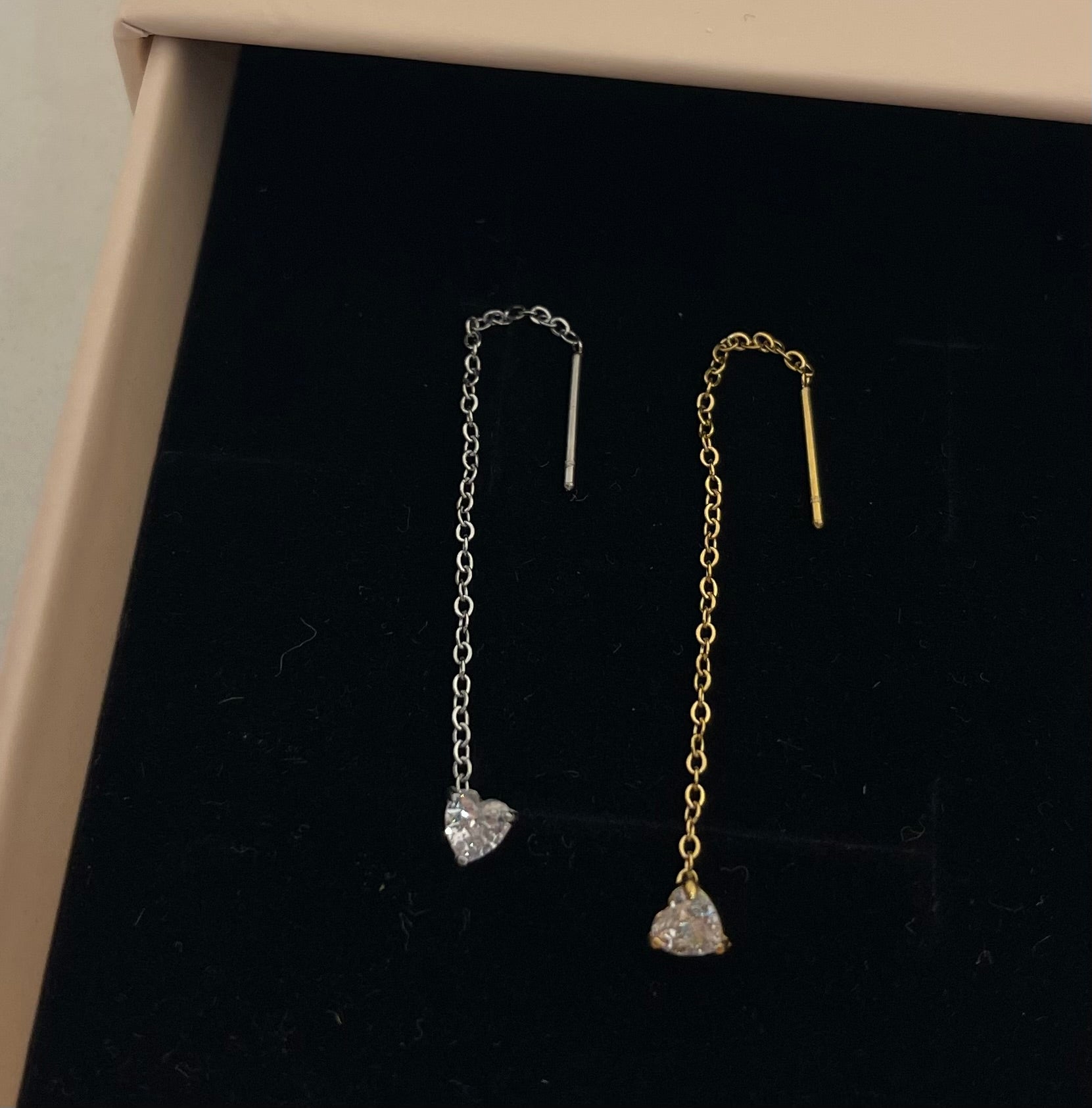 Mono Orecchino Saliscendi con punto Luce Cuoricino . Il prezzo fa riferimento al singolo orecchino