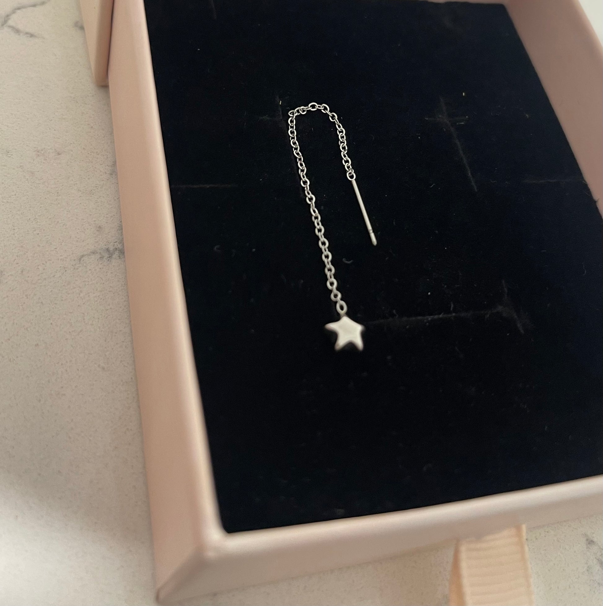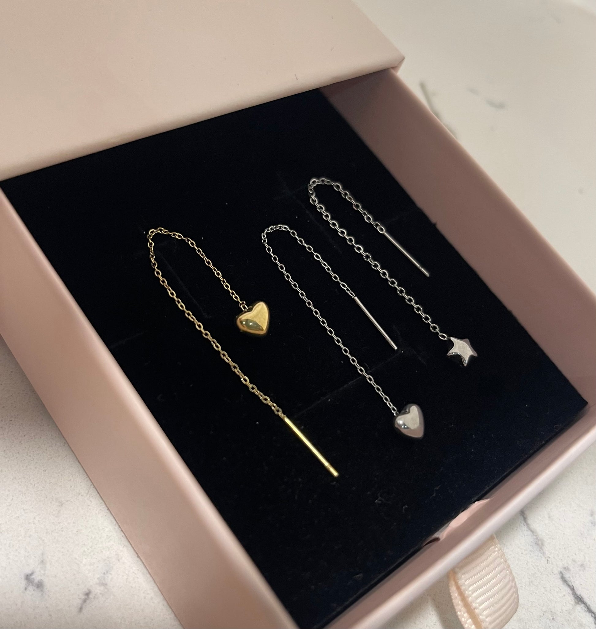 Mono orecchini Saliscendi . Cuoricino e stellina bombati .