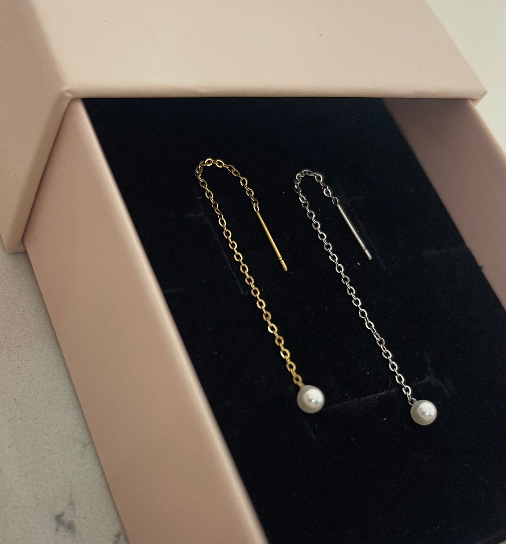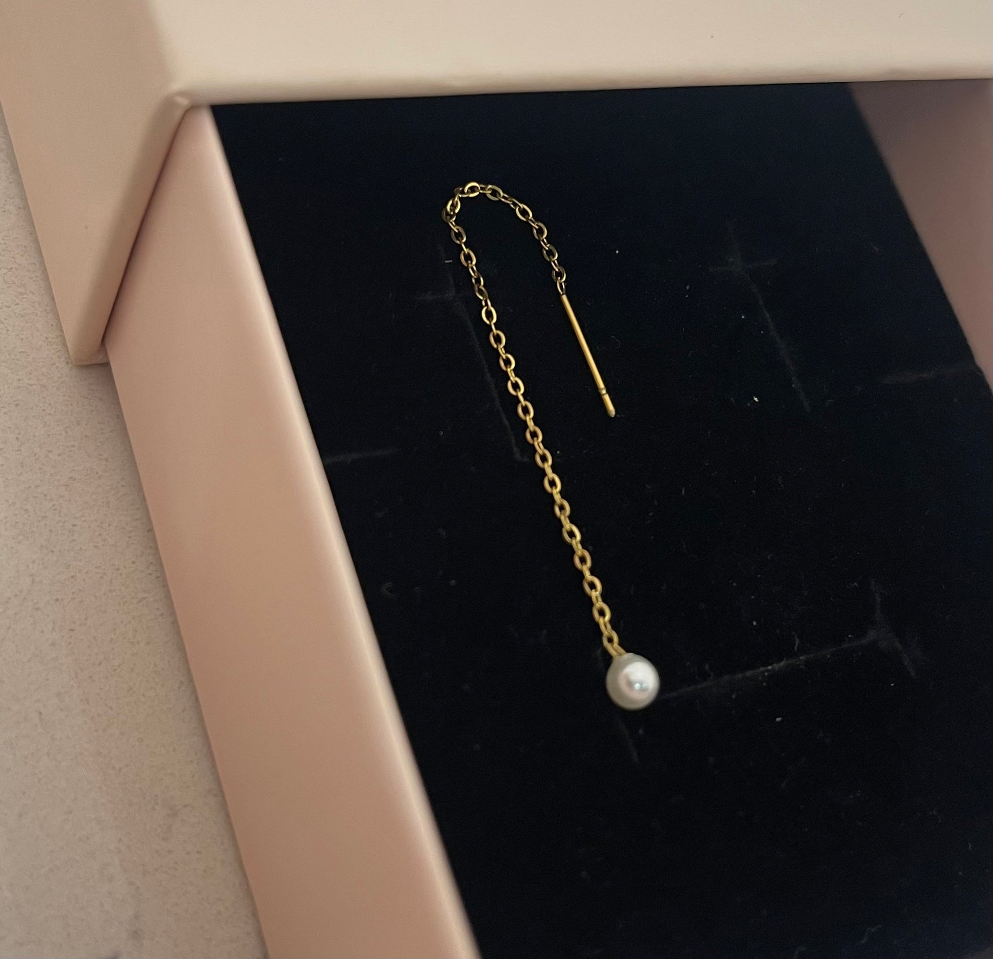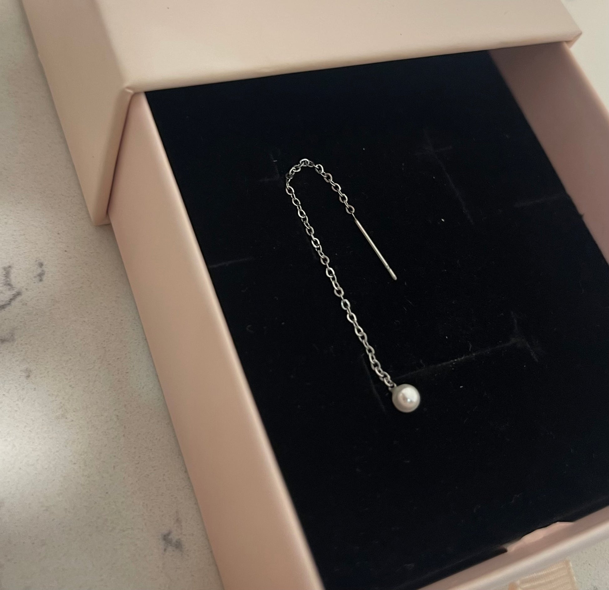 Mono orecchino saliscendi con perla . Il prezzo fa riferimento al singolo orecchino
