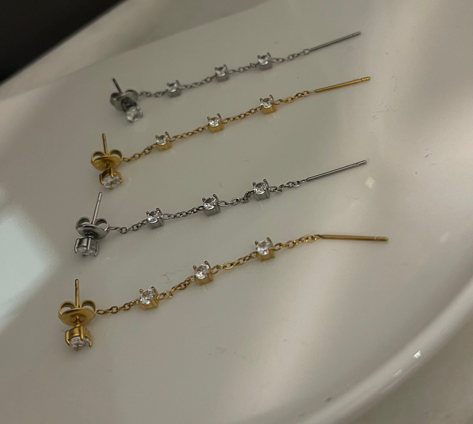 Mono Orecchino saliscendi , con punti luce in sequenza. Super Chic per creare set di mini orecchini. Il prezzo fa riferimento al singolo orecchino