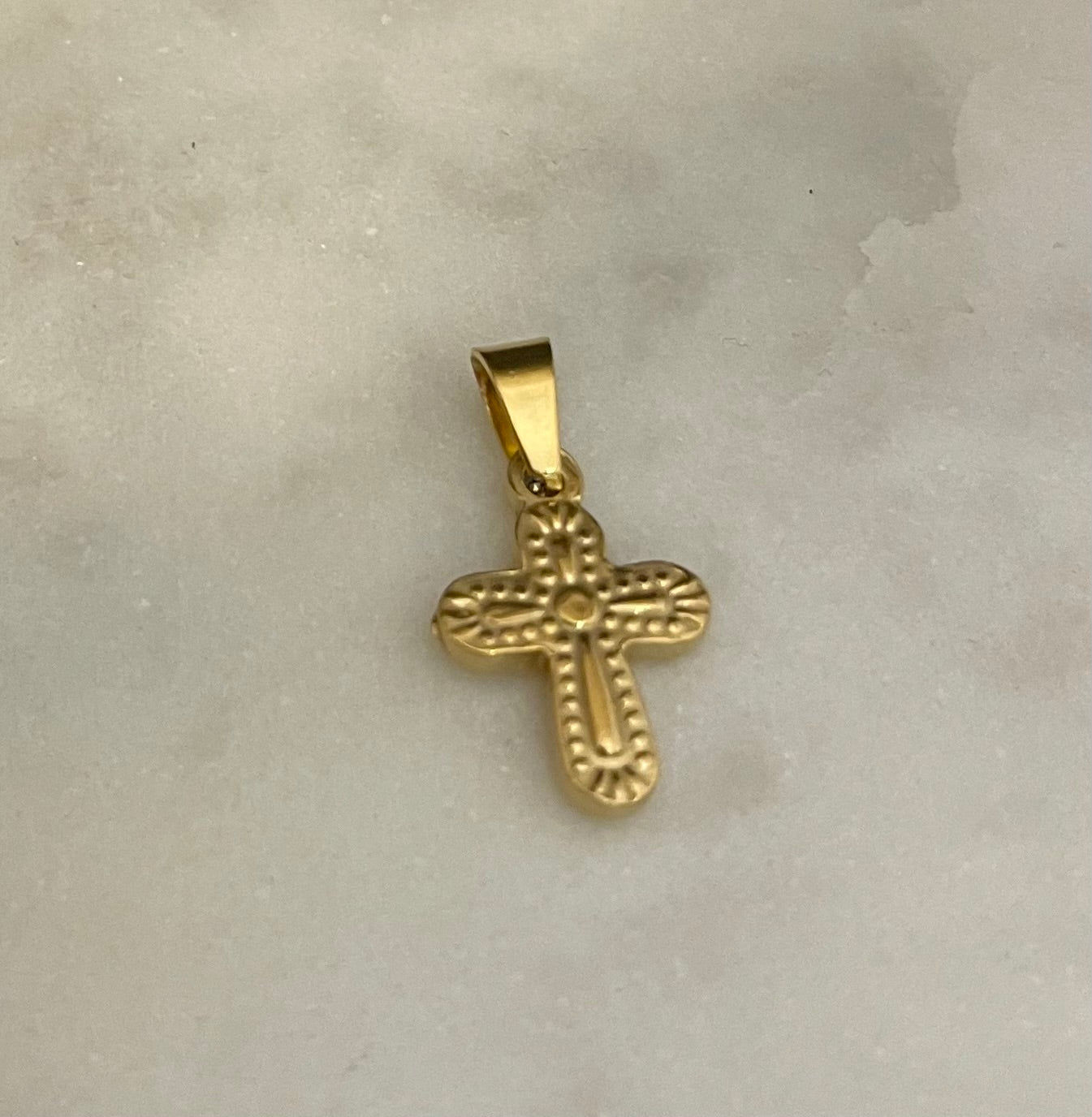 Crocetta Bold operata in rilievo in stile barocco. Dimensione1,5 cm