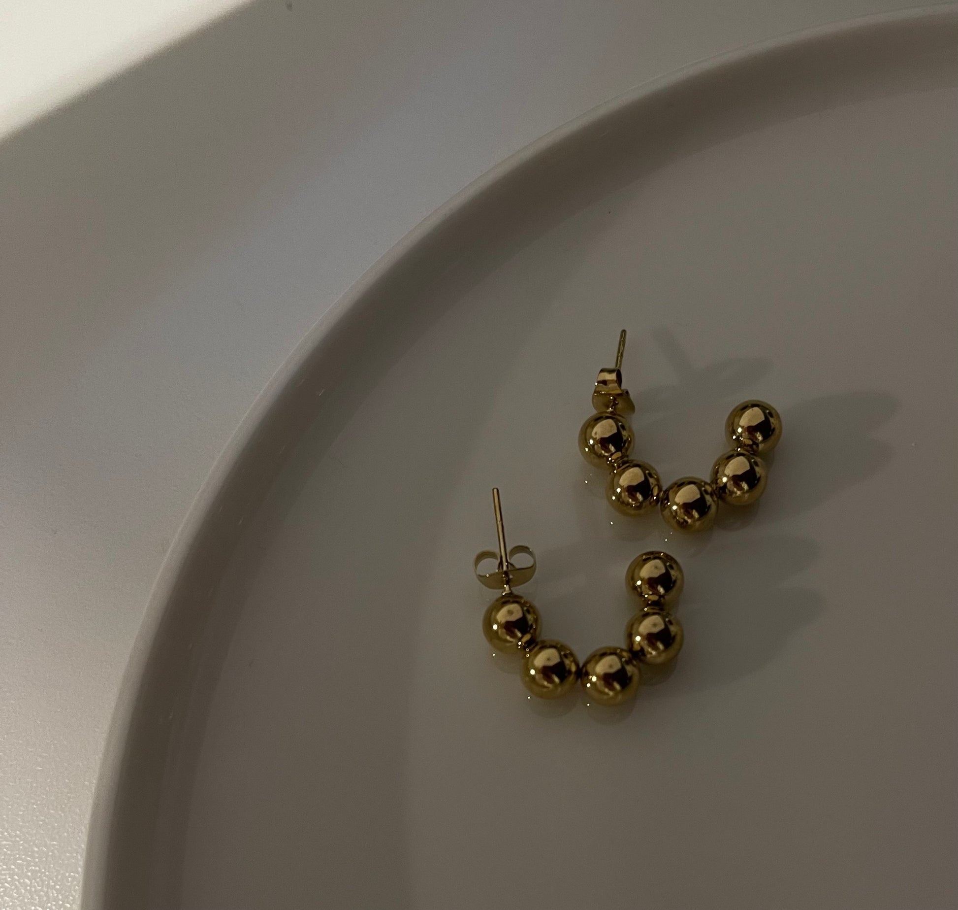 Mini Hoops bubble con sfere bombate in sequenza. Chiusura a perno con farfallina. Il prezzo fa riferimento al paio