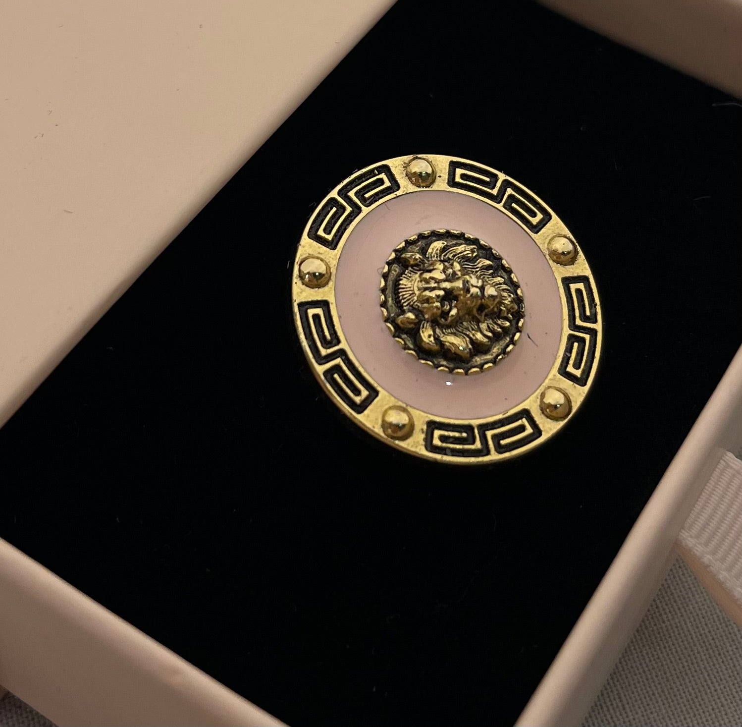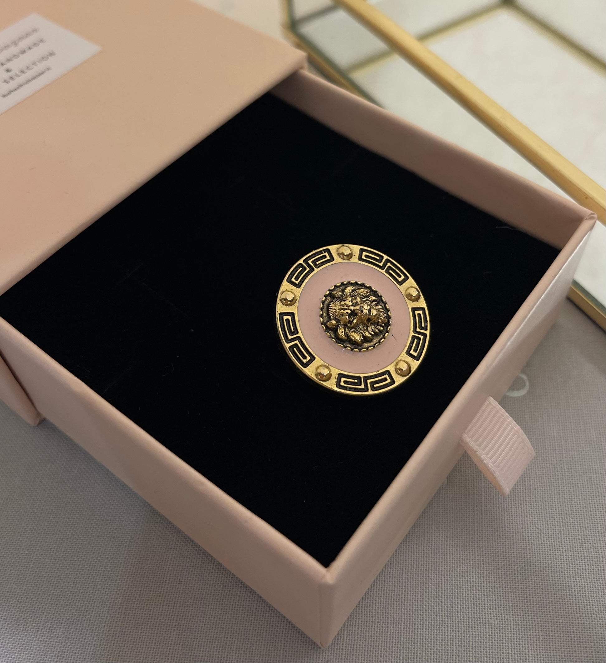 Spilla a bottone Rosa & Oro. Dimensione 3 cm.