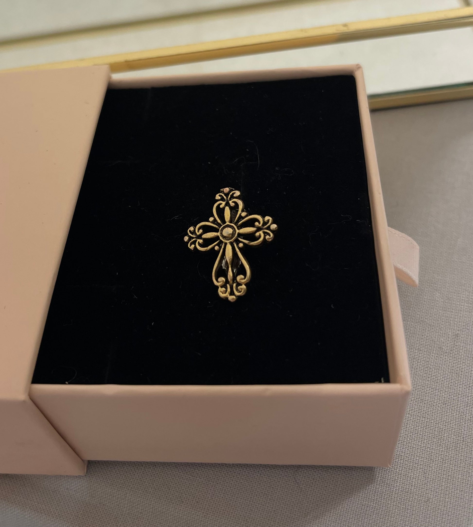 Spilla crocetta Barocca oro invecchiato. Il prezzo fa riferimento alla singola spilla. Dimensione spilla 2,5 cm