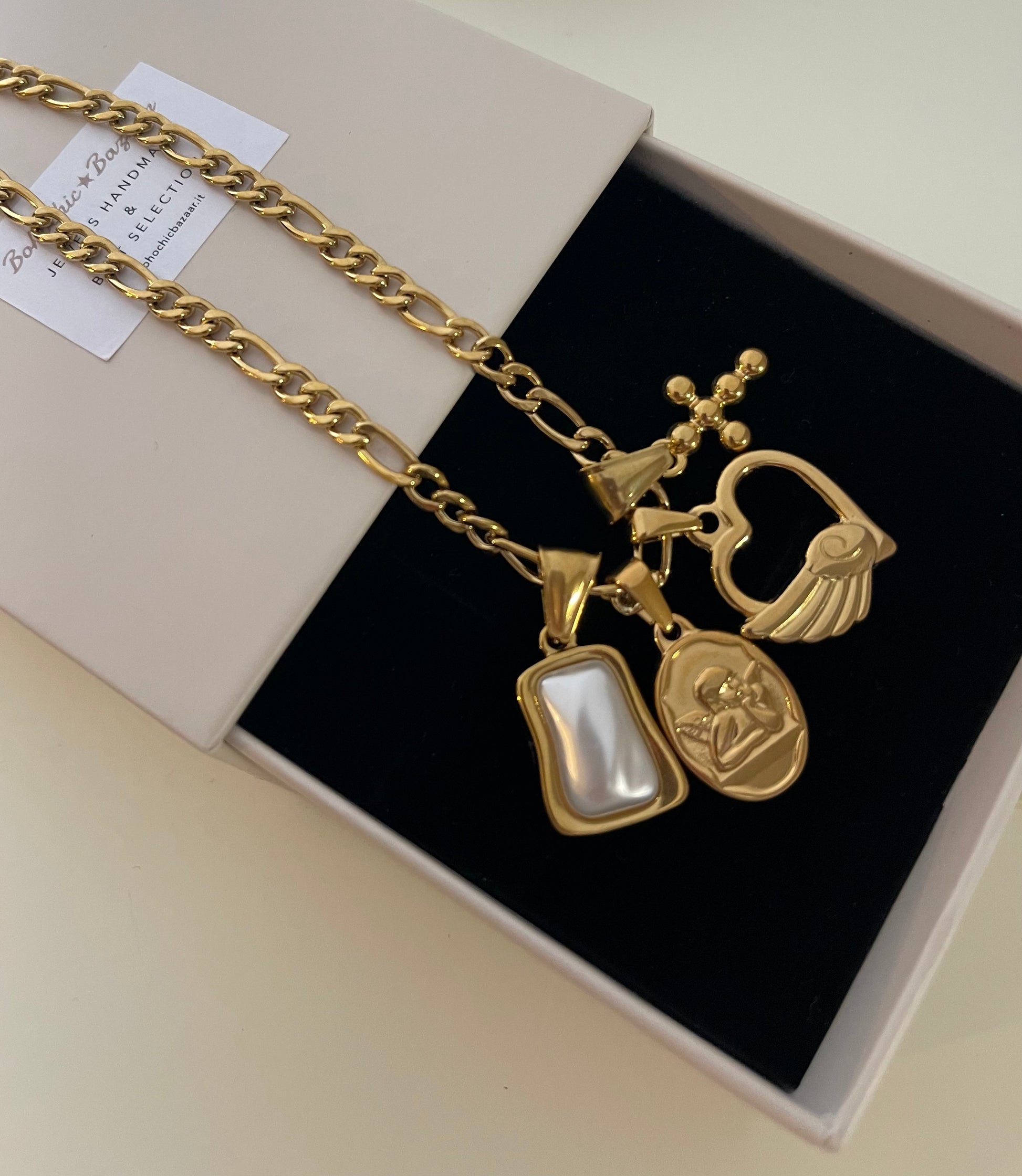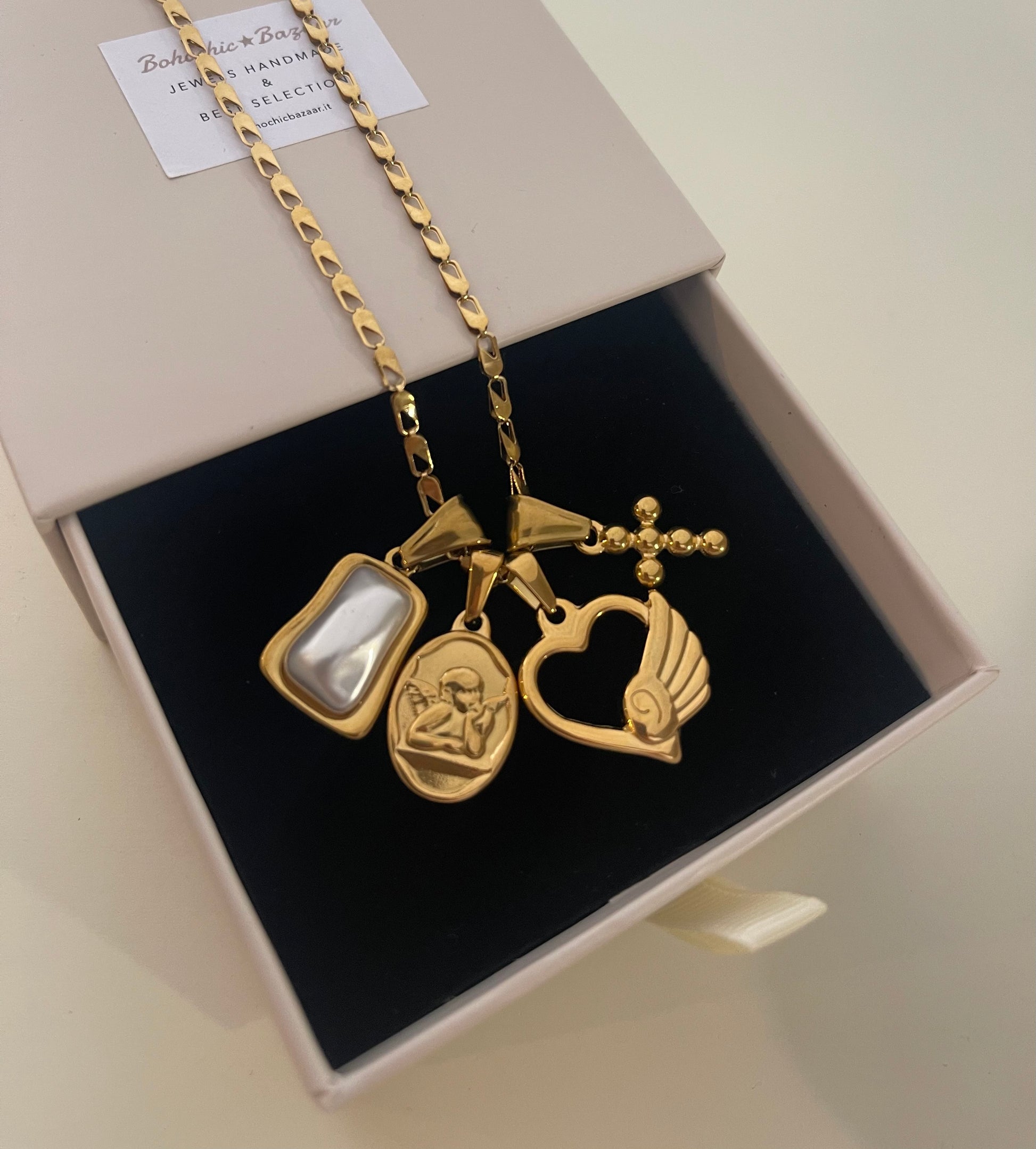 Collana Multicharms composta da quattro ciondoli , realizzata in due diverse varianti con catena speciale