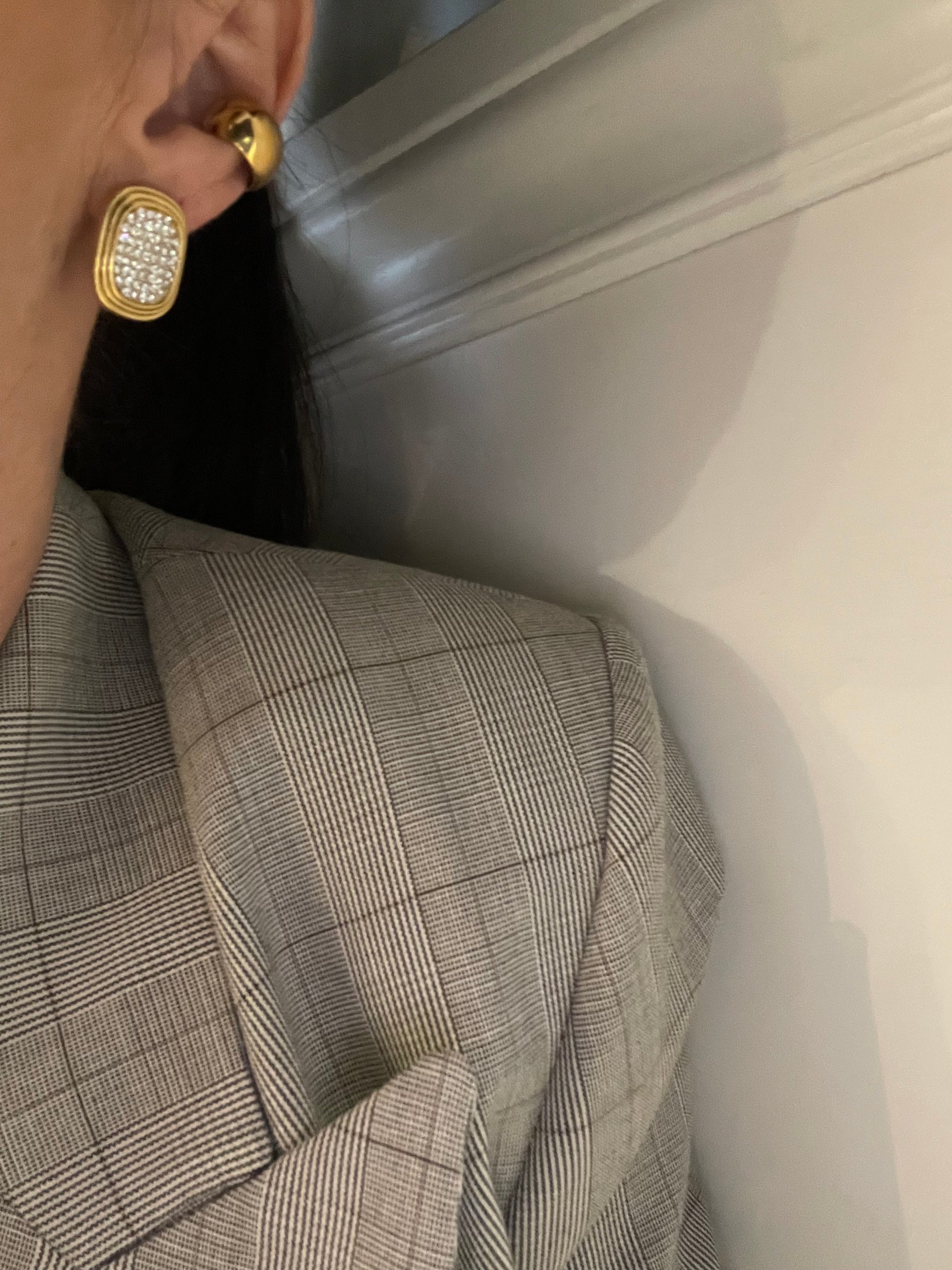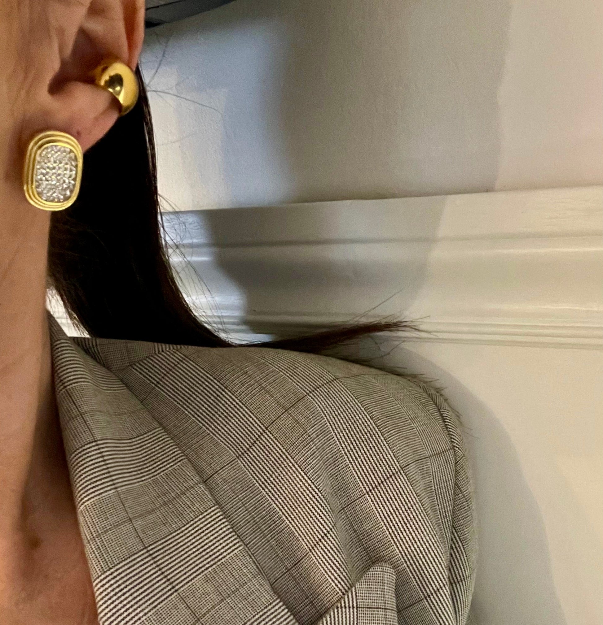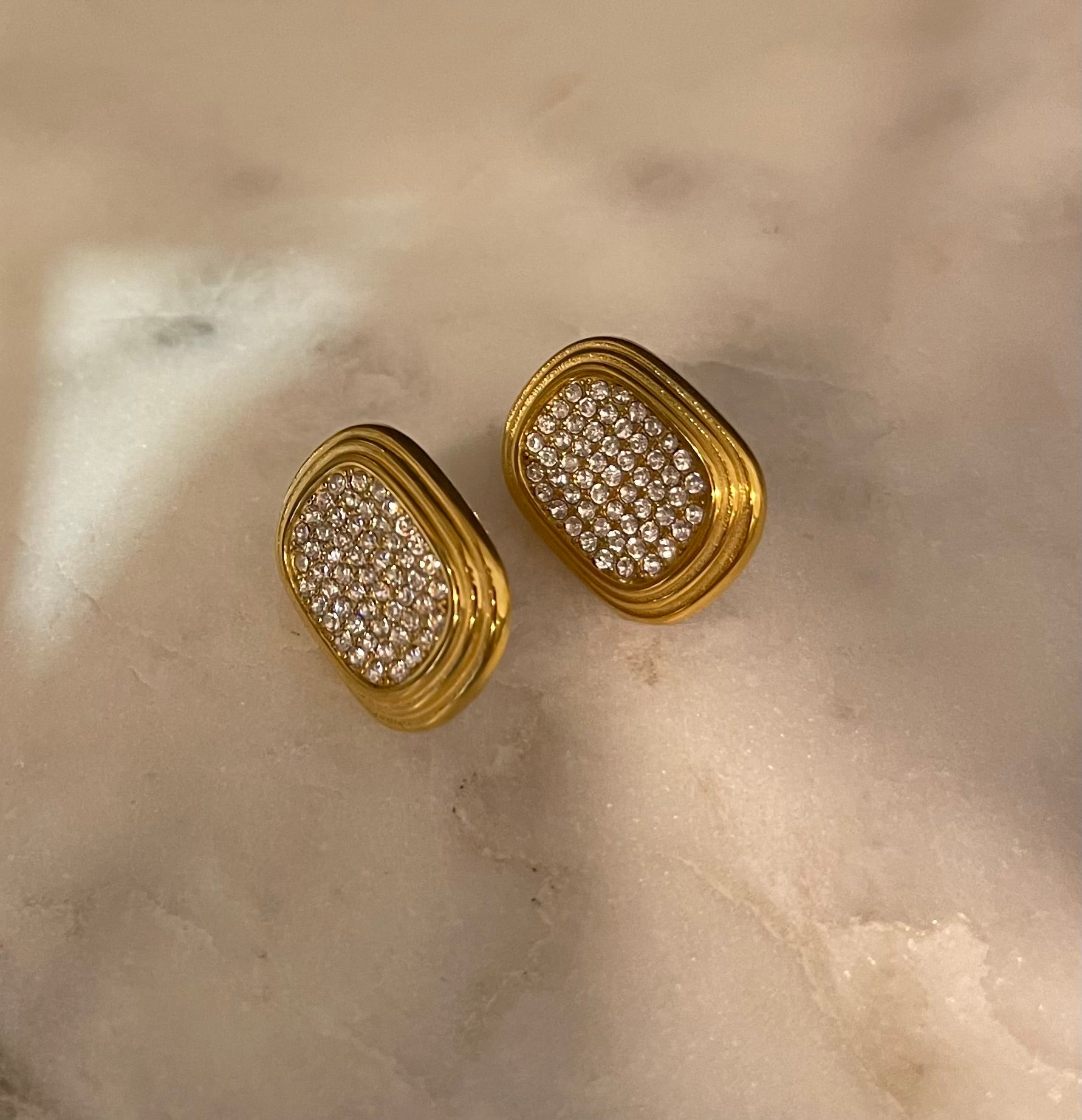 Orecchino Gioiello a Bottone. Rettangolo ovalizzato stondato pavé. Zirconato Crystal. Chiusura con perno e farfallina . Dimensione 2 cm